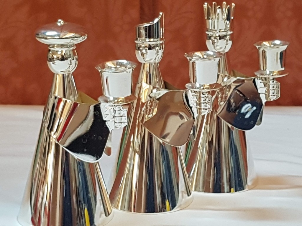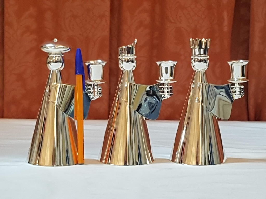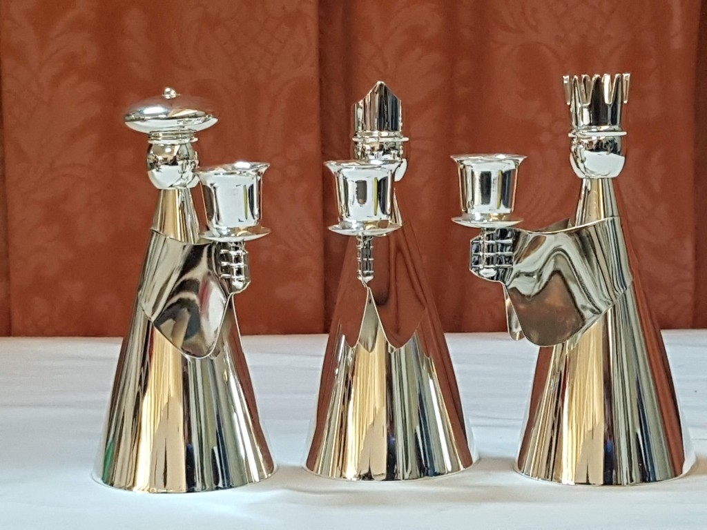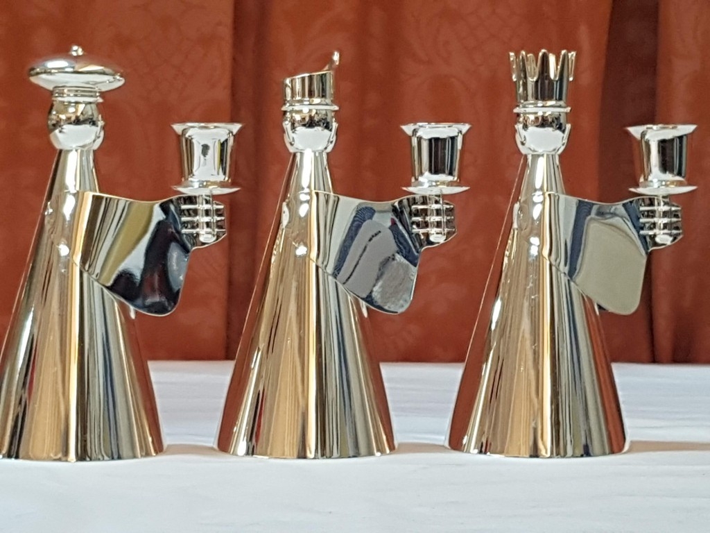 Christmas Three Kings, White Metal Candle Holders (Approx. H: 16.5cm Each). (3)