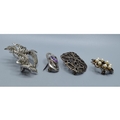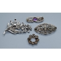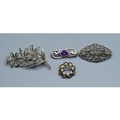 Four 925 sterling silver vintage brooches, cultured Pearl Amethyst and Marcasite
