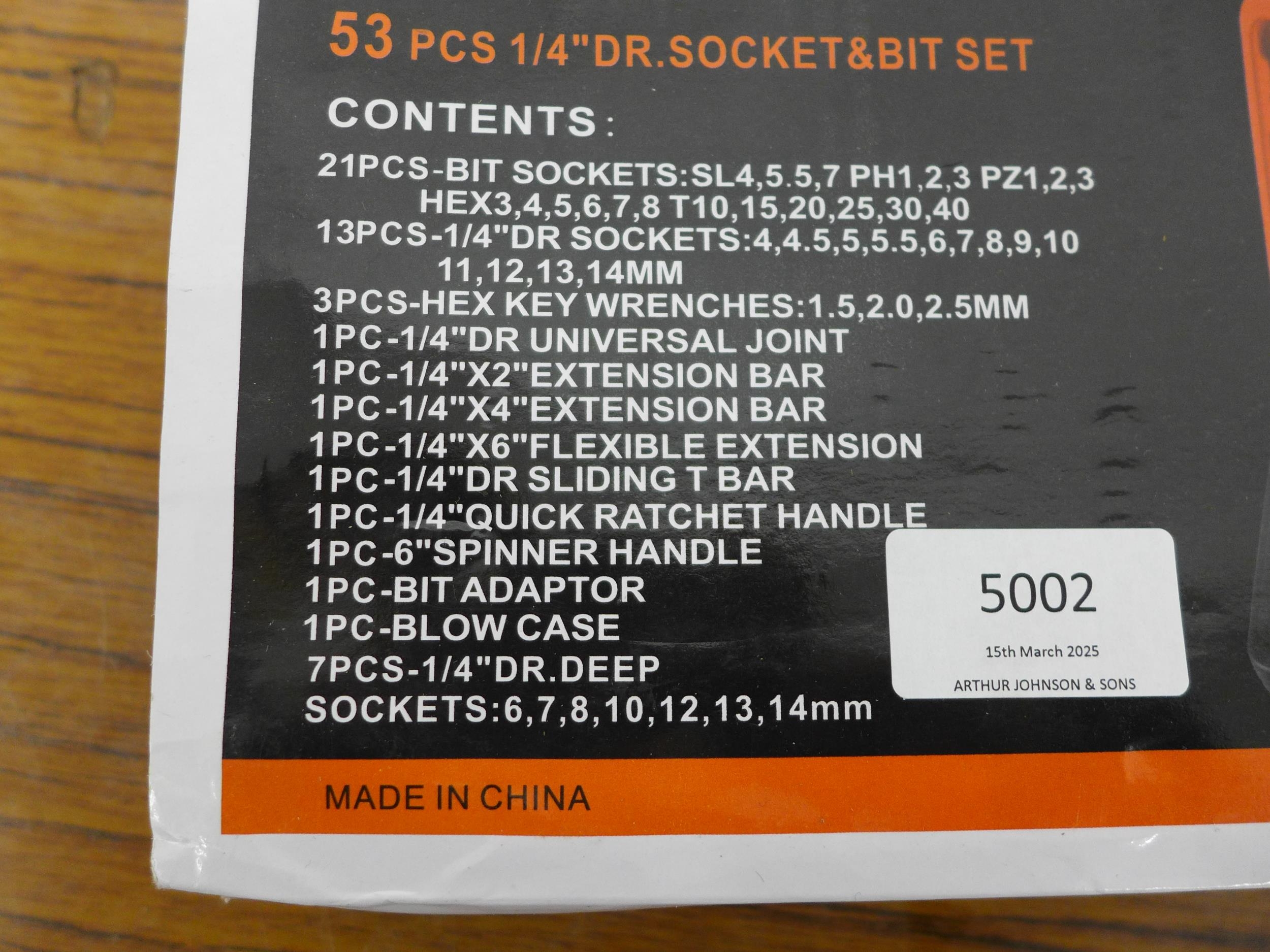 A 53 piece socket and bit set, unused