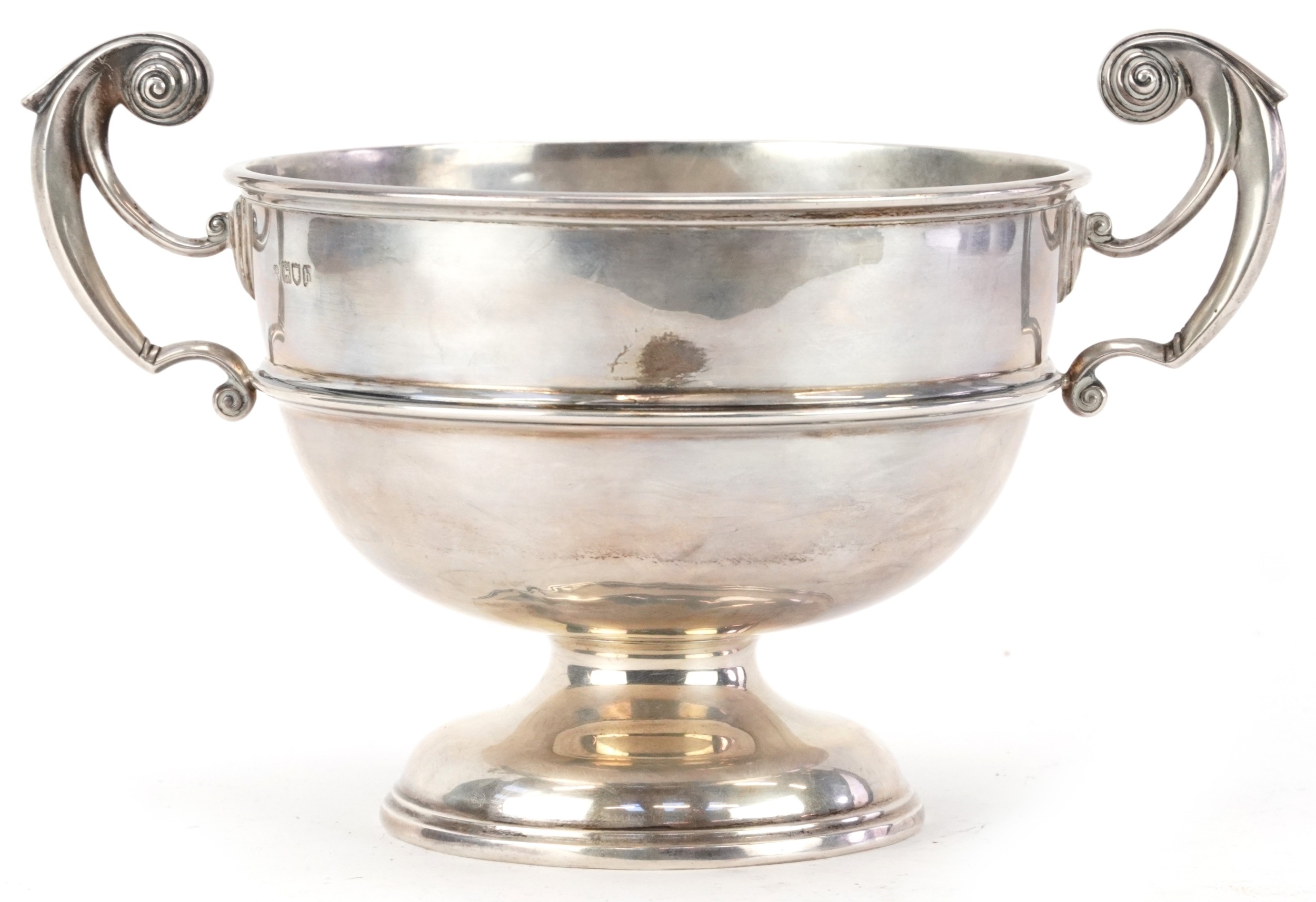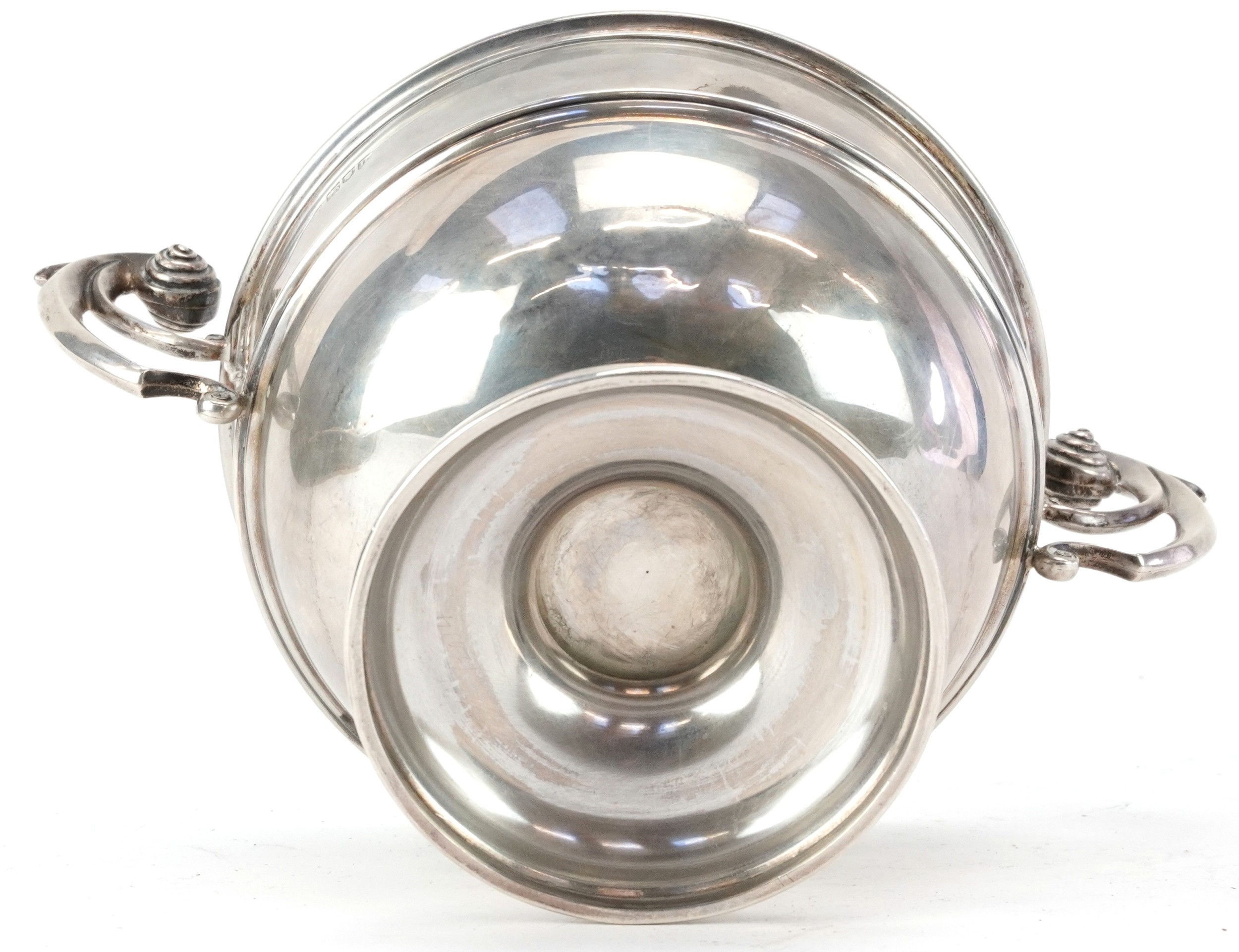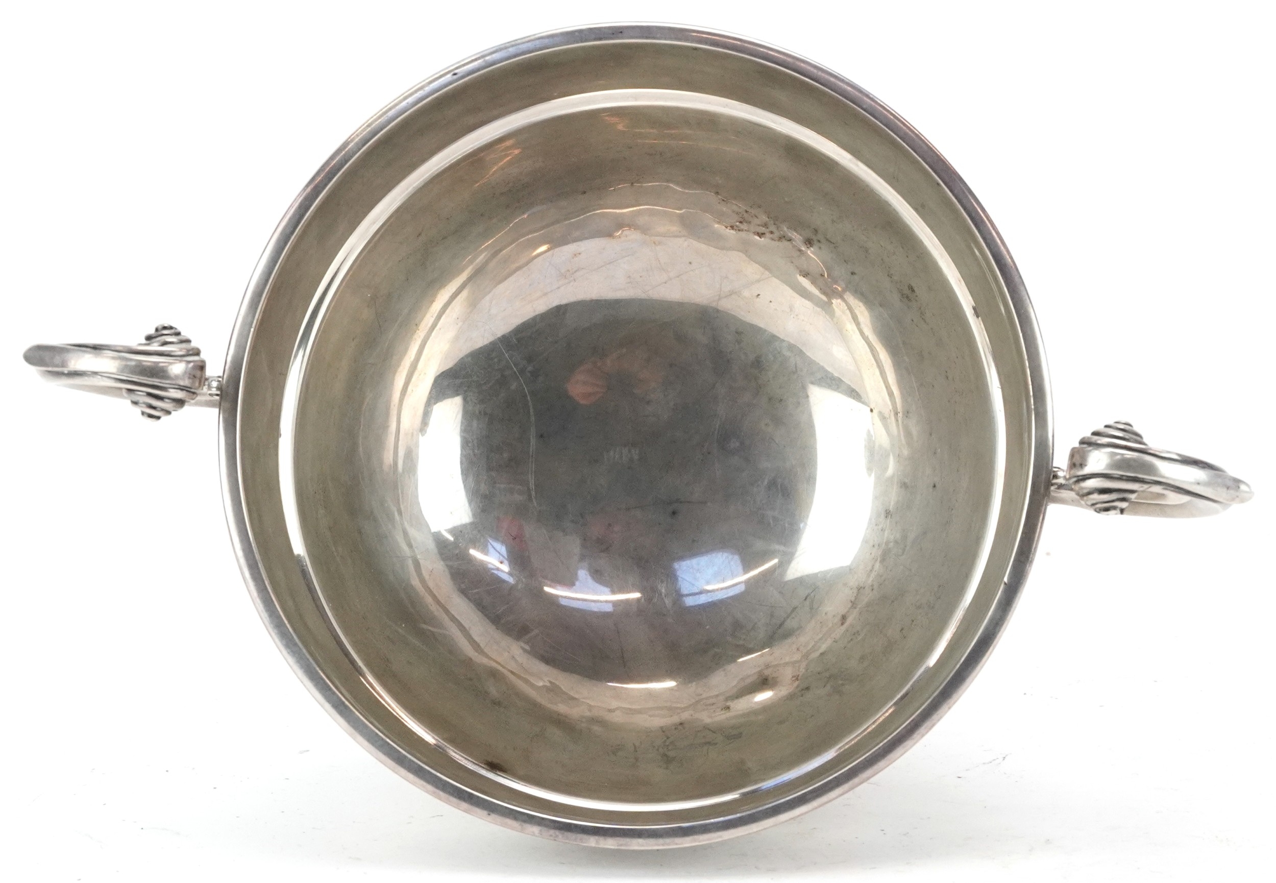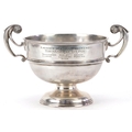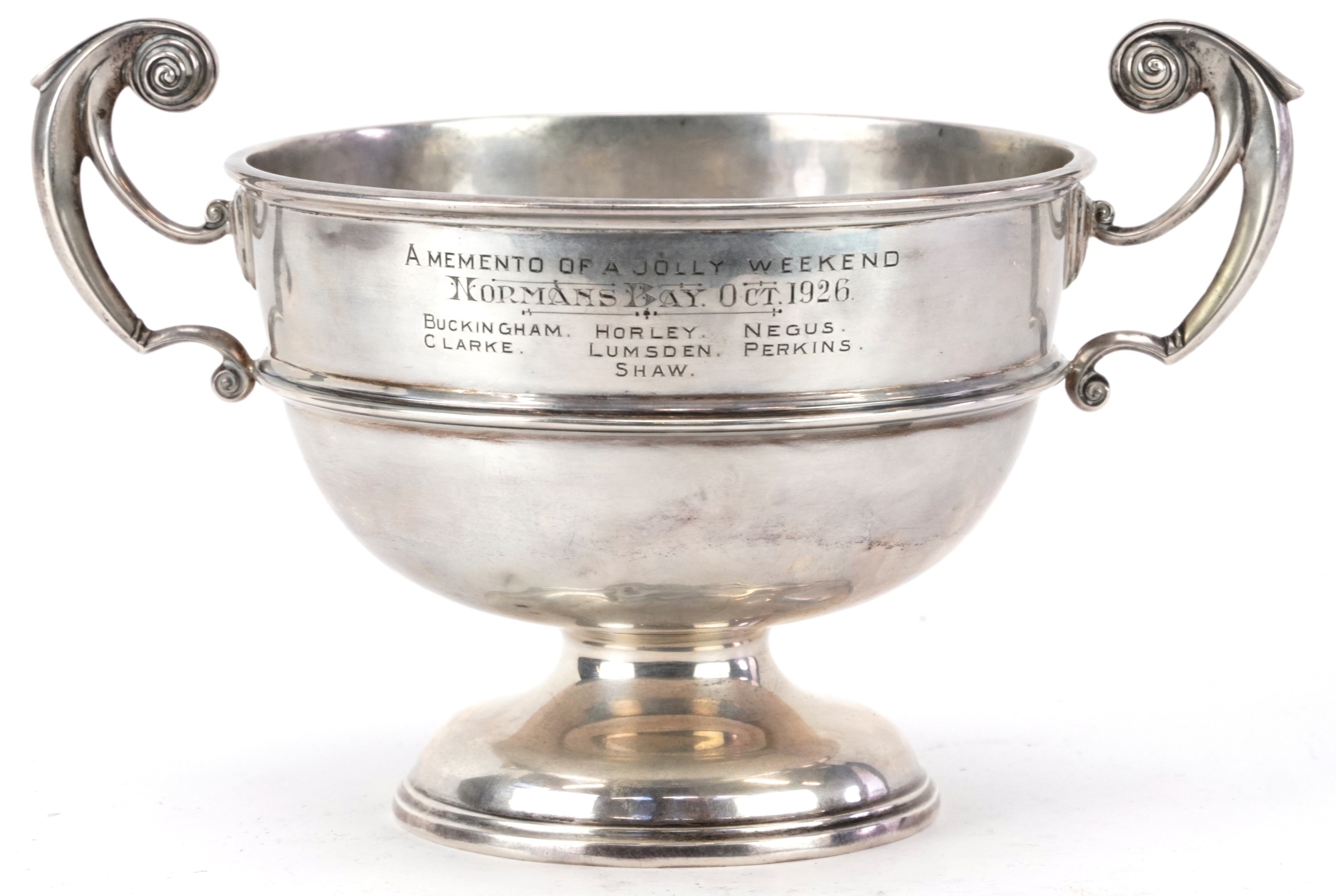 Charles Stuart Harris, an Edwardian silver twin handled trophy engraved A Memento of a Jolly Weekend Norman's Bay October 1926, London 1903, 14cm high x 23cm wide, 382.0g.