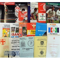 Wales Home Rugby Programmes 1955-68 (26): A great selection of Cardiff Arms Park issues over nearly 15 years, most games present inc both 1965 Triple Crown issues. Letter from WRU with Guest List for the Irish game 65, and Keith Jarrett has signed his England match issue 67. A few marks or scribbles here and there. Majority good