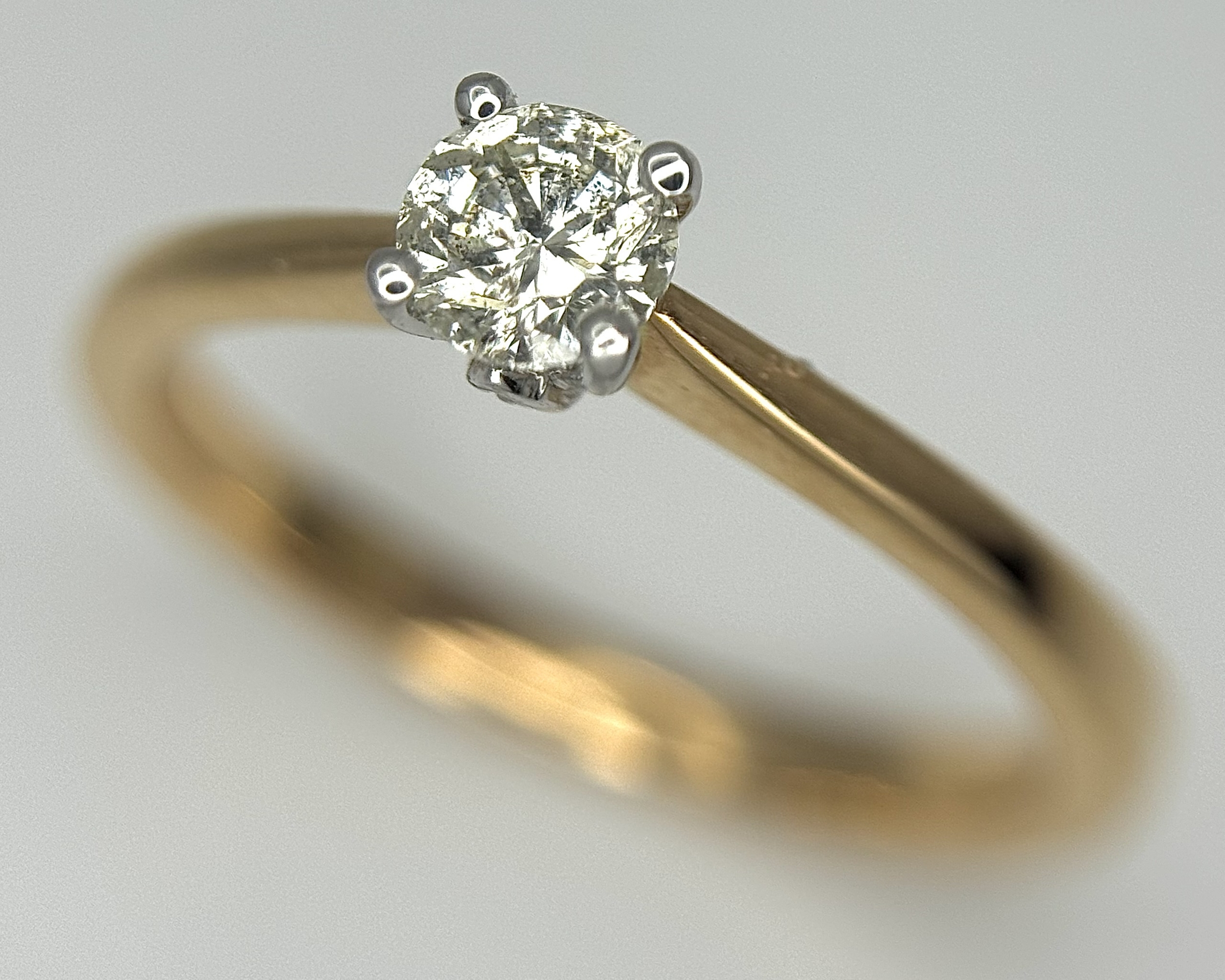 An 18k rose gold diamond solitaire ring, 0.35ct diamond weight, 3.1g total weight, ring size M. NM07