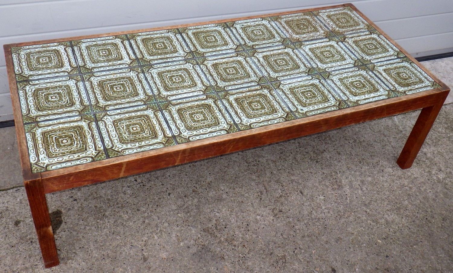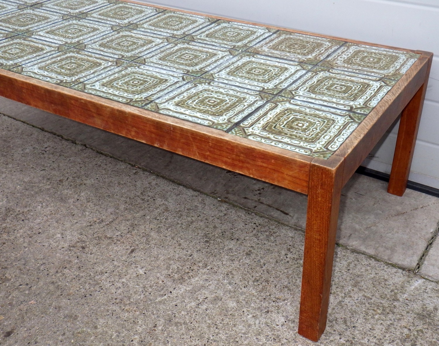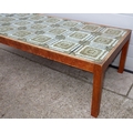 A tile topped teak coffee table, 146cm x 66cm