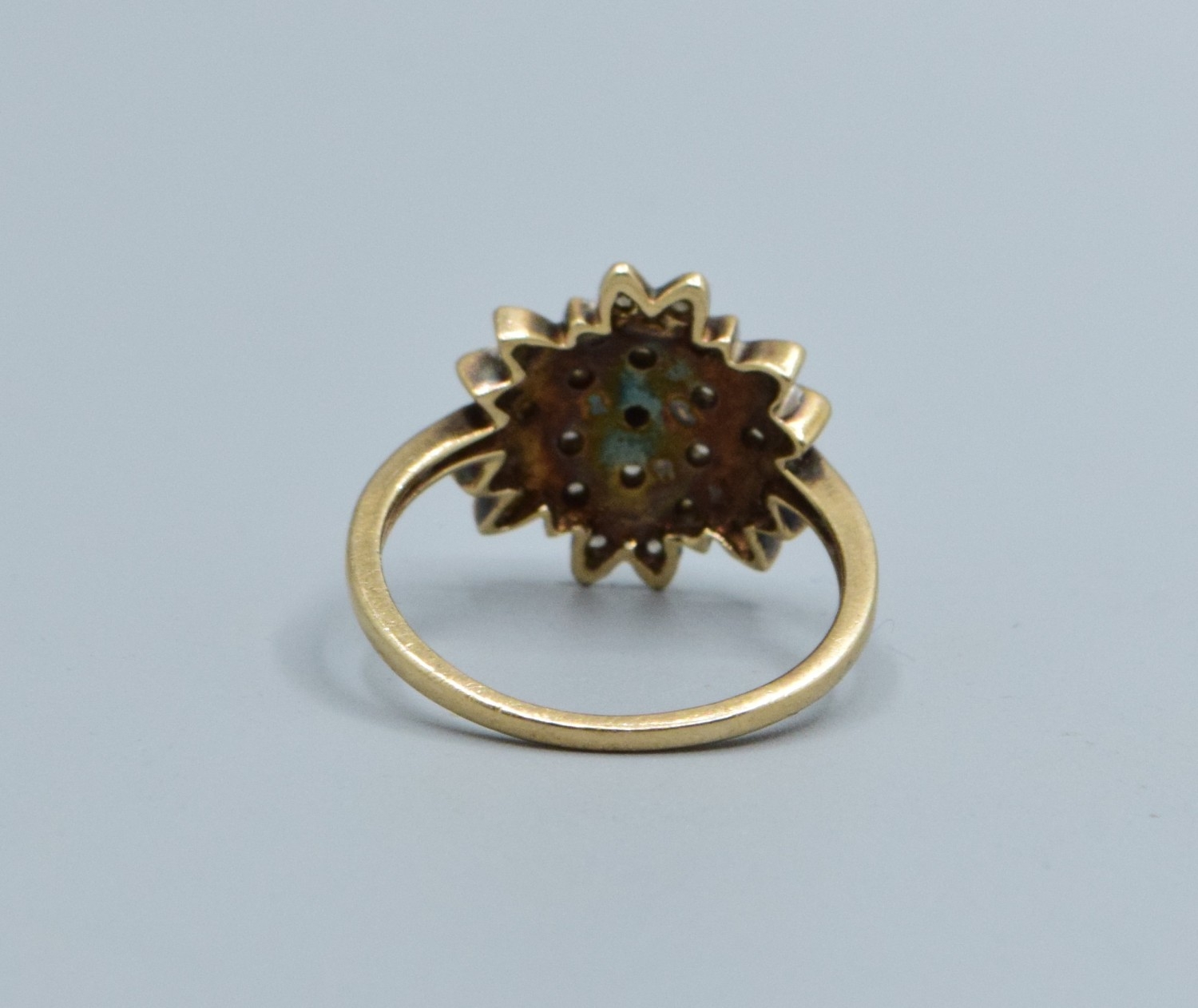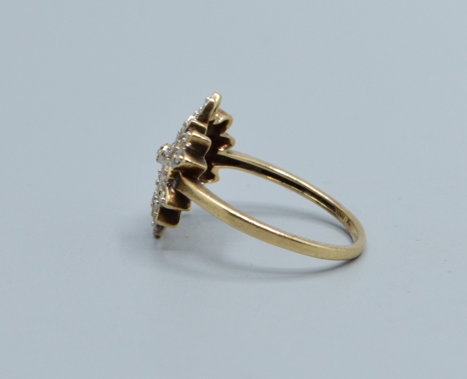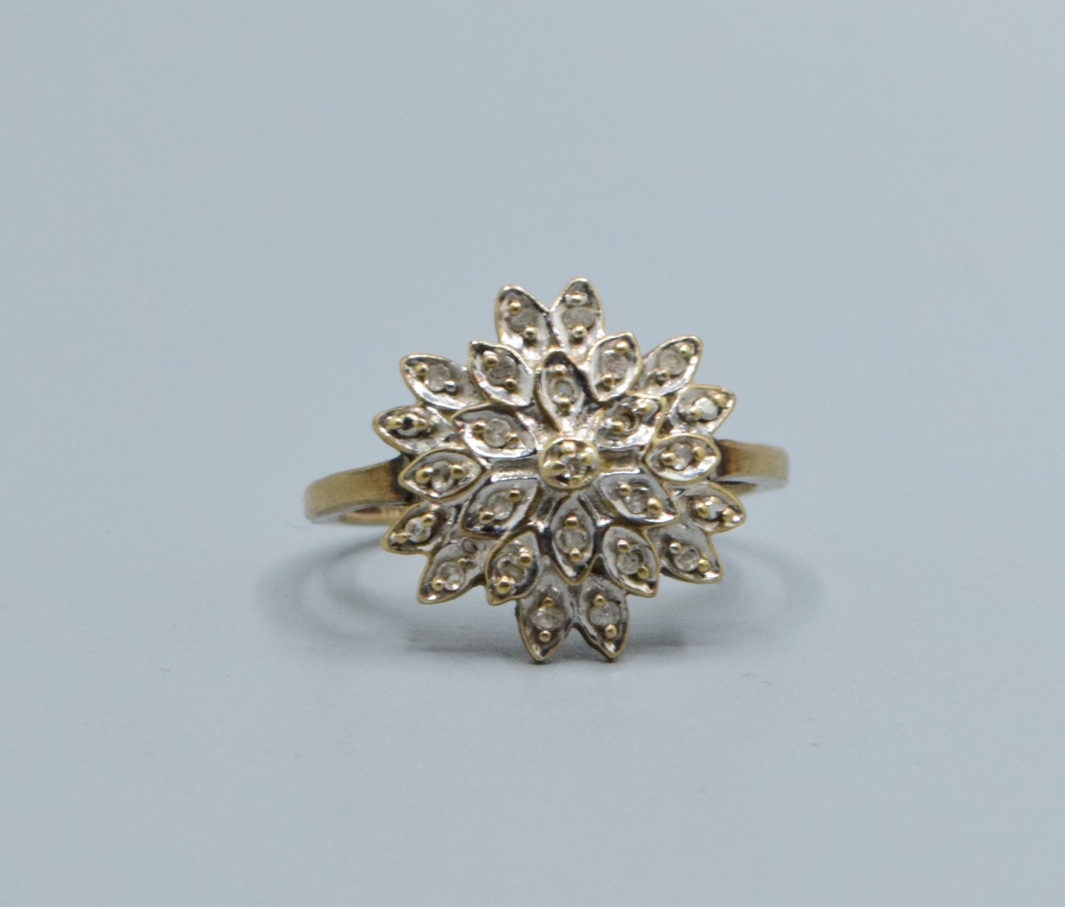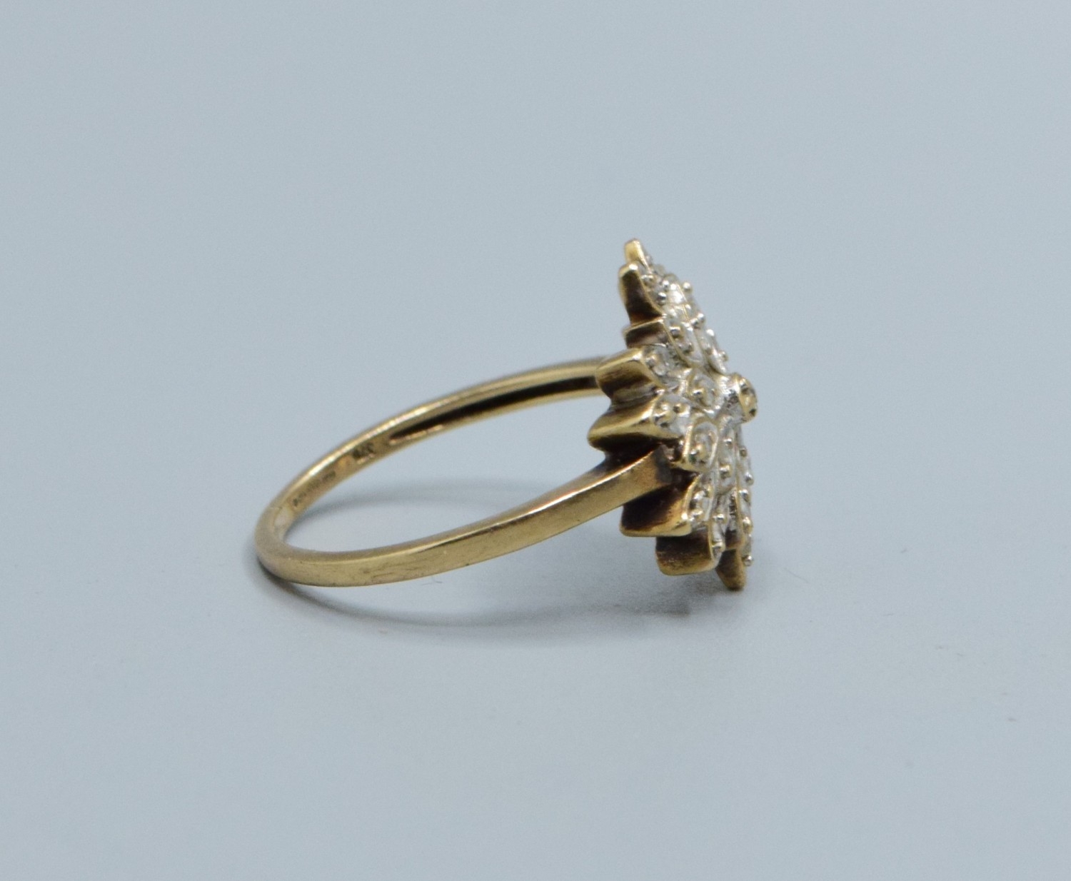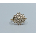 9ct gold ladies Diamond star burst cluster ring hallmarked as Diamond in the ring size L