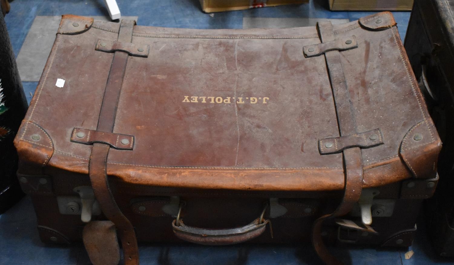 A Leather Mounted Trunk by Wing King and Co., Shanghai with Lined Interior, Monogrammed JGT Polley, 67cms Wide
