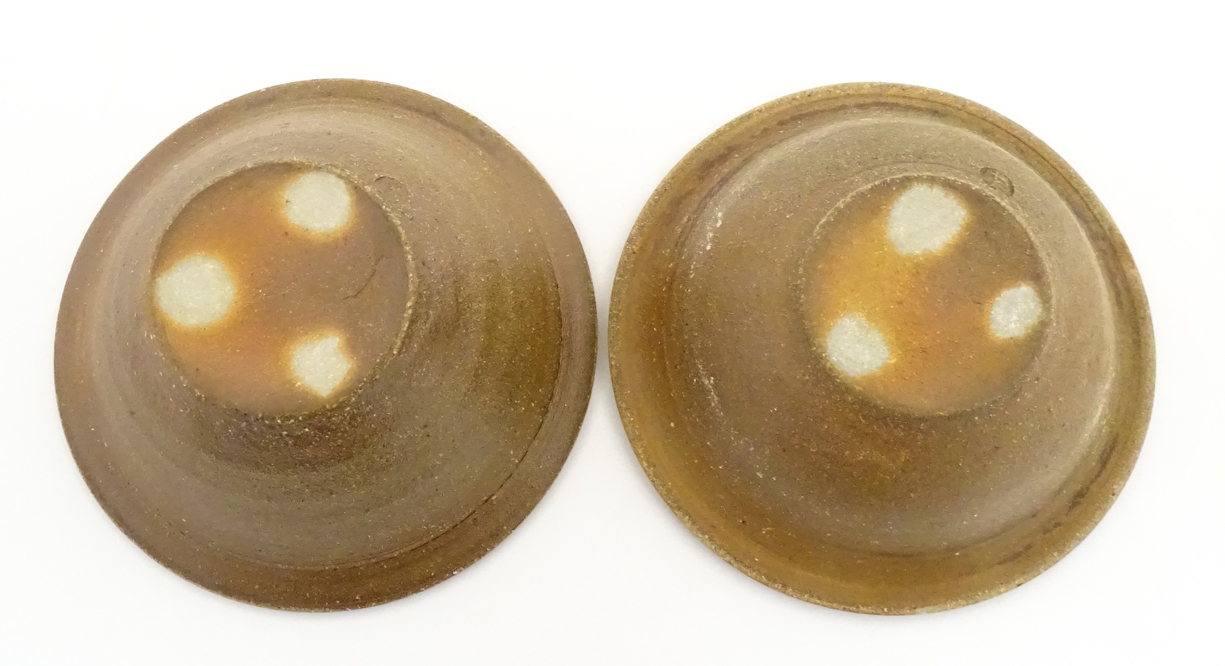 A pair of Tim Hurn (b. 1964) studio pottery salt glazed bowls. With impressed maker's marks. Approx. 7" wide (2)