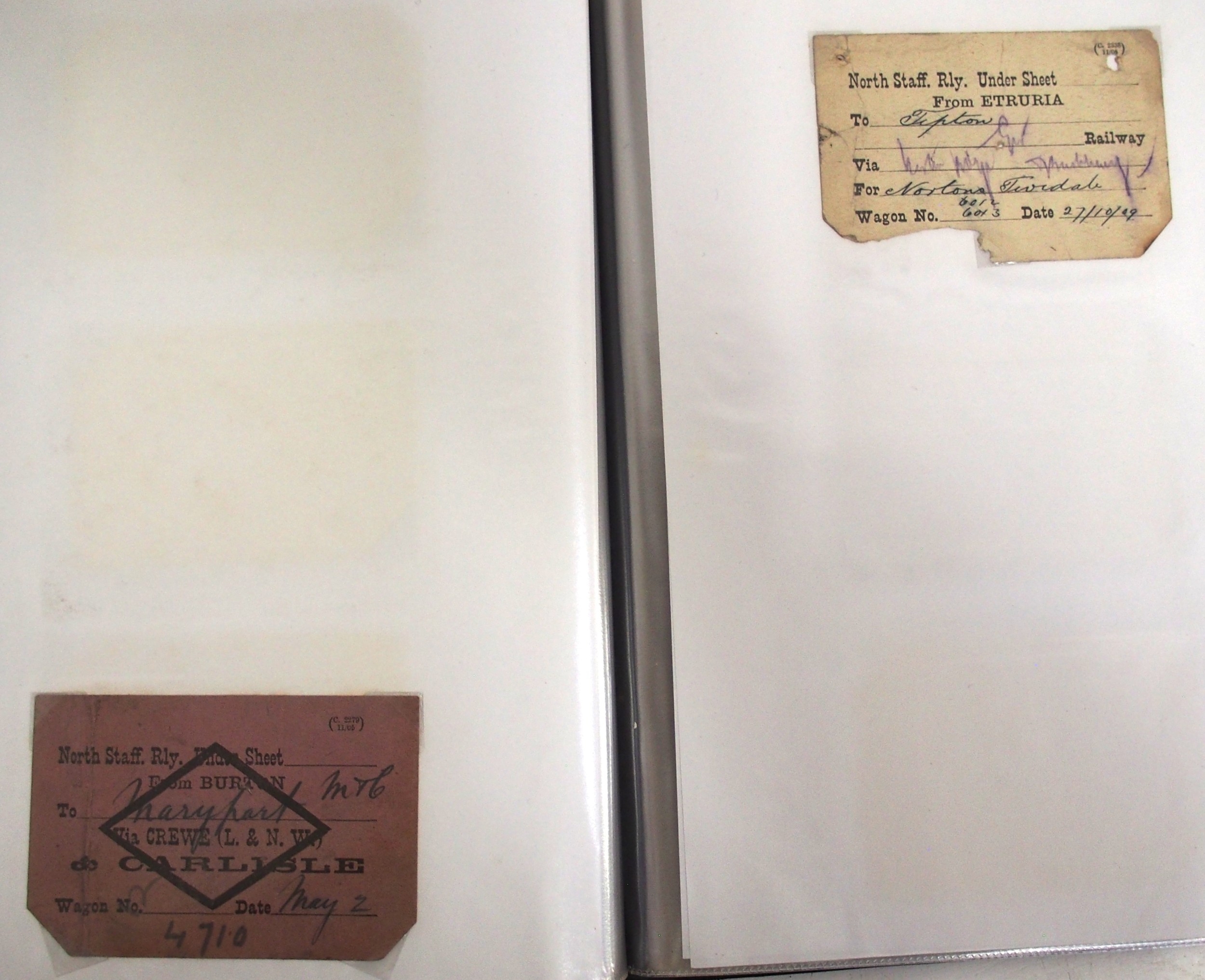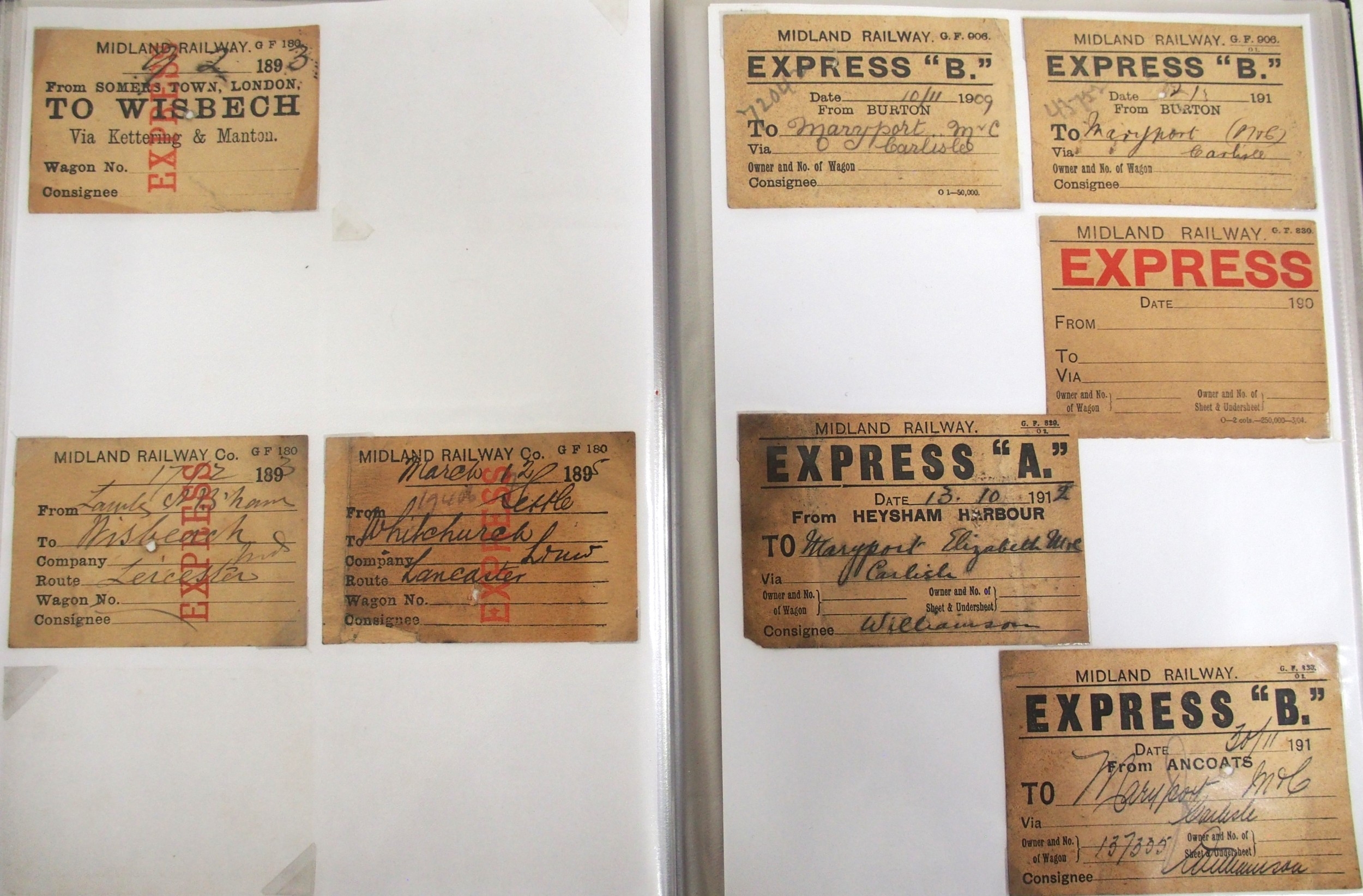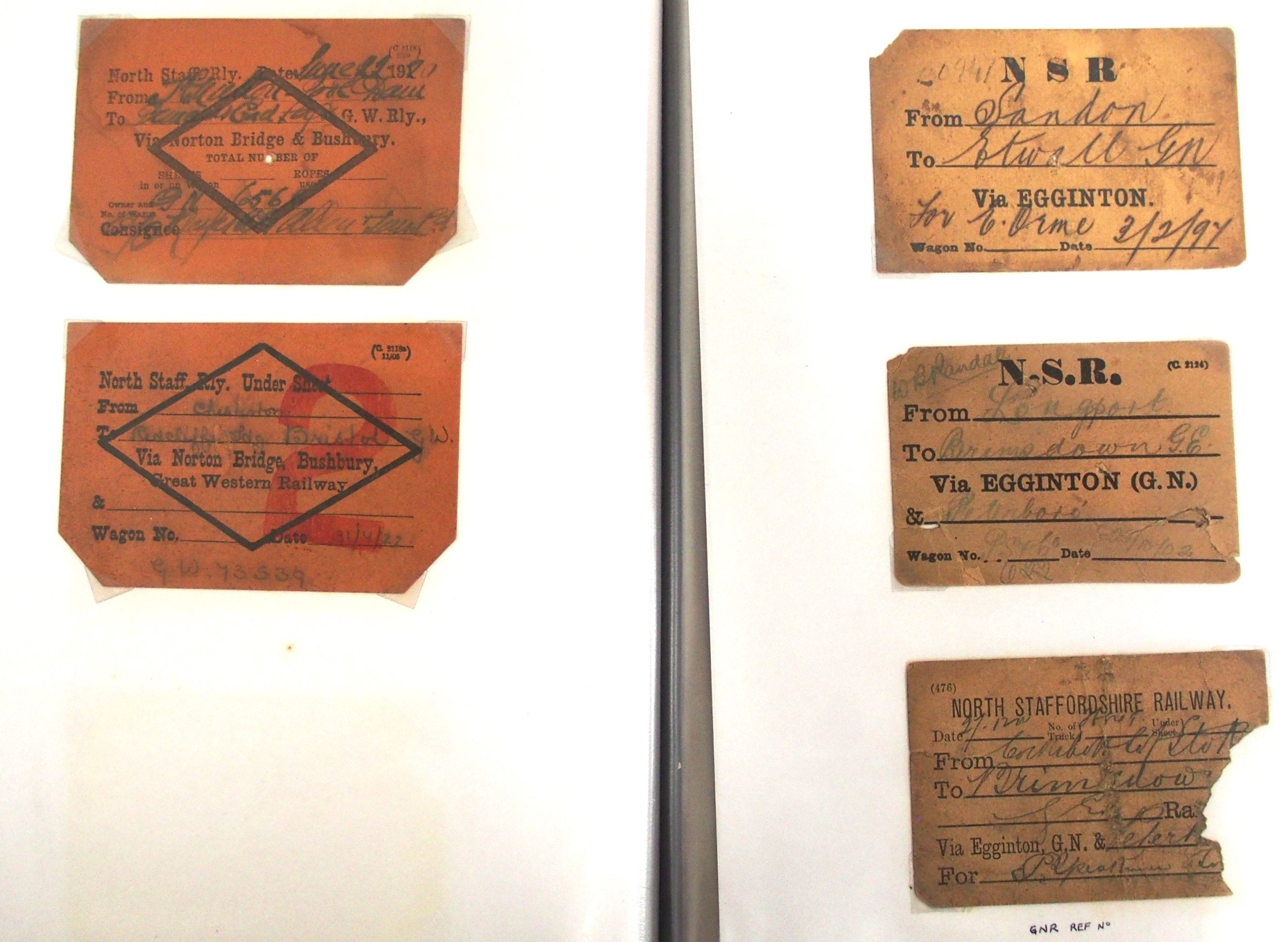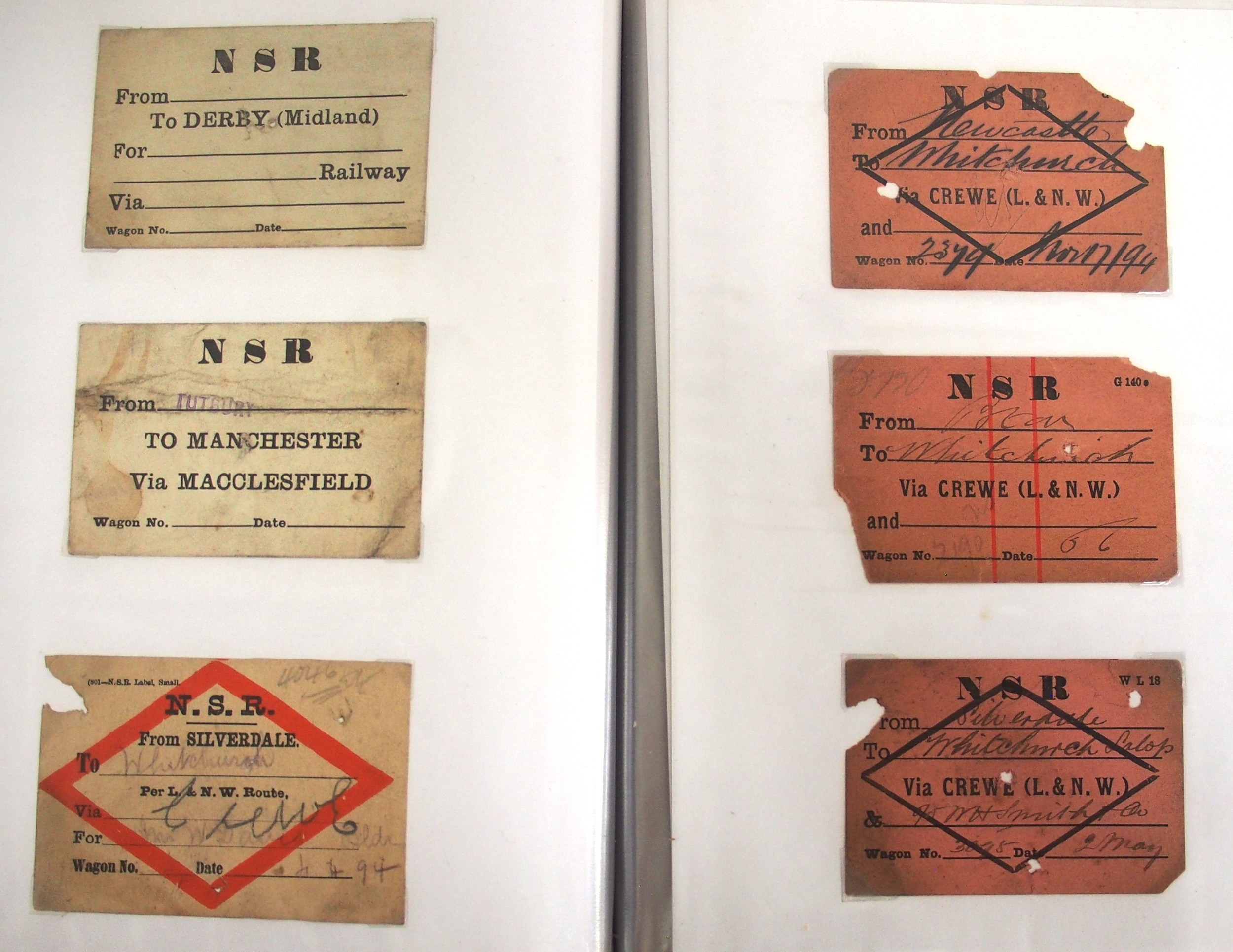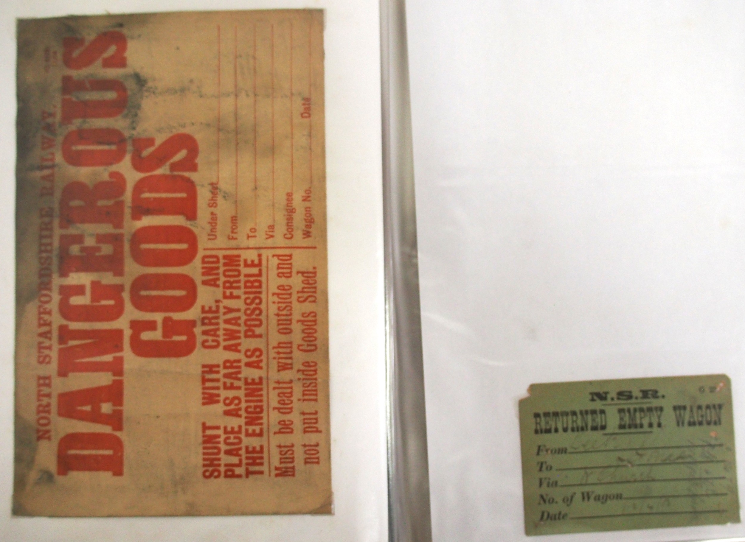 Midland & North Staffs Rly Wagon labels contained in plastic sleeve album, approx. 90. (C2) (Dispatch by Mailboxes/Collect from Banbury Depot)