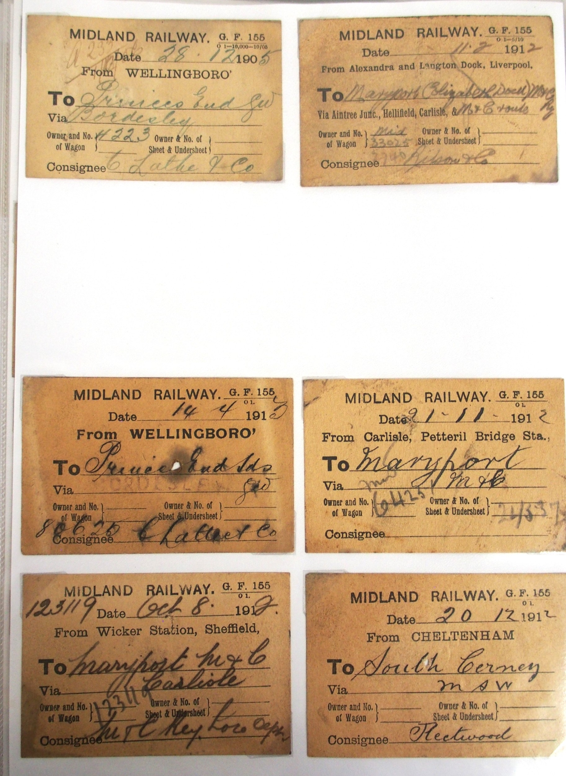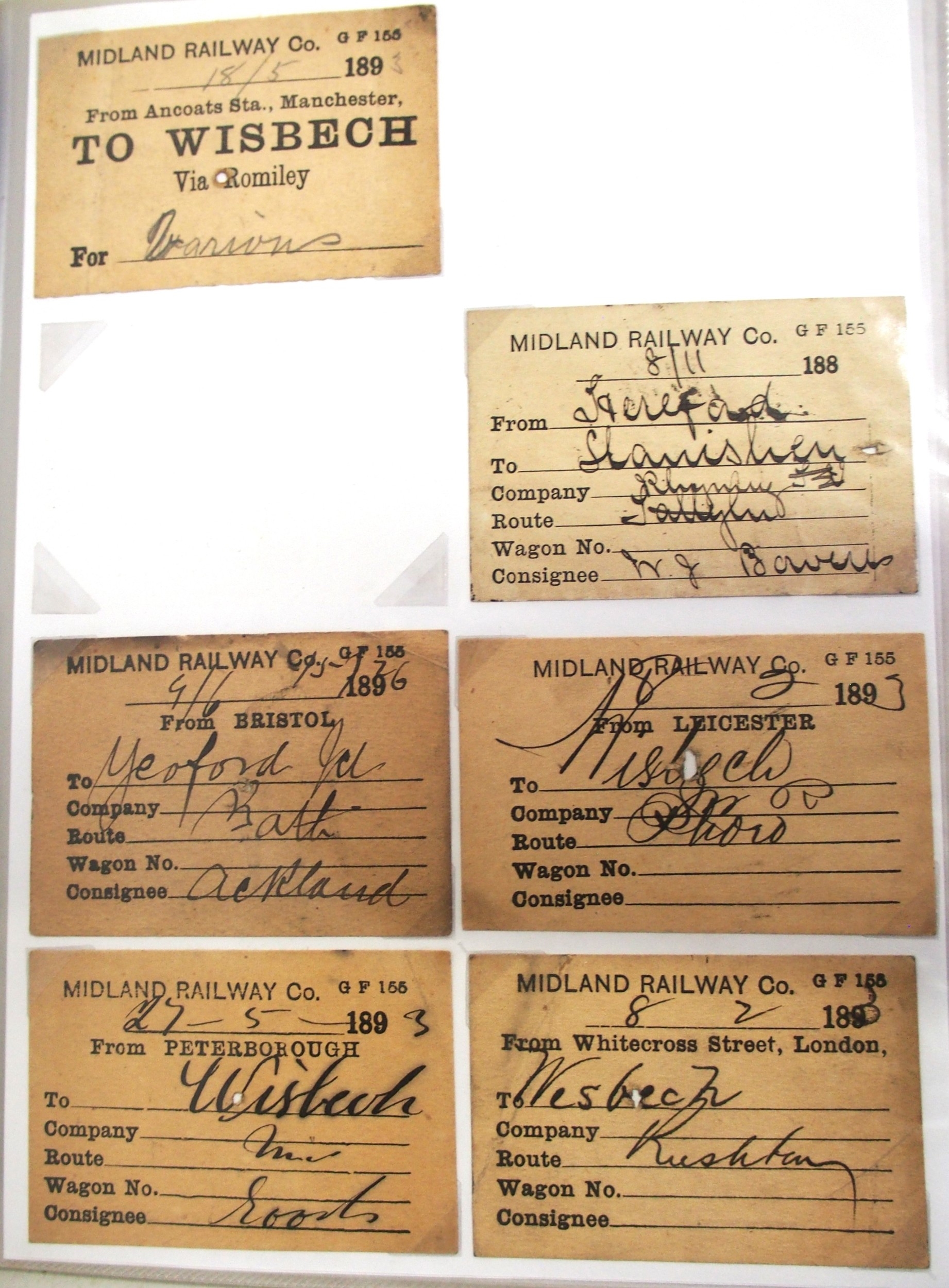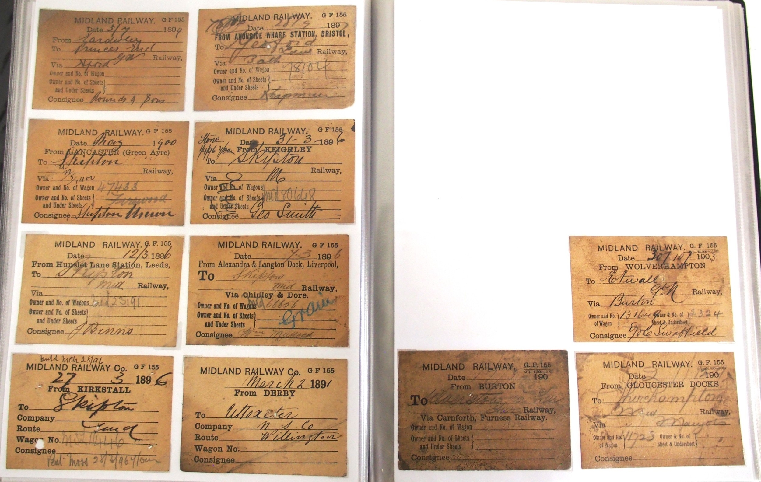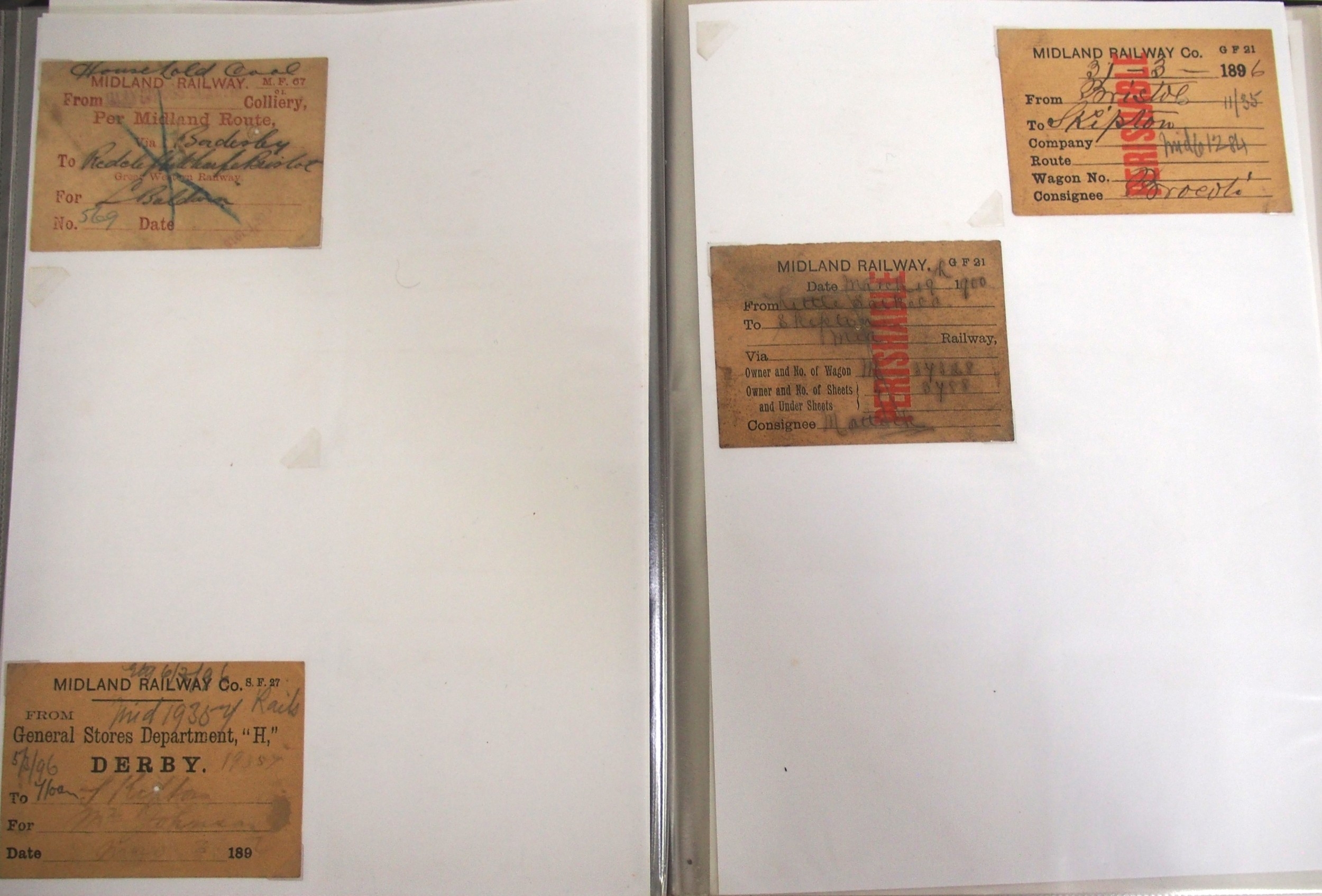 Midland & North Staffs Rly Wagon labels contained in plastic sleeve album, approx. 90. (C2) (Dispatch by Mailboxes/Collect from Banbury Depot)