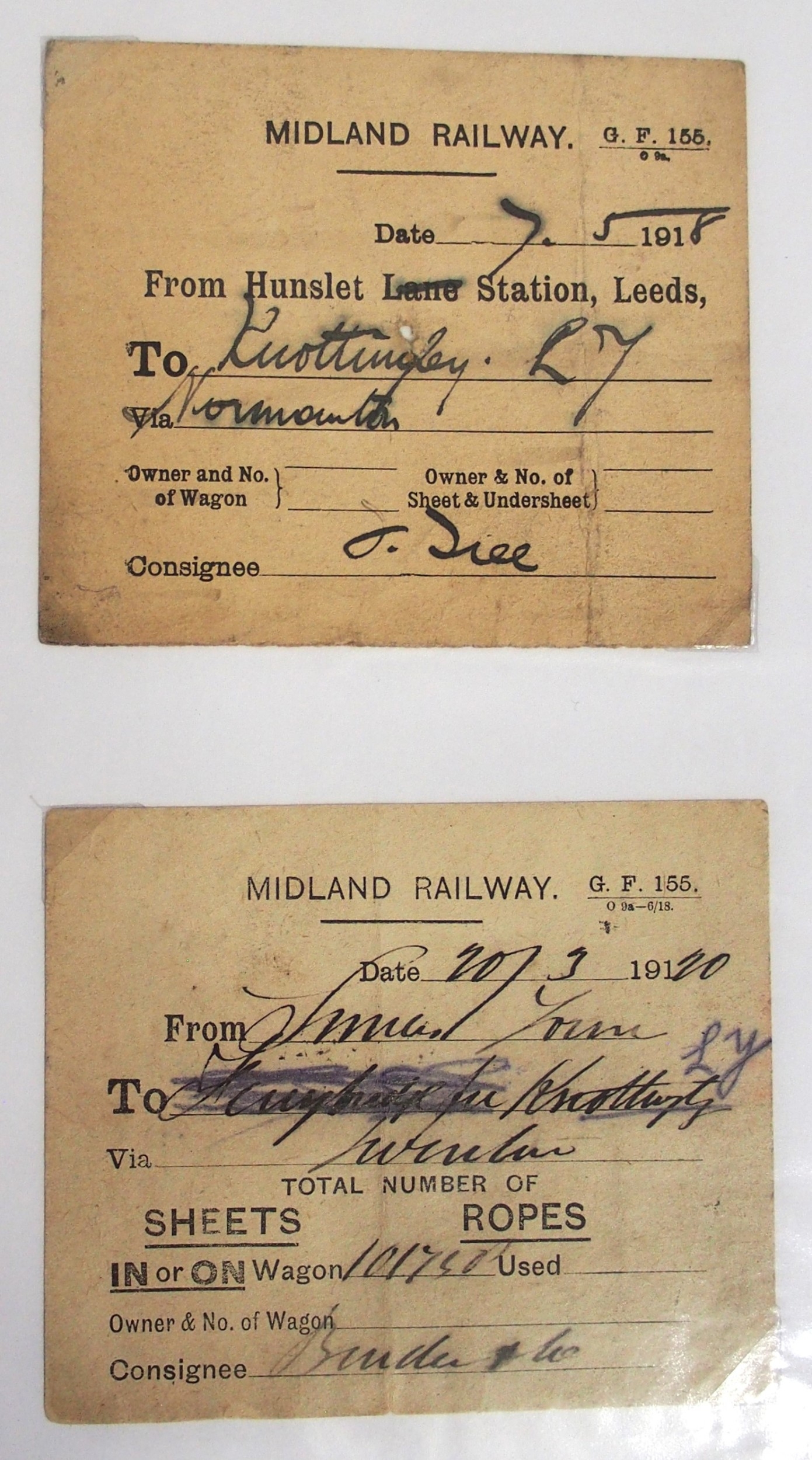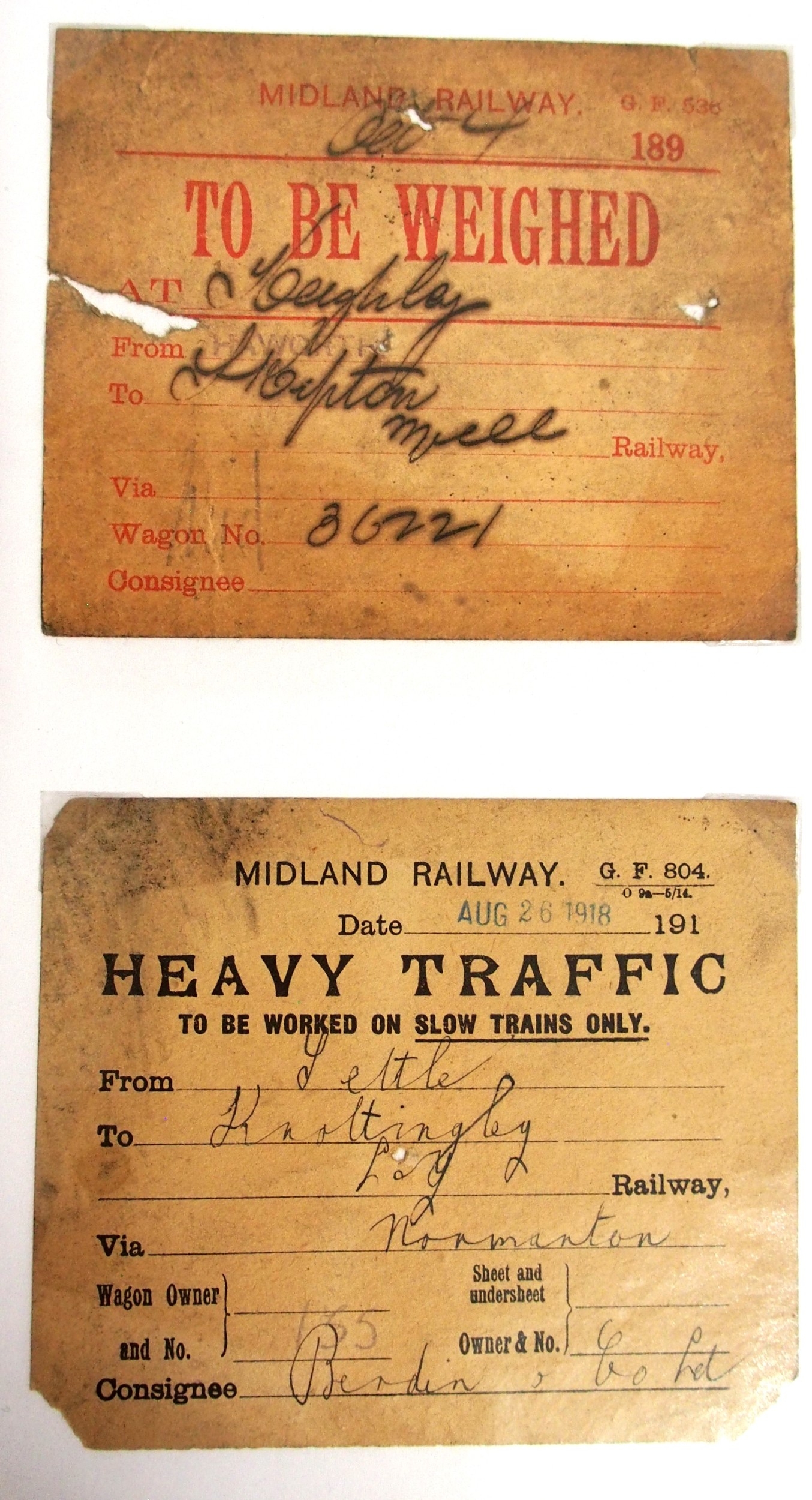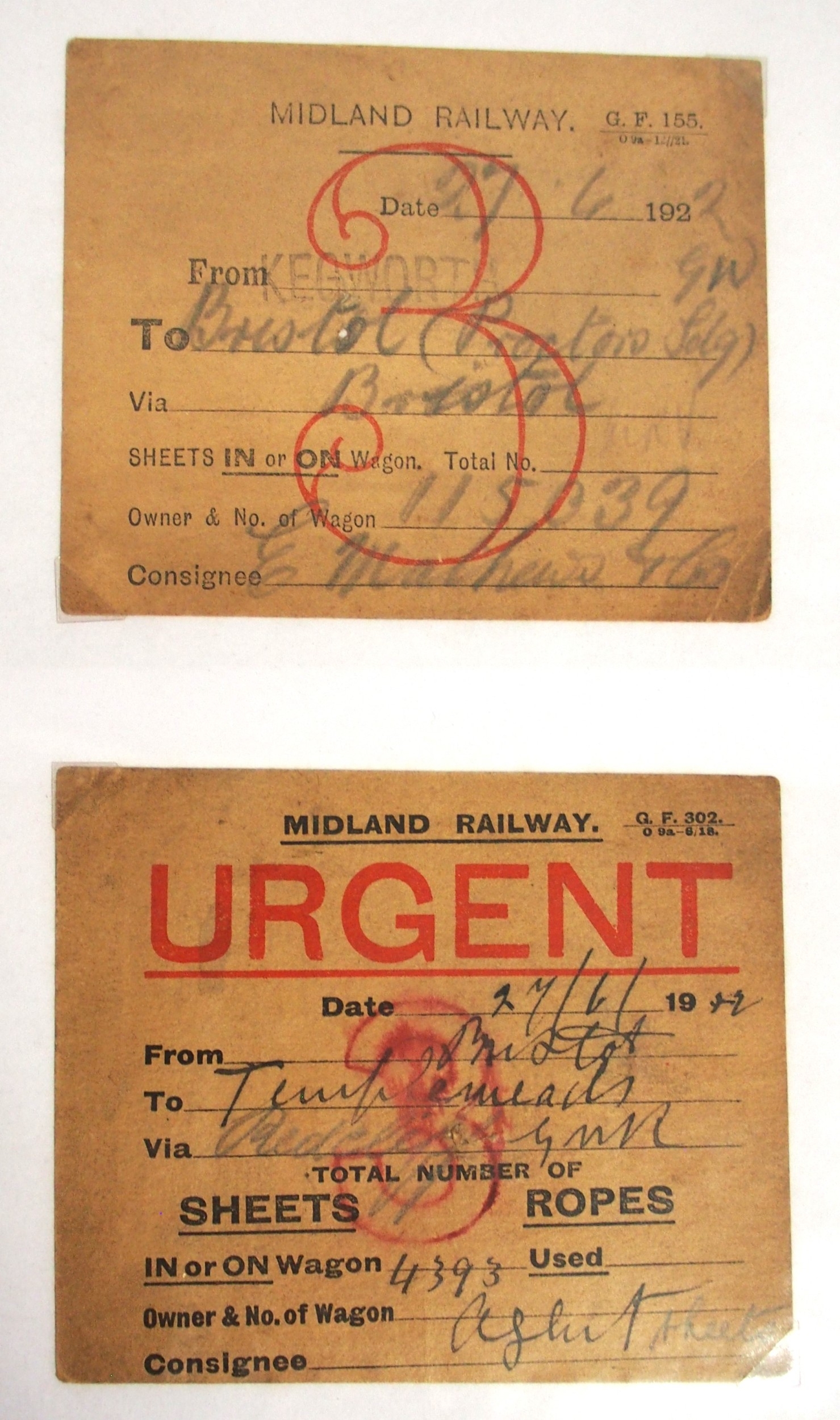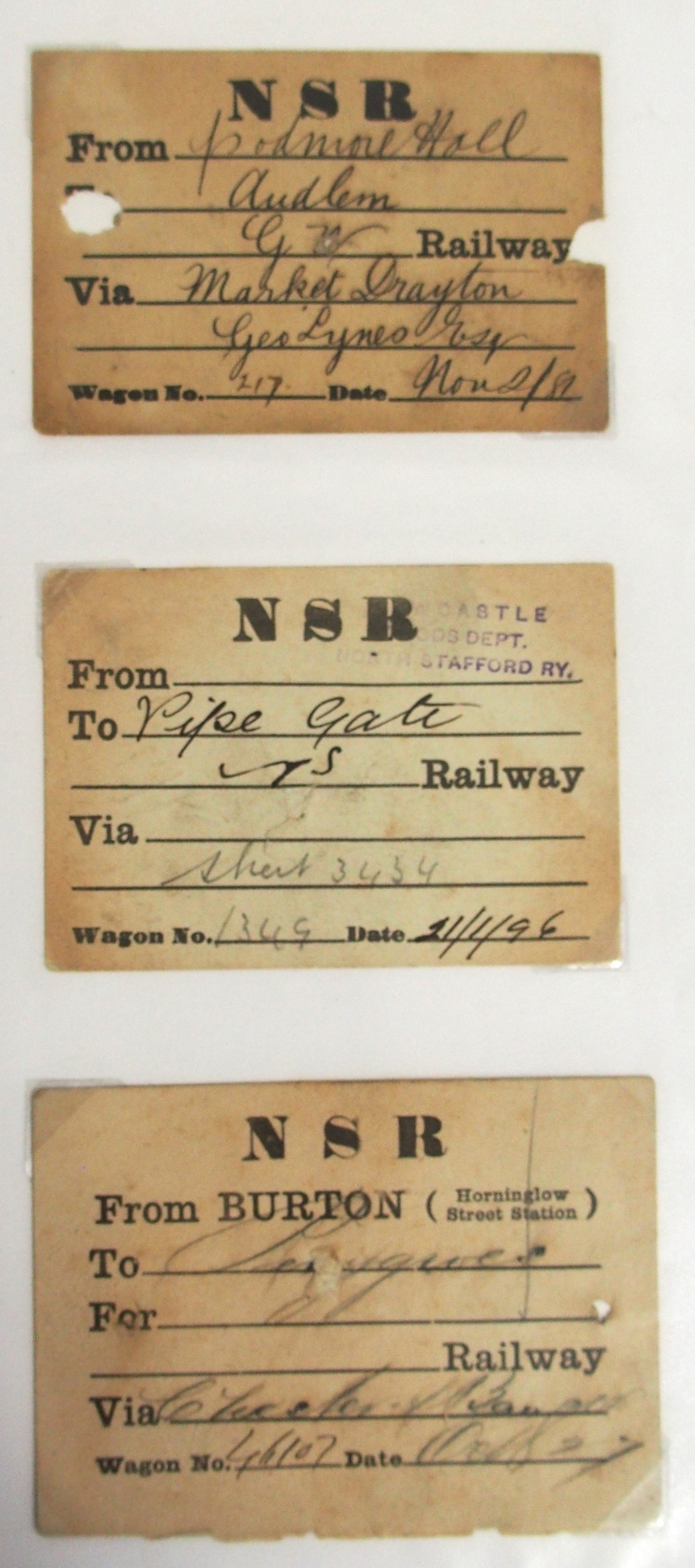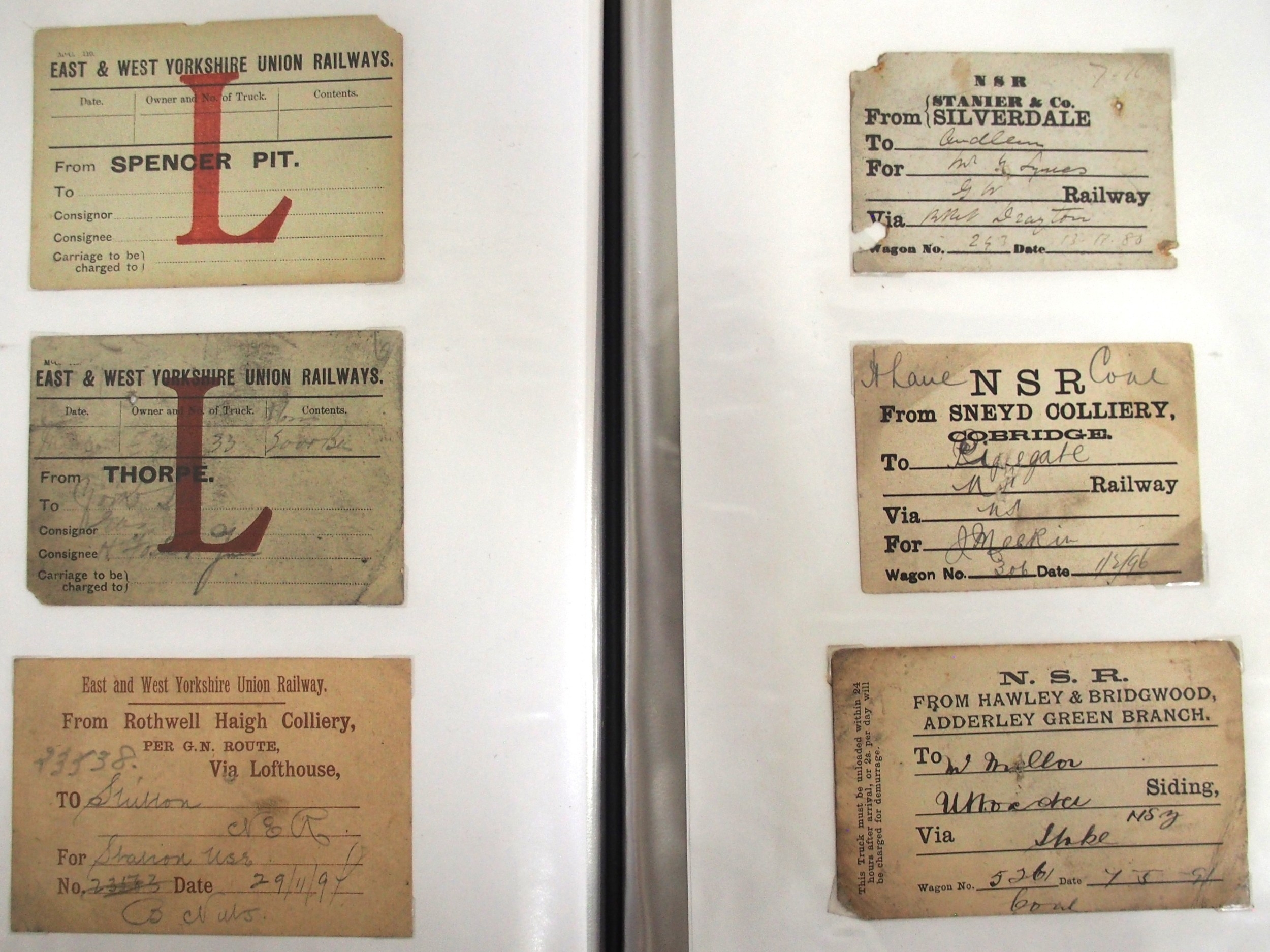 Midland & North Staffs Rly Wagon labels contained in plastic sleeve album, approx. 90. (C2) (Dispatch by Mailboxes/Collect from Banbury Depot)