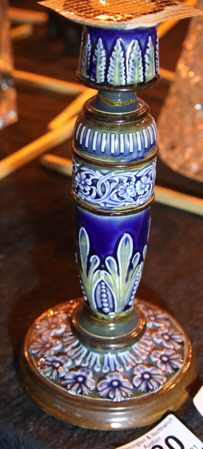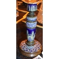 Doulton Lambeth single candlestick, H: 25 cm. P&P Group 2 (£18+VAT for the first lot and £3+VAT for subsequent lots)