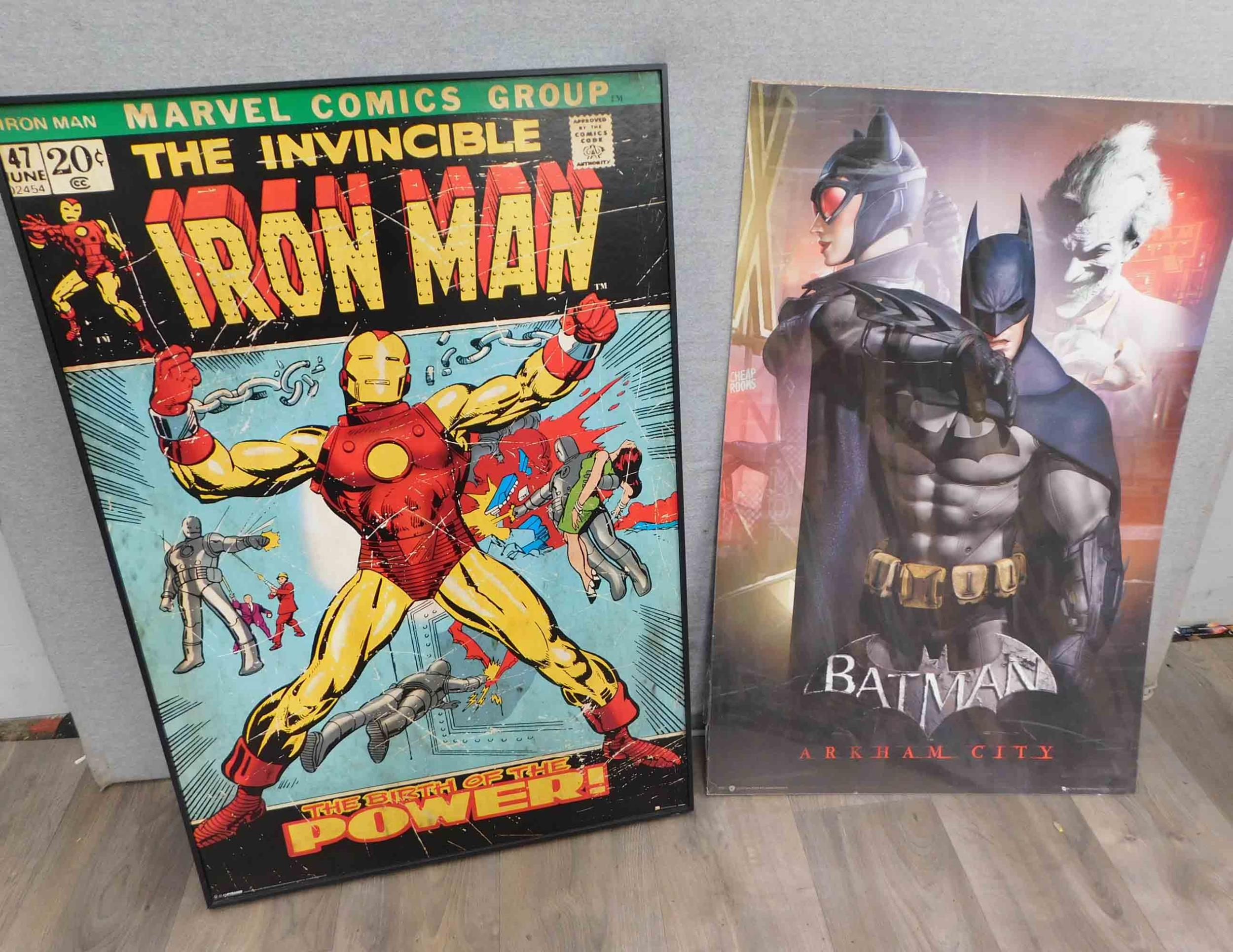 Two large Superhero prints - Iron Man and Batman