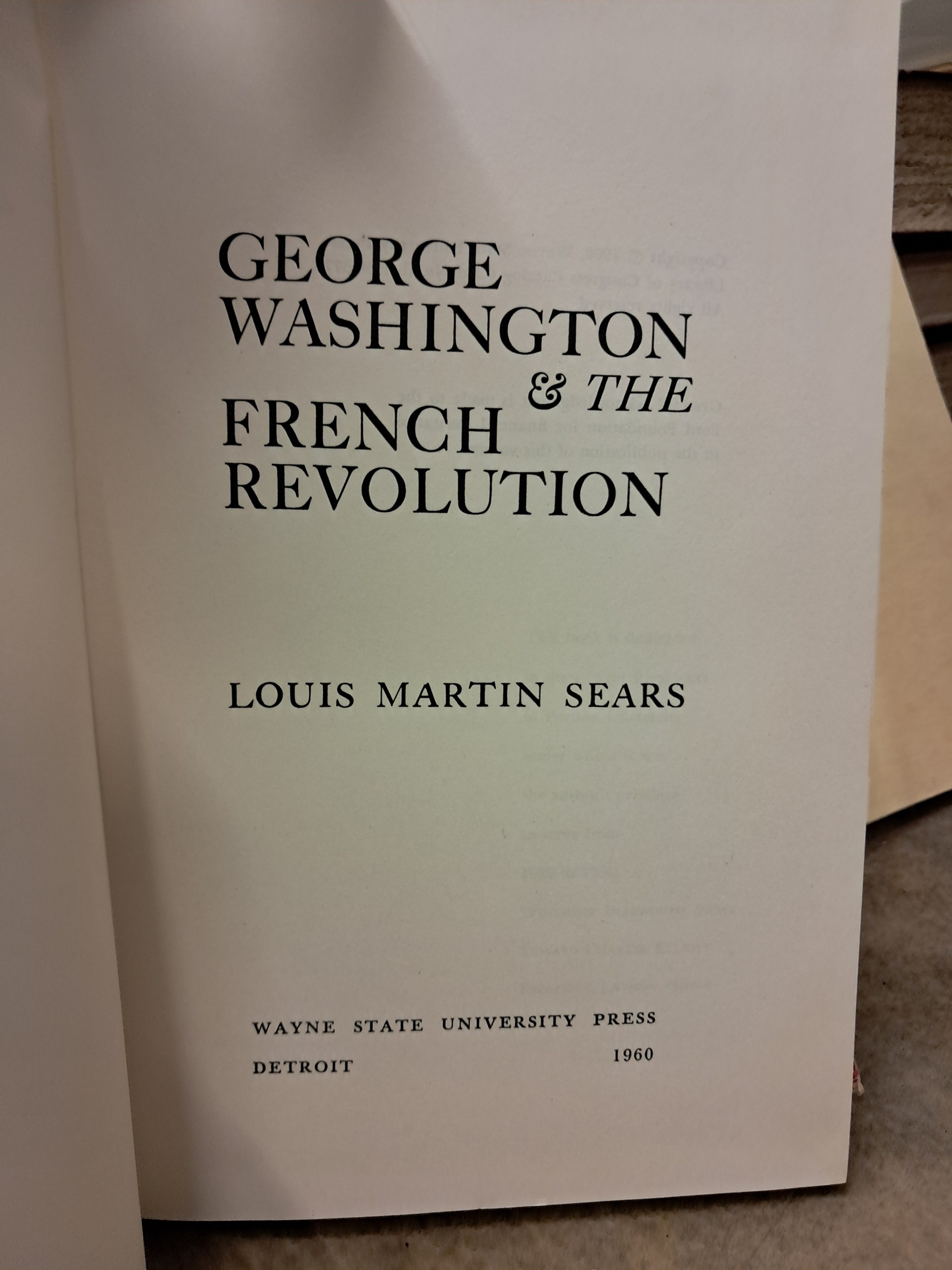 Sears "Washington and The French Revolution" Emery "Washington - A Biography"