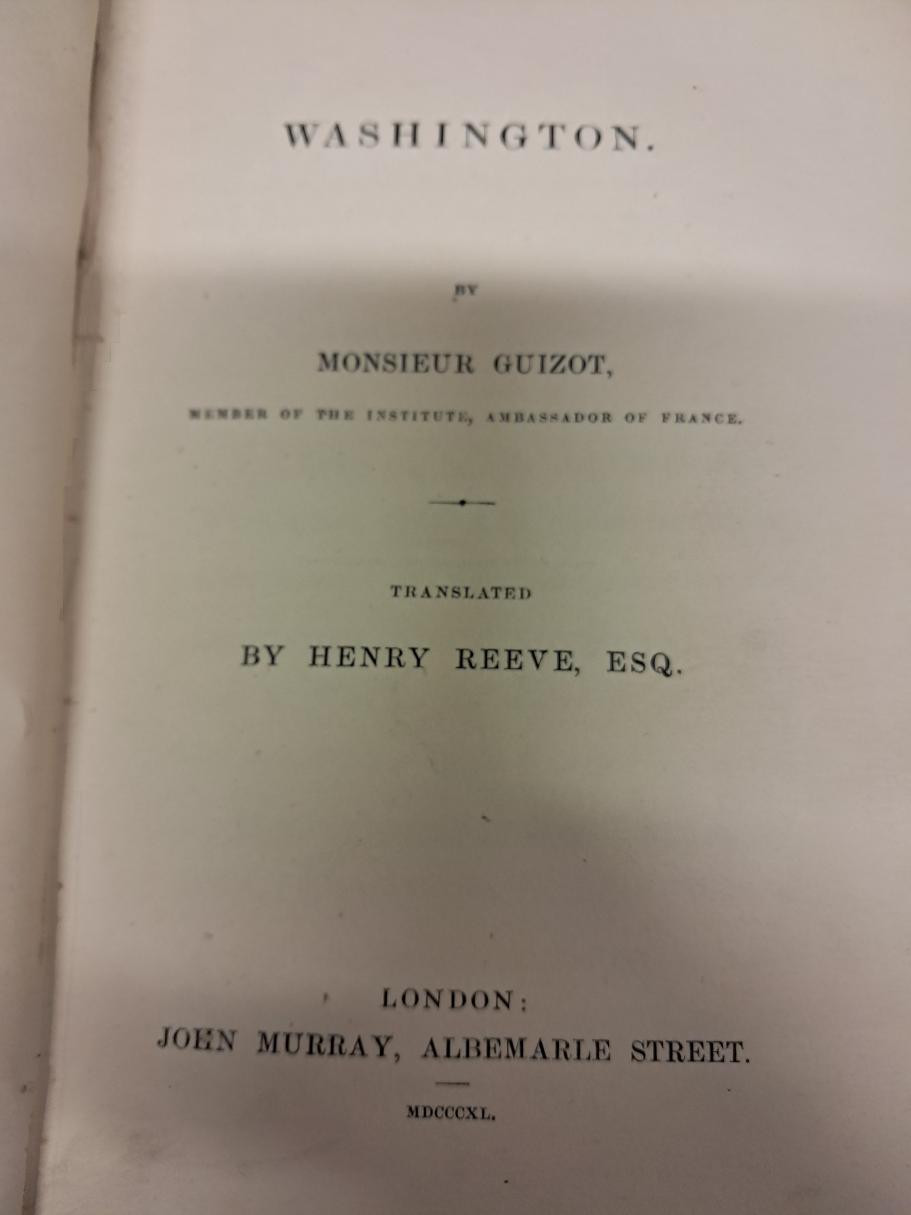 Emery "Washington - A Biography" Bedoyere "George Washington - An English Judgement" Nordham "George Washingtons Women" O'Boyle "Life of Washington"