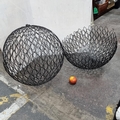 Two very large wire frame sculptural spheres by Habitat. Opens in order to display arrangements. With hook for suspending.