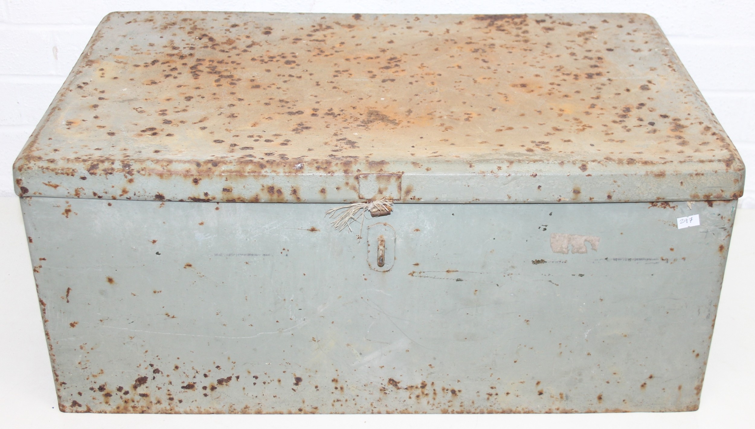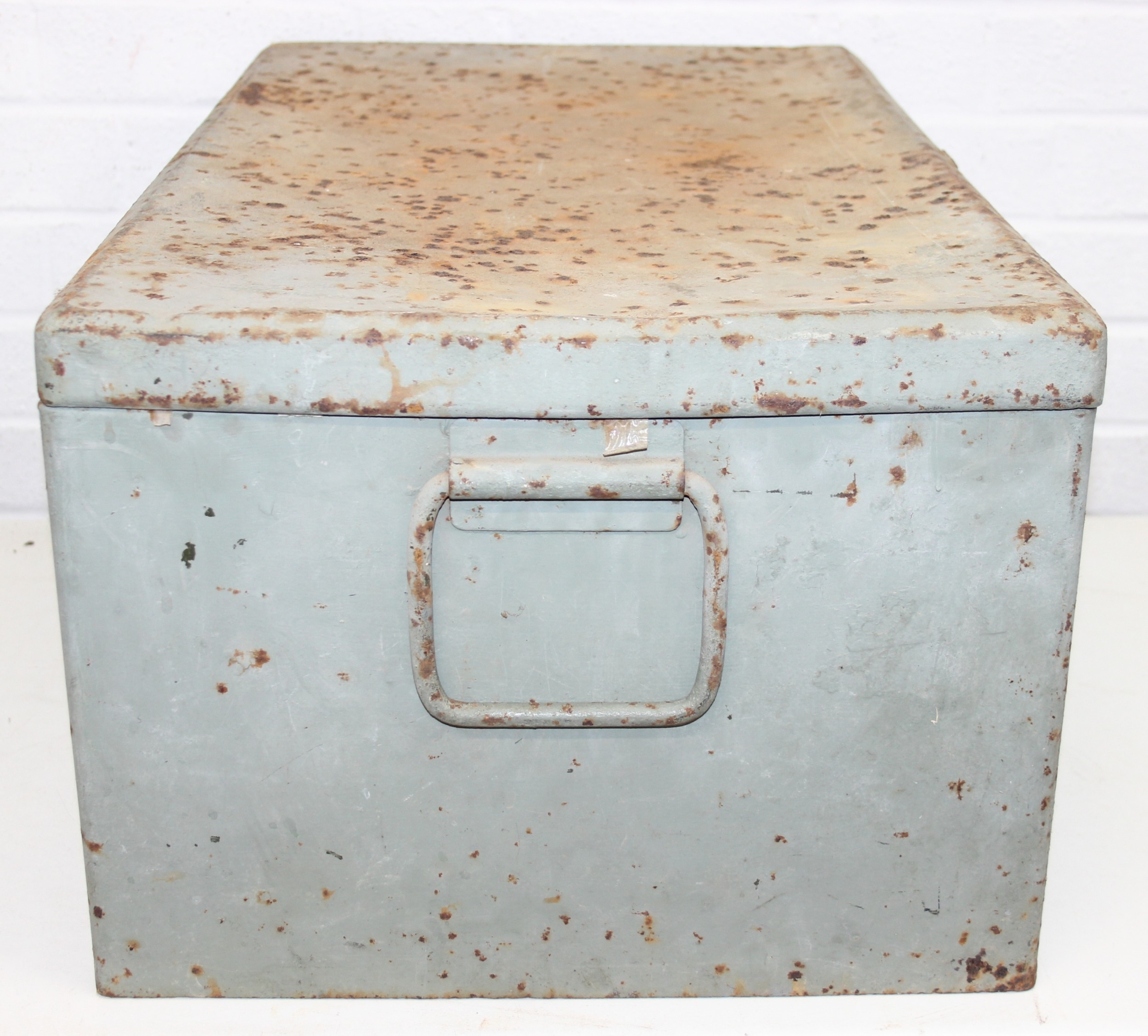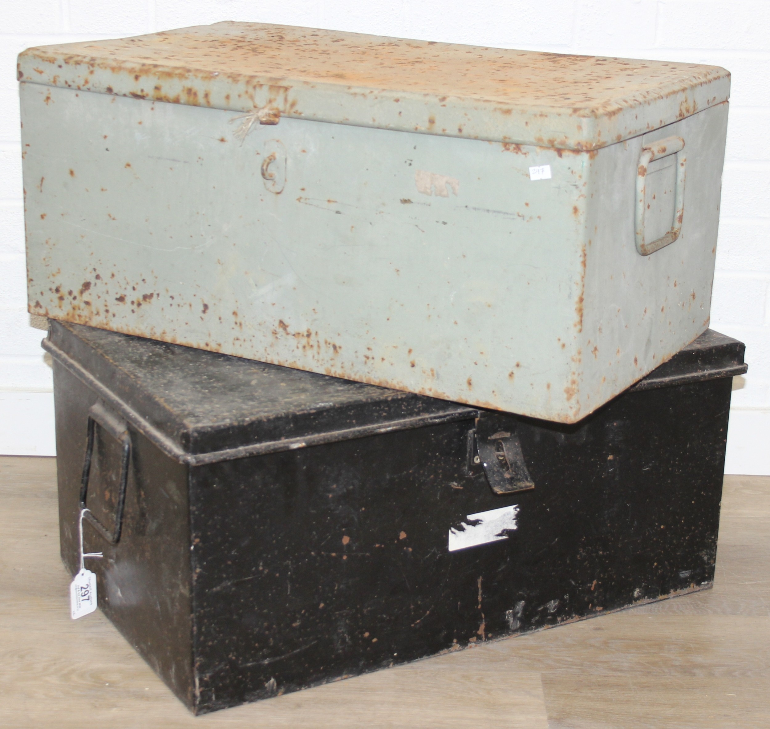 Two vintage painted metal trunks, the largest 69cm x 41cm x 31cm [2]