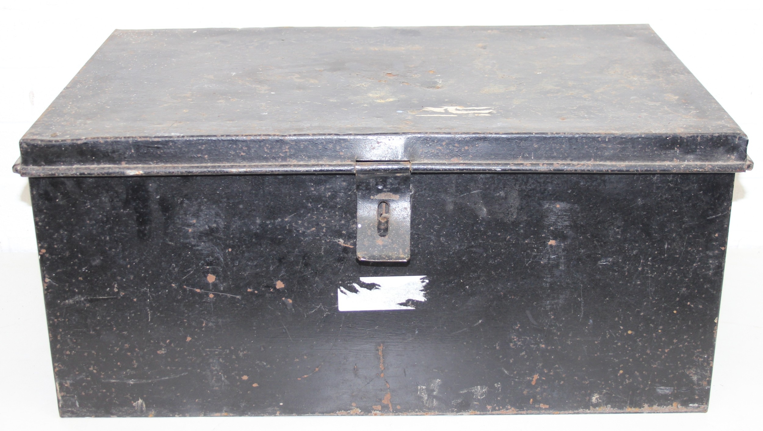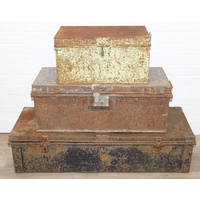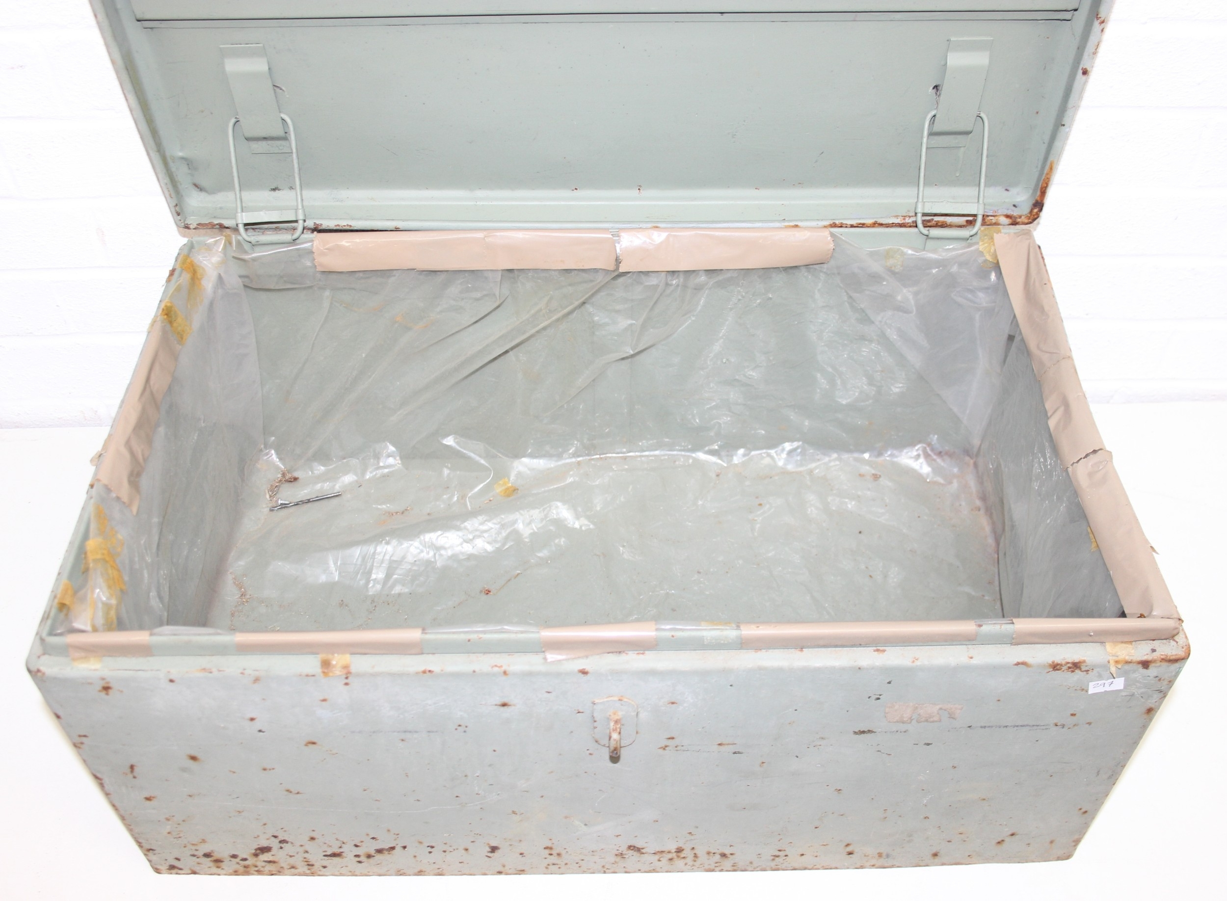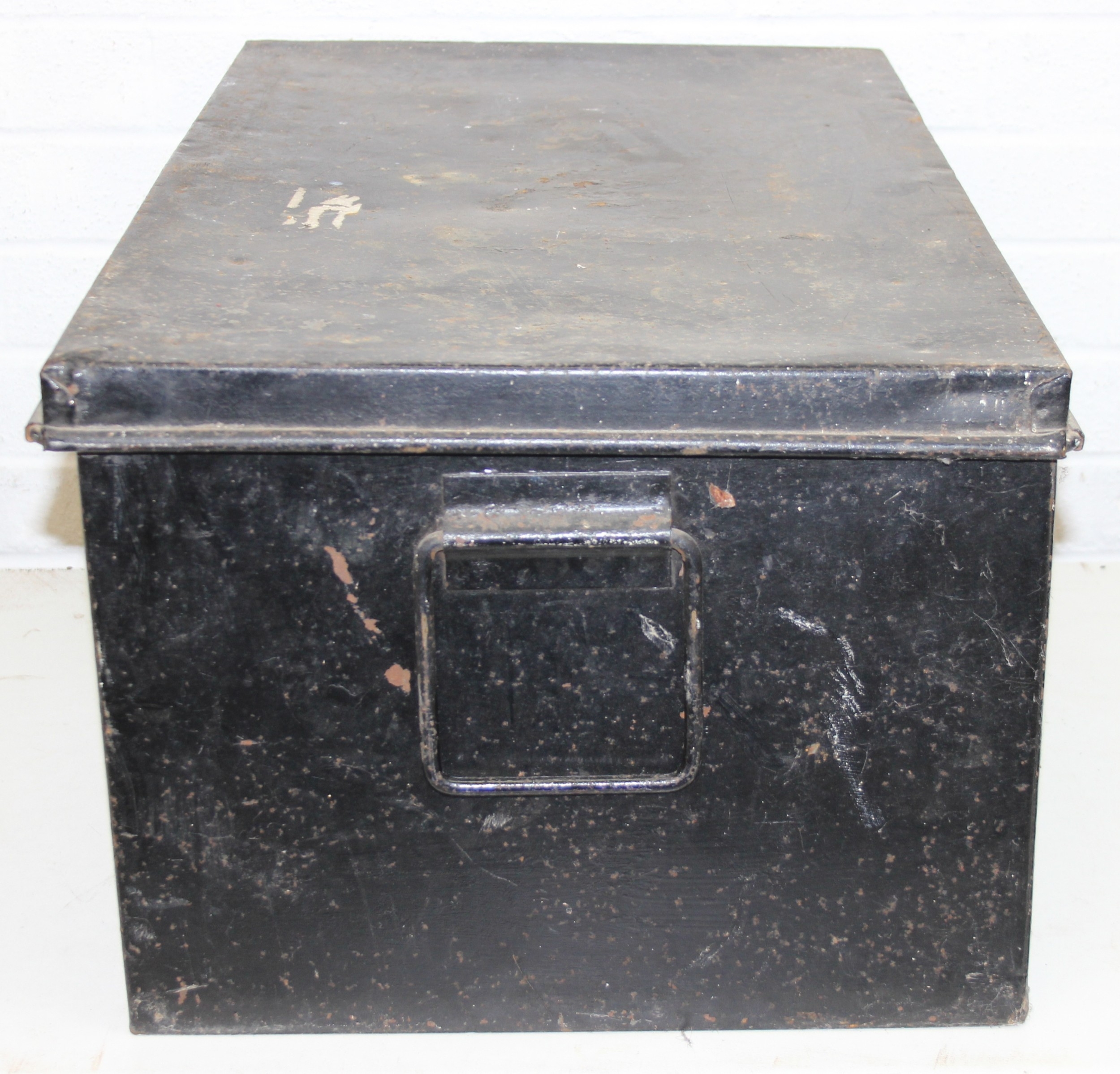 Two vintage painted metal trunks, the largest 69cm x 41cm x 31cm [2]