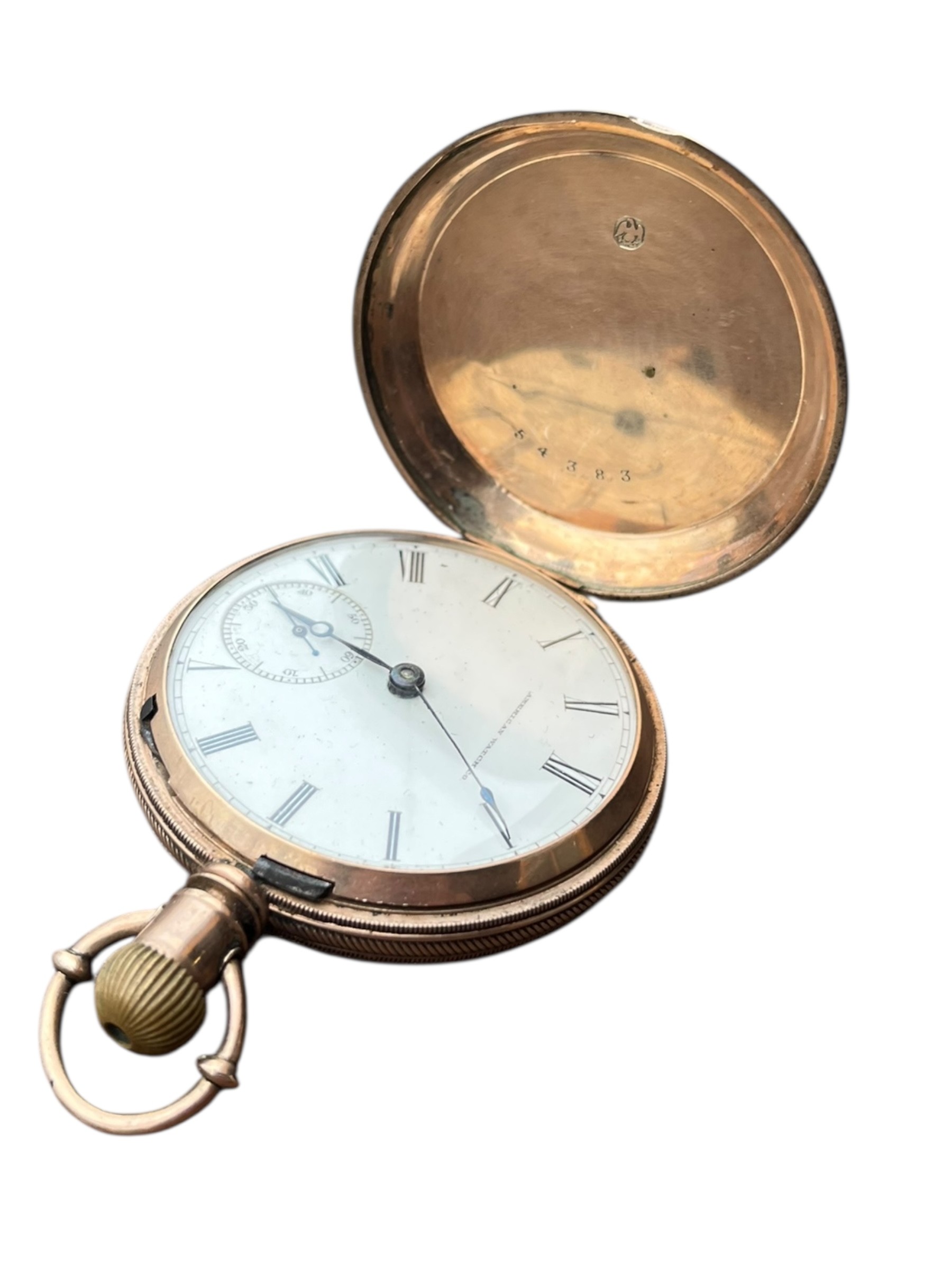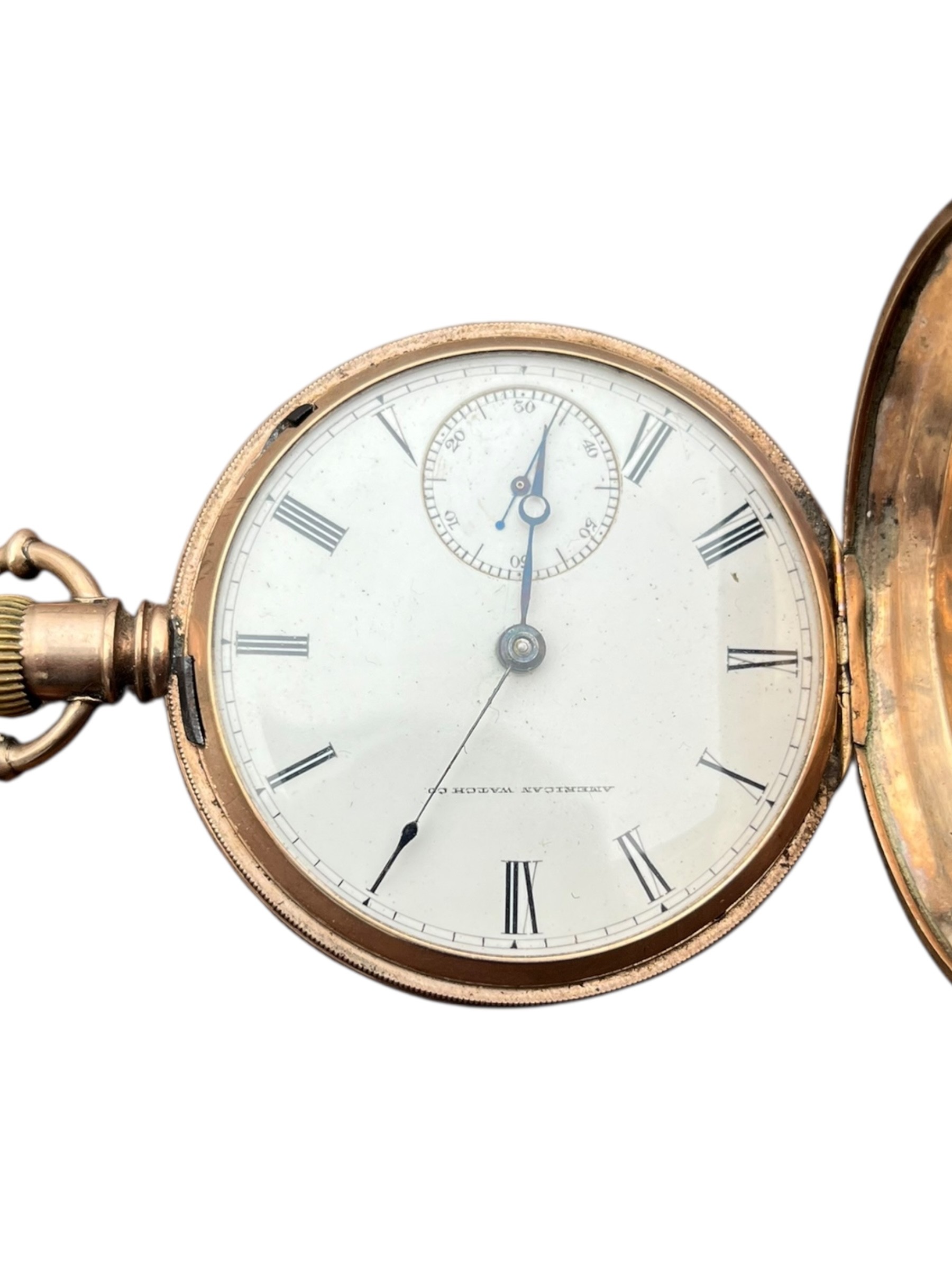 A YELLOW METAL POCKET WATCH AMERICAN WATCH CO