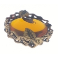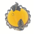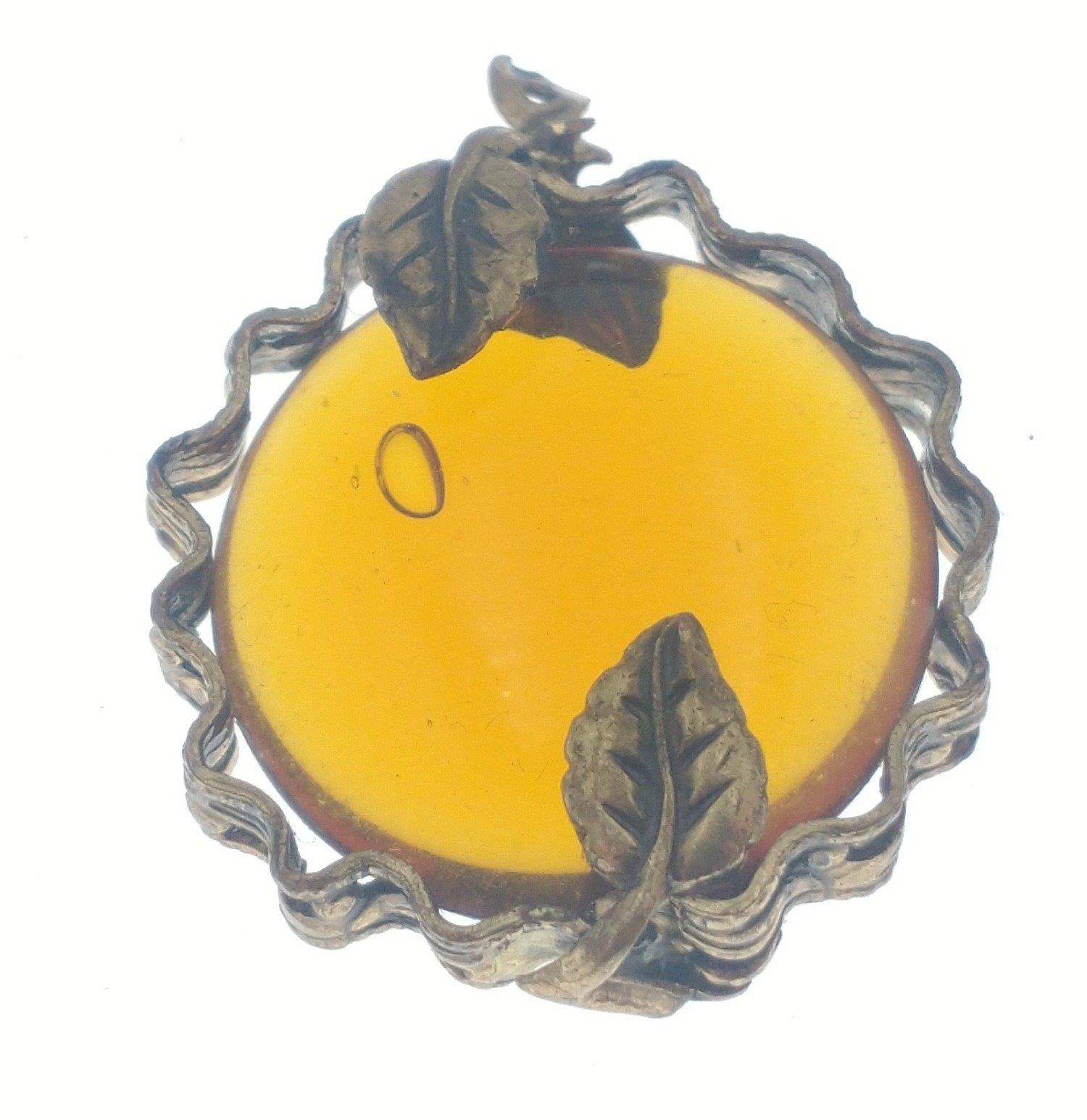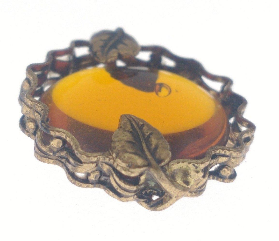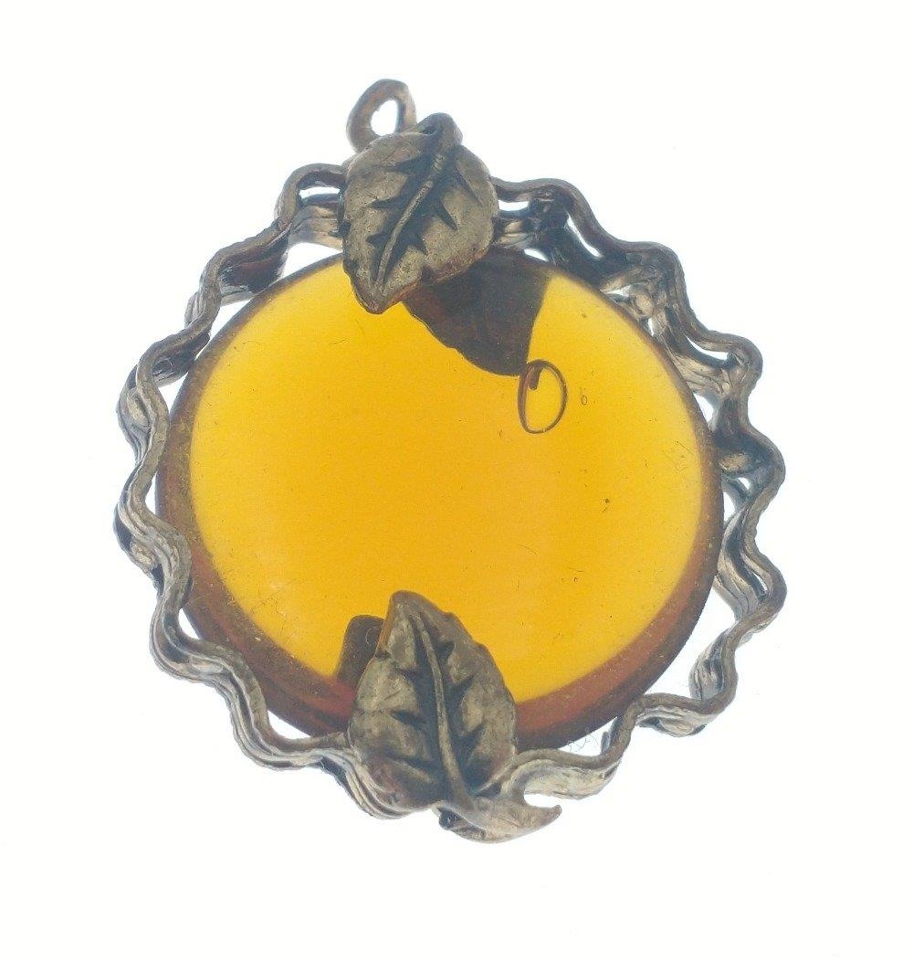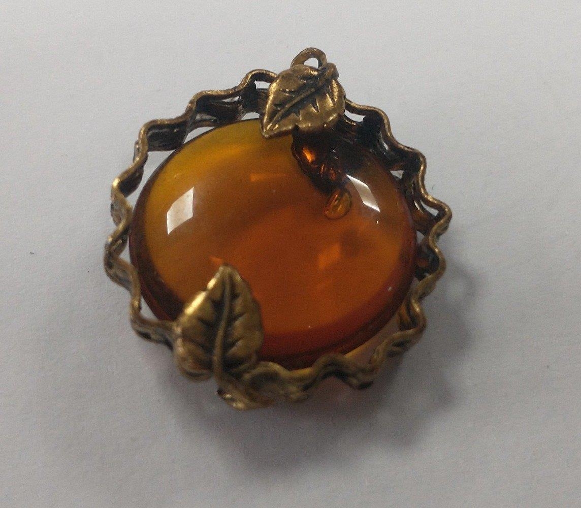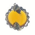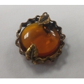 A vintage pendant with an amber bead 20mm x20mm set in a yellow metal surround held in with 4 leaves, total size 25mmx 25mm, gross weight 4.3g approx
