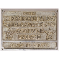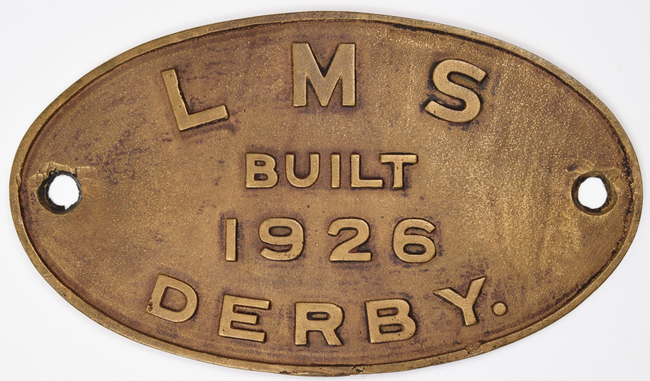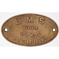 Worksplate, London & Midland Scottish Railway, LMS BUILT 1926 DERBY, from one of the 71 Fowler 4Fs built that year. Brass, 10 5/16 x 5 15/16 inches. Shipping band - B.