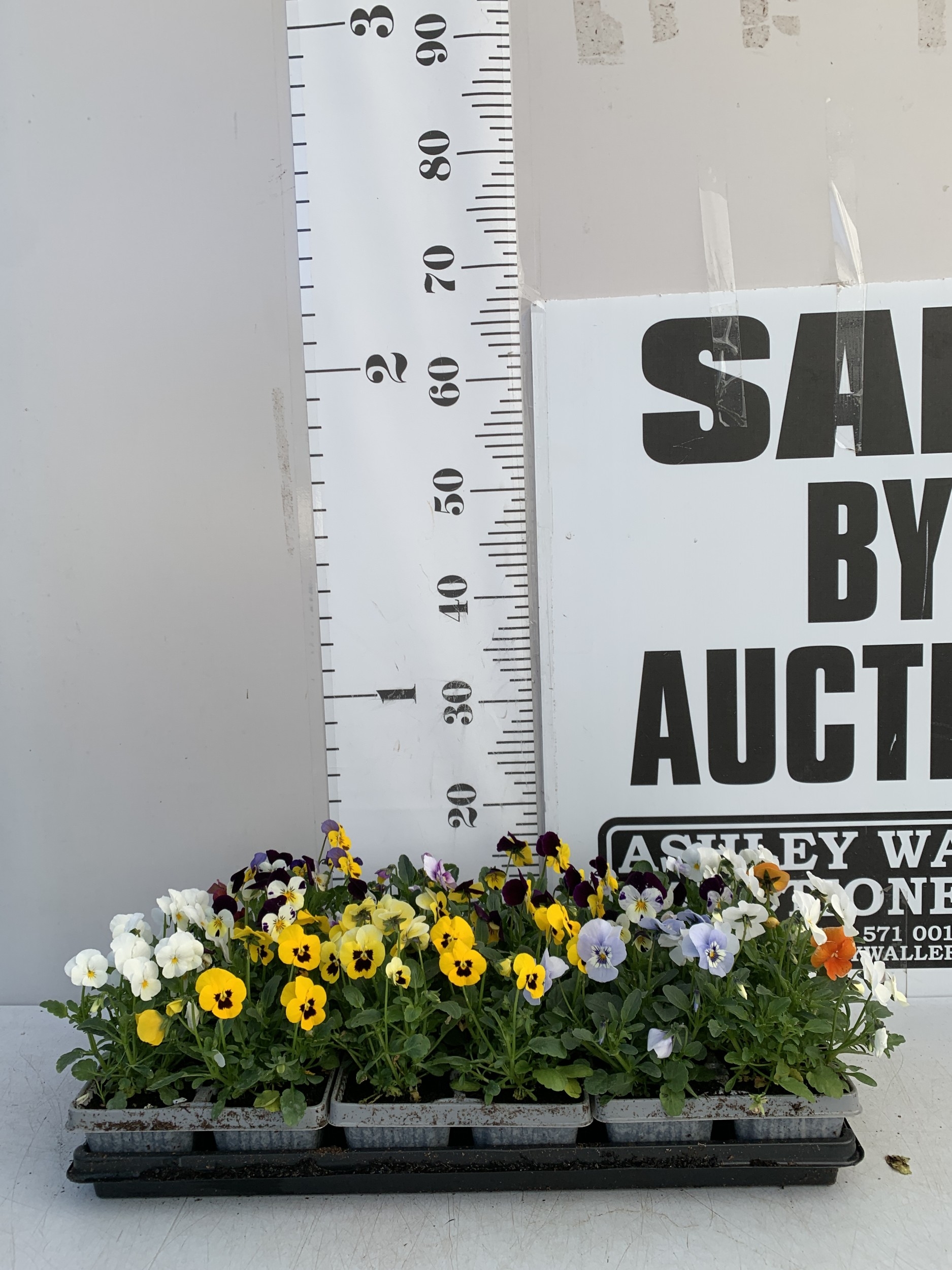 EIGHTEEN MIXED COLOUR SORBET VIOLAS ON THREE TRAYS. TO BE SO...