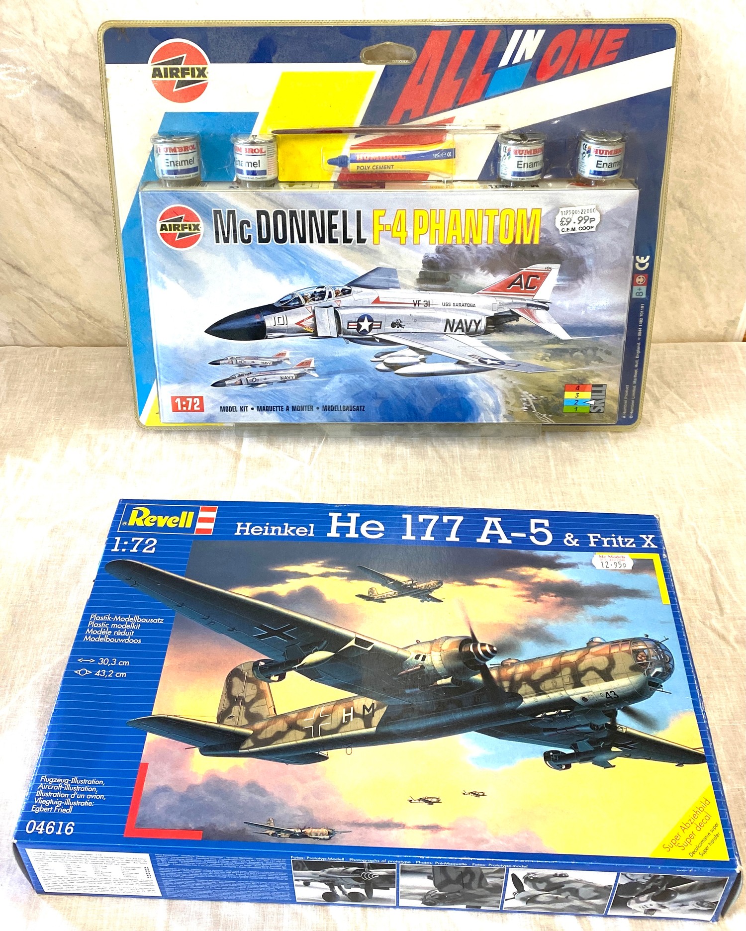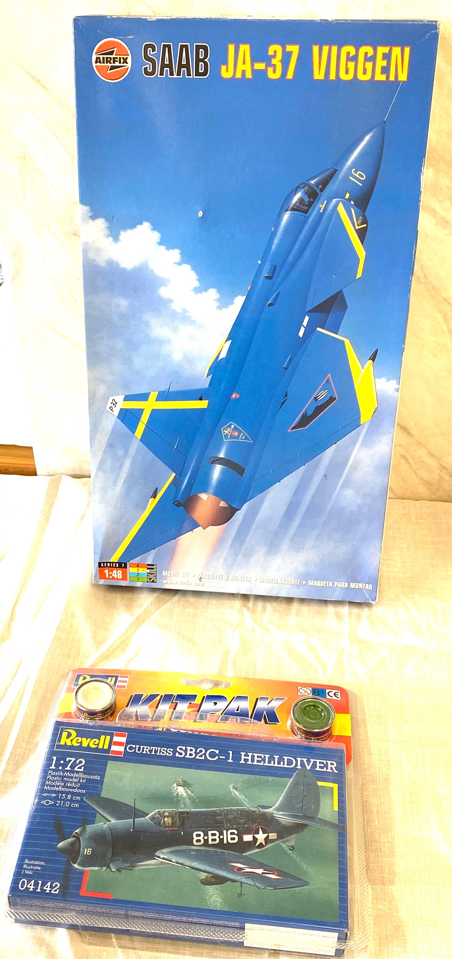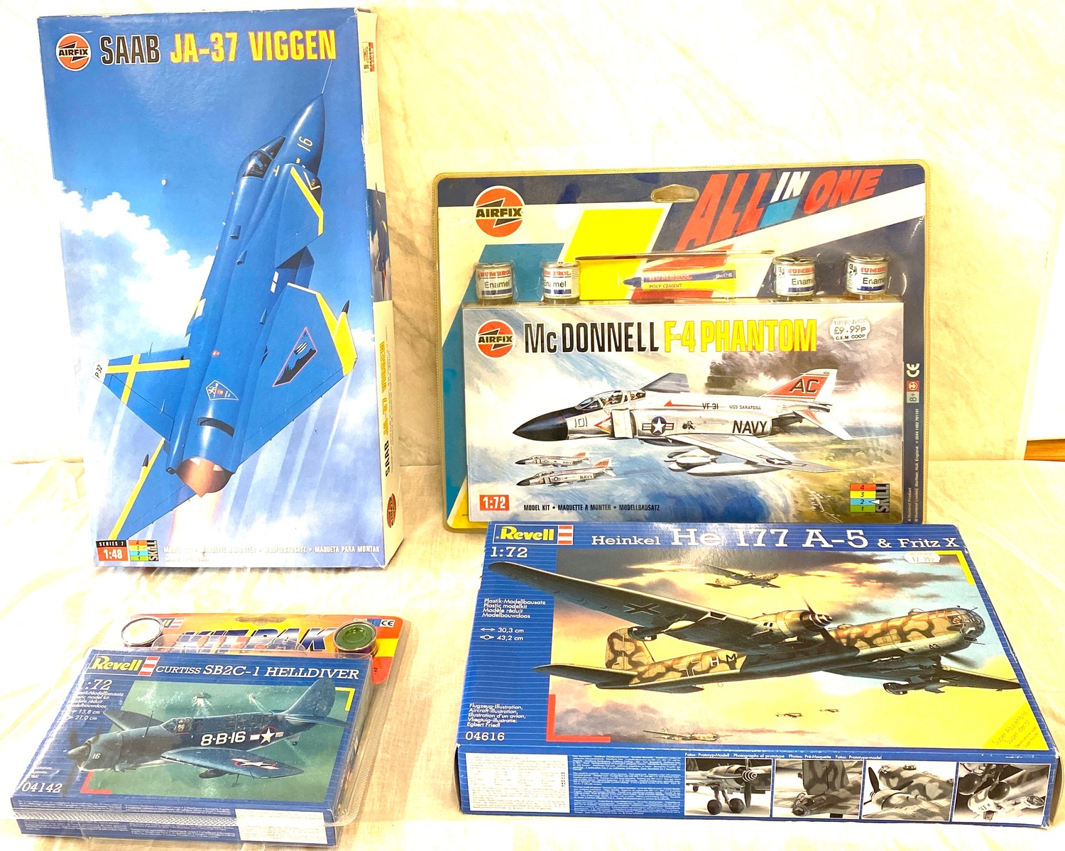 Selection of aircraft models in original boxes, Airfix Saab JA-37 Viggin, Airfix McDonnell, Revell HE177 A-5, Revell Curtiss SB2C-1 Helldiver