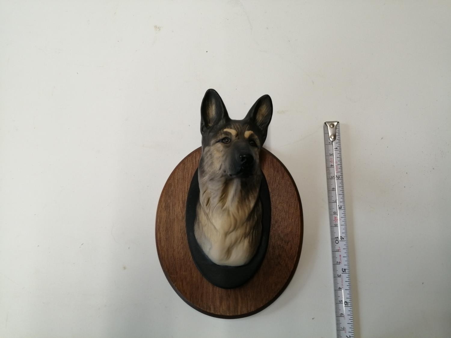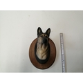 Beswick matt glaze Alsatian dog bust mounted on wood as wall fixture in good order
