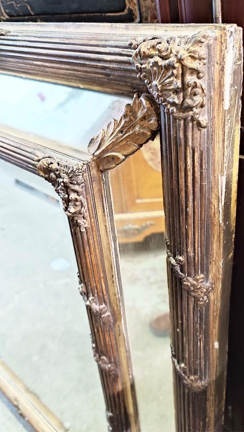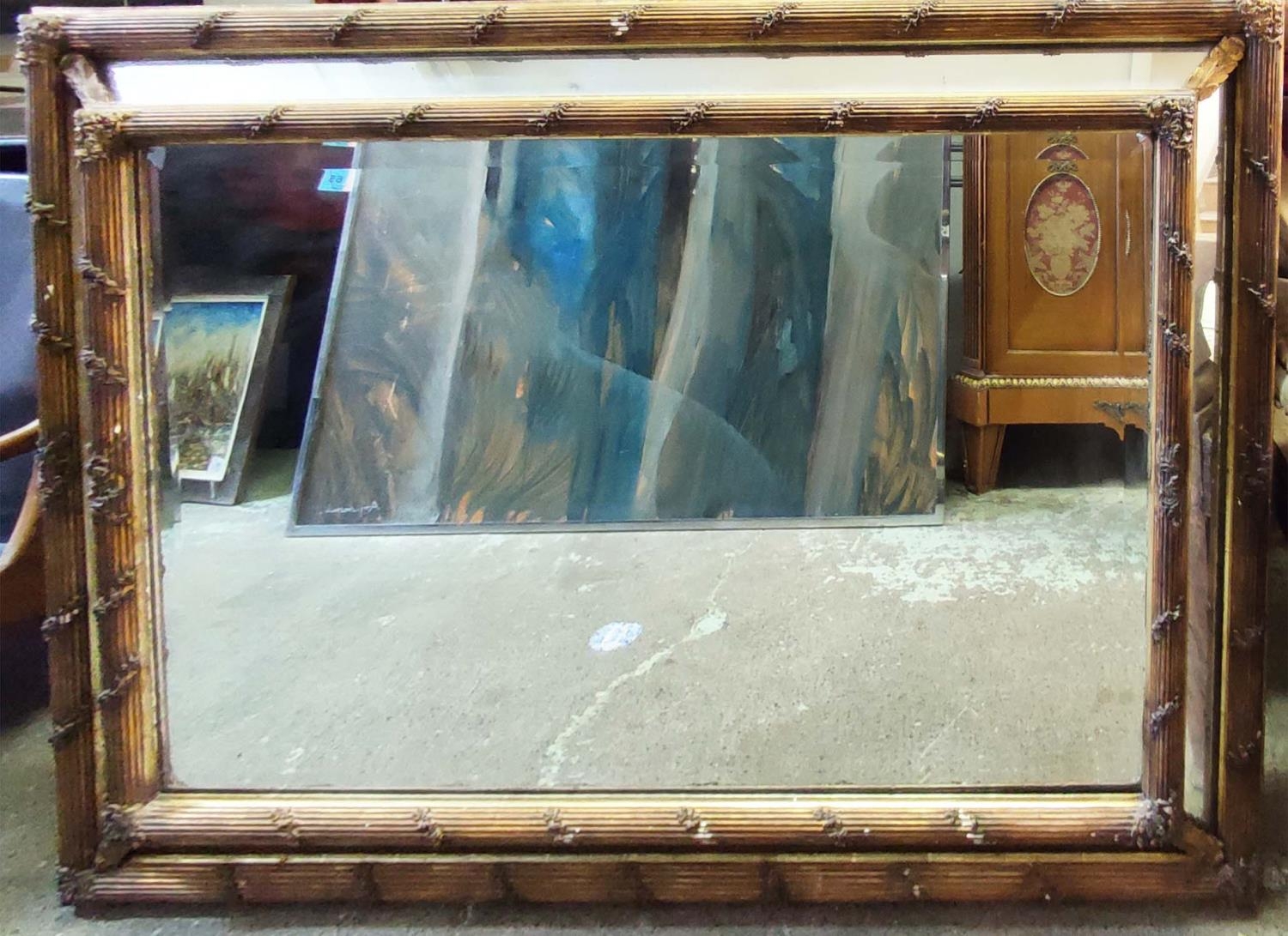 WALL MIRROR, 143cm x 102cm D, late 19th century giltwood and gesso with reeded and floral cushion frame and a bevelled central plate.