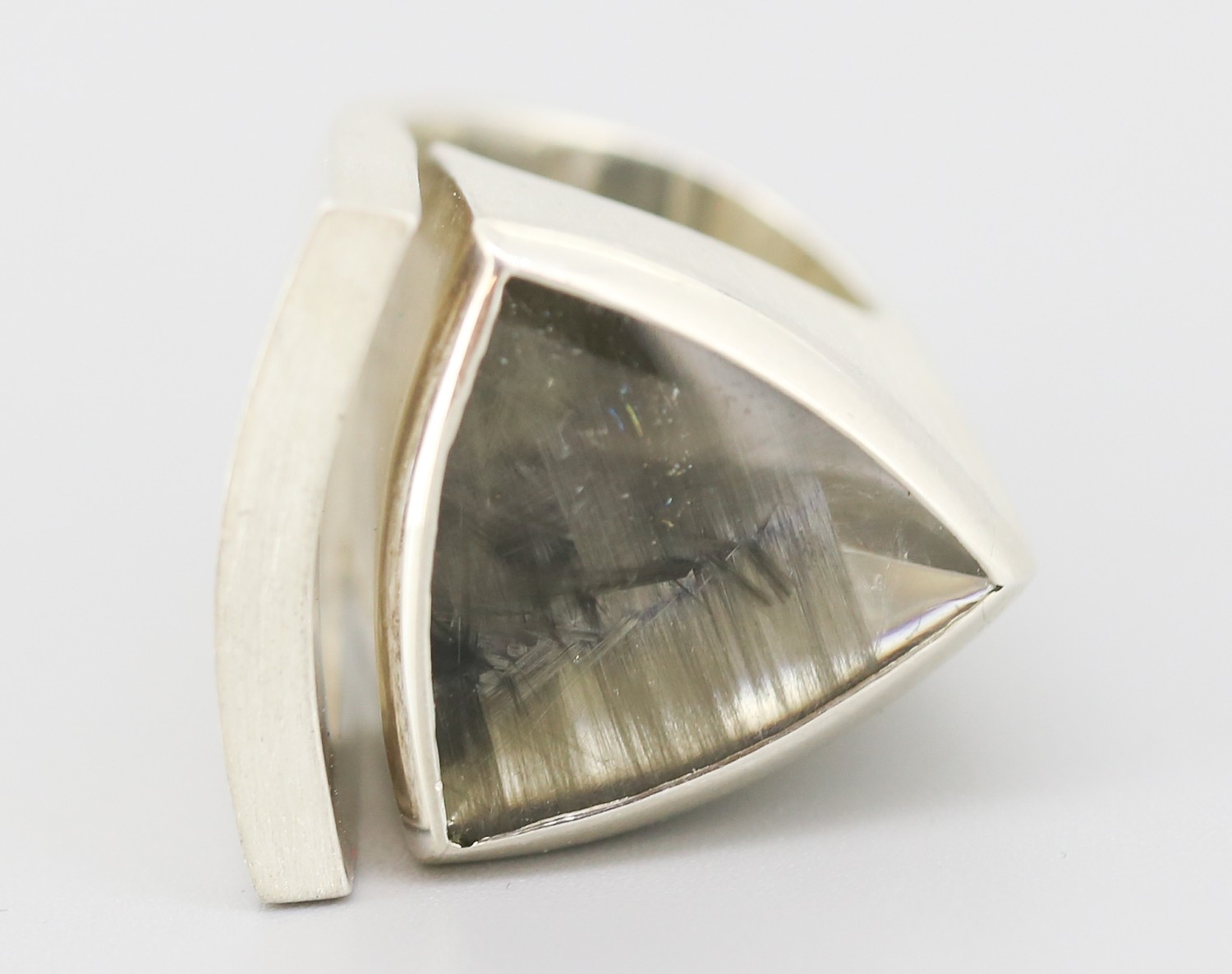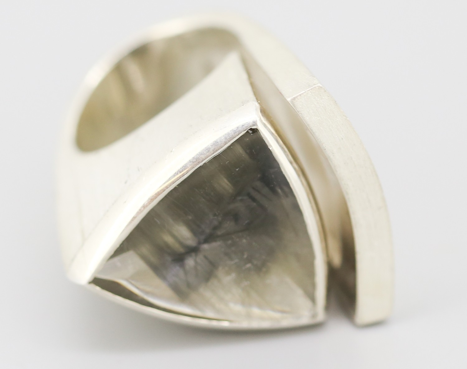Rutilated Quartz Set Single Stone Statement Ring Mounted in Silver Ring Size L