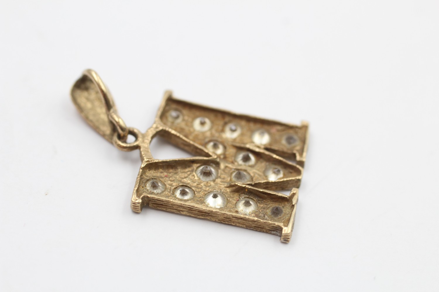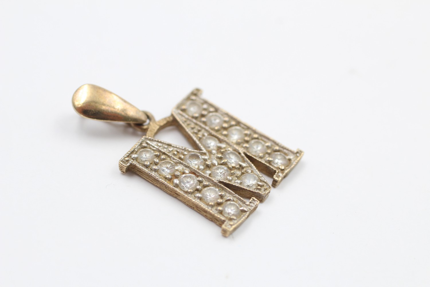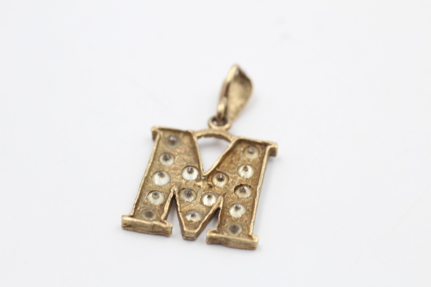 9ct gold letter M gemstone pendant (3.3g)
