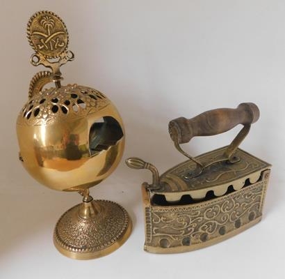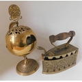 Large brass globe ashtray & large iron trinket box