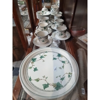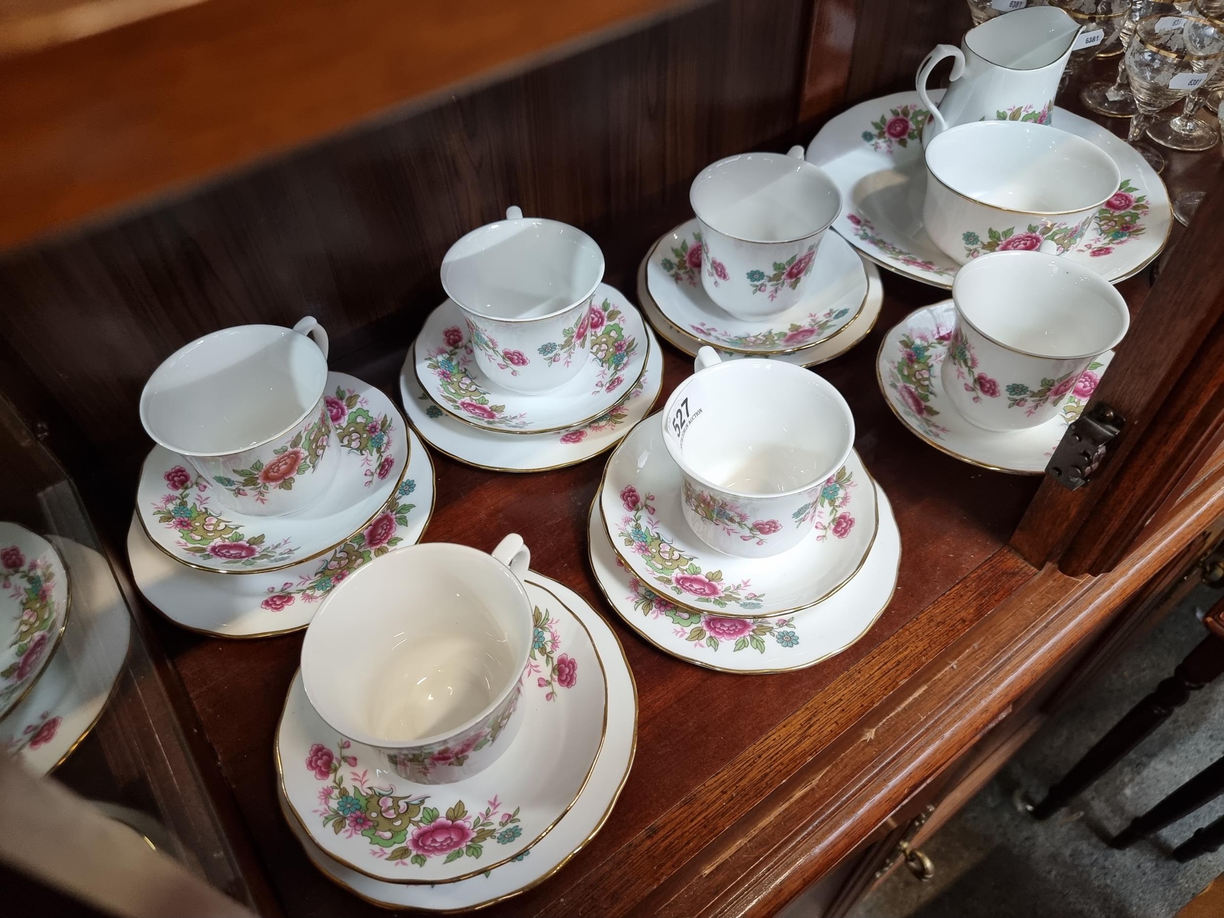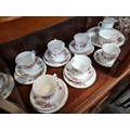 21 pieces of Queen Anne bone China in a very pretty floral pattern in pinks, greens and blues chrysanthemums and wildflowers in good condition.