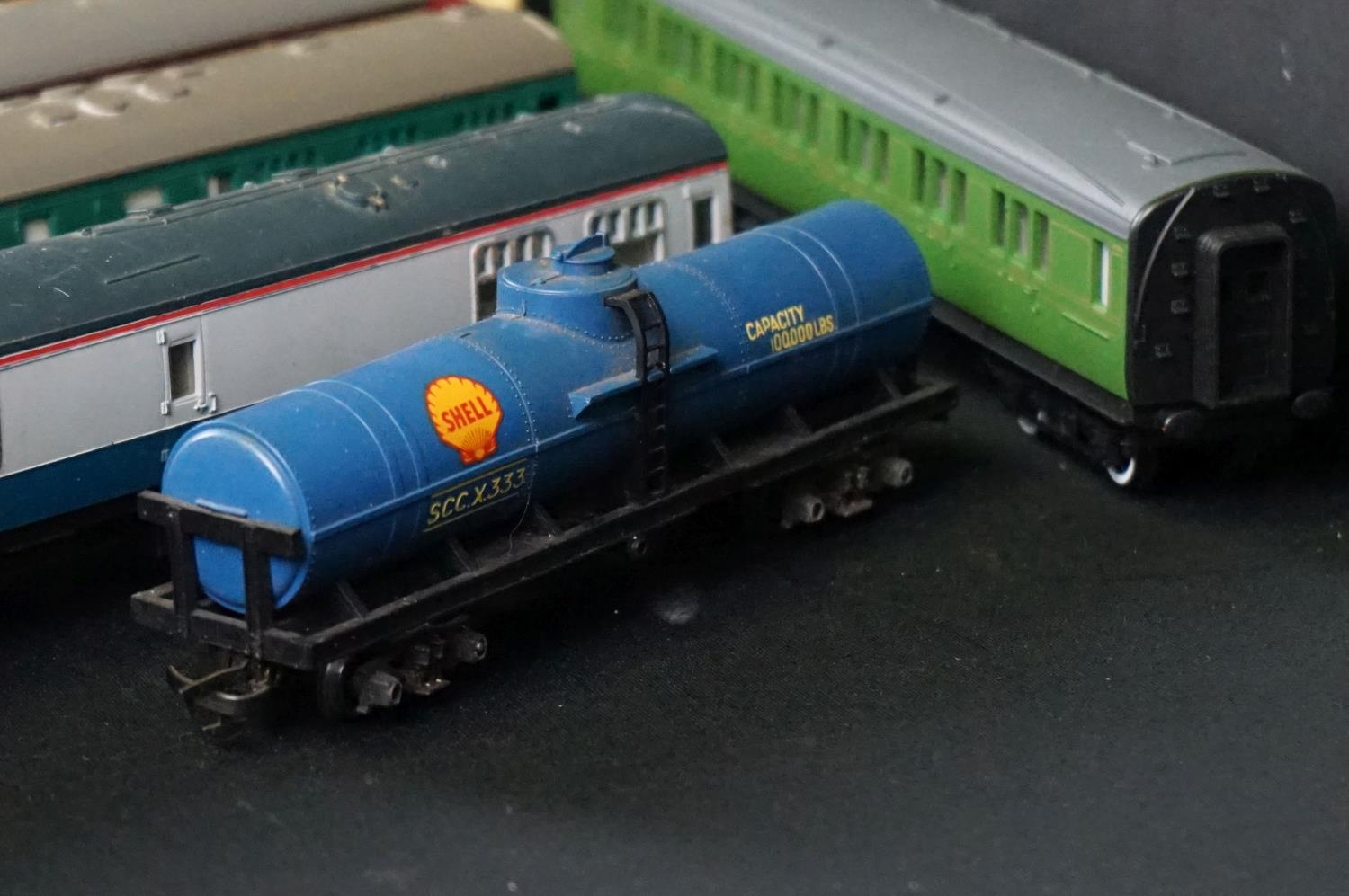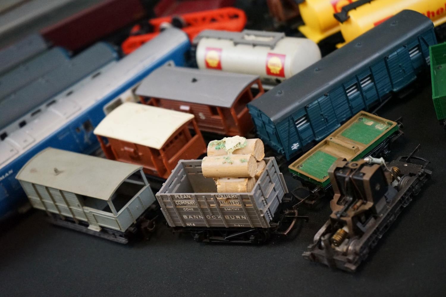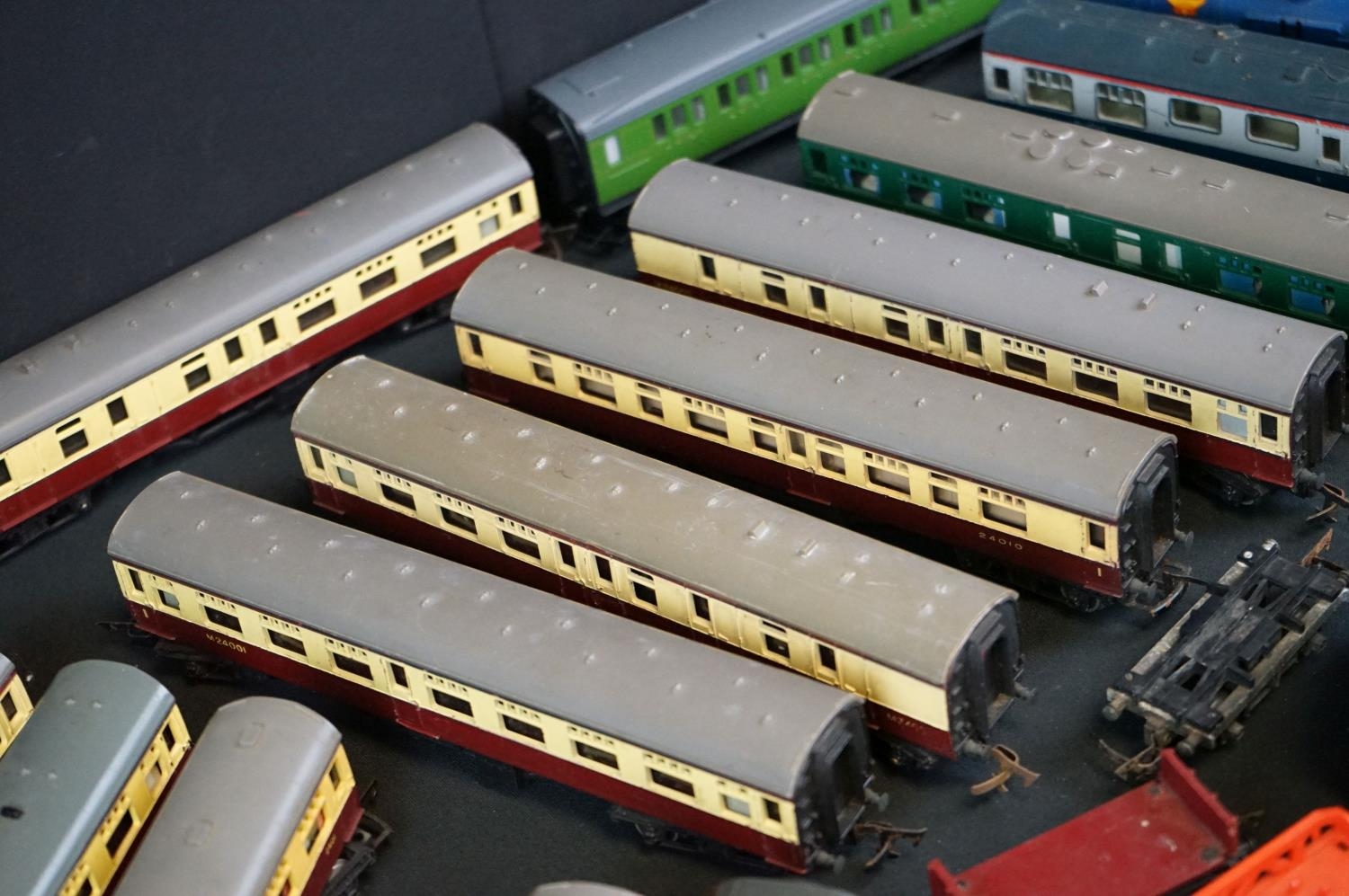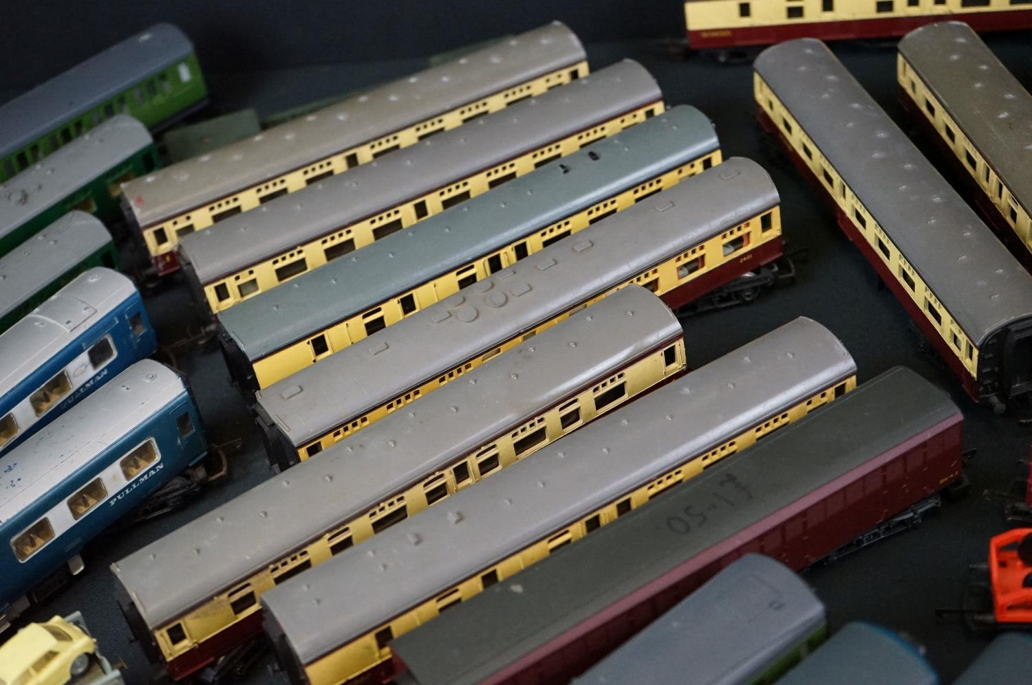 47 OO gauge items of rolling stock to include 26 coaches, 3 x car transporters and 18 x wagons/tankers/vans, featuring Hornby, Triang, Wrenn