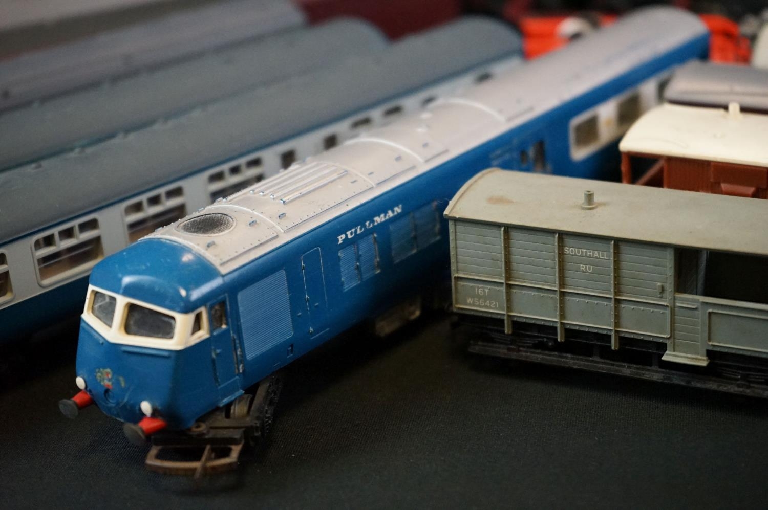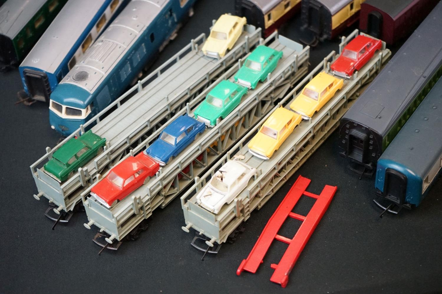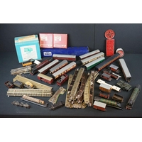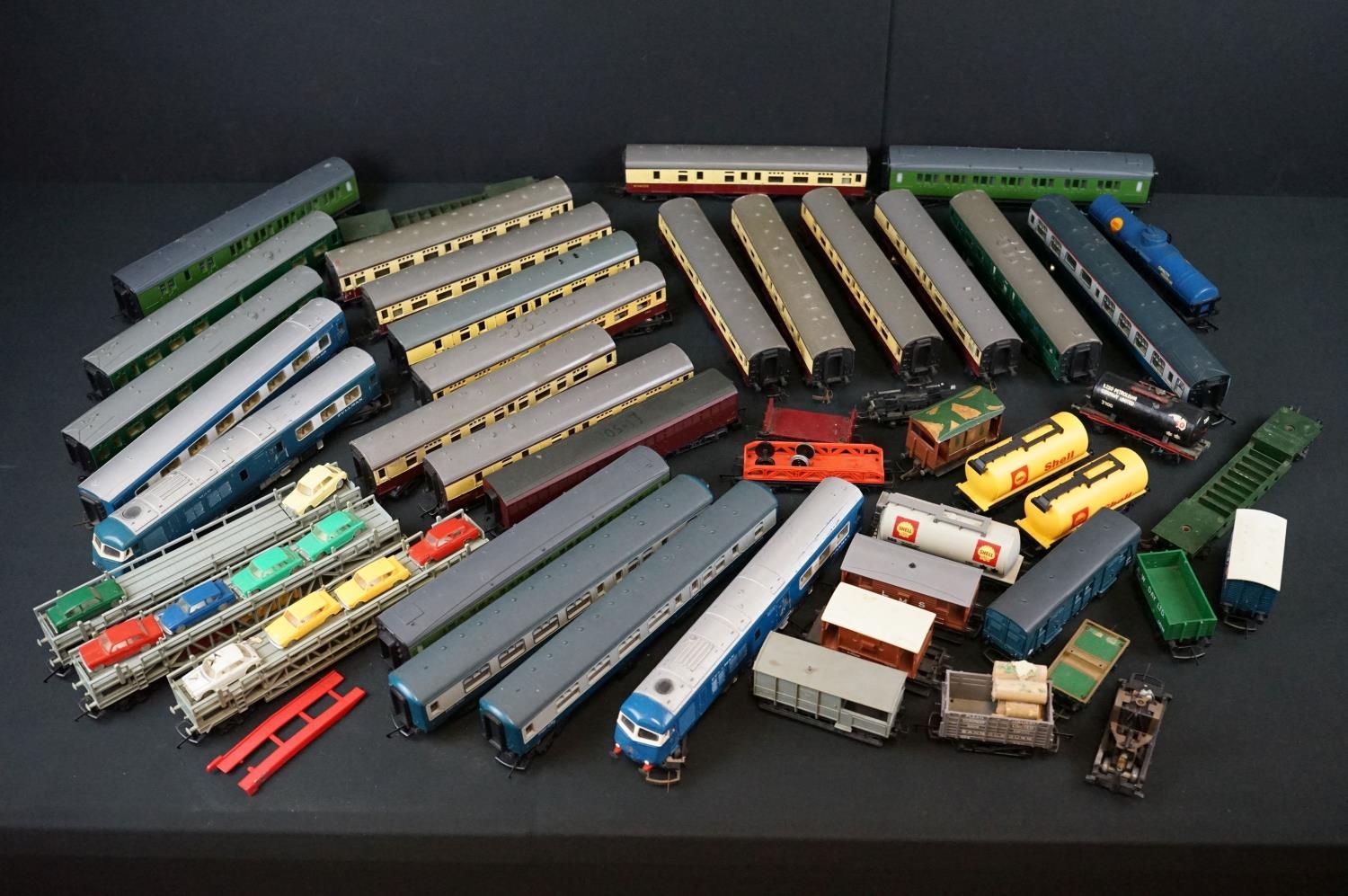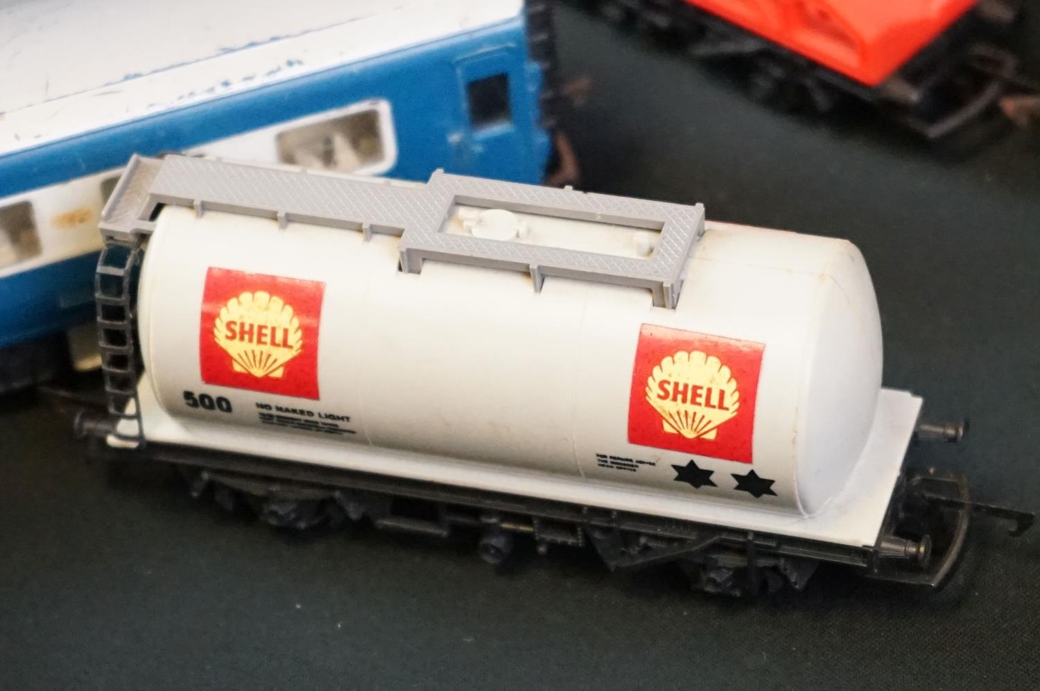 47 OO gauge items of rolling stock to include 26 coaches, 3 x car transporters and 18 x wagons/tankers/vans, featuring Hornby, Triang, Wrenn