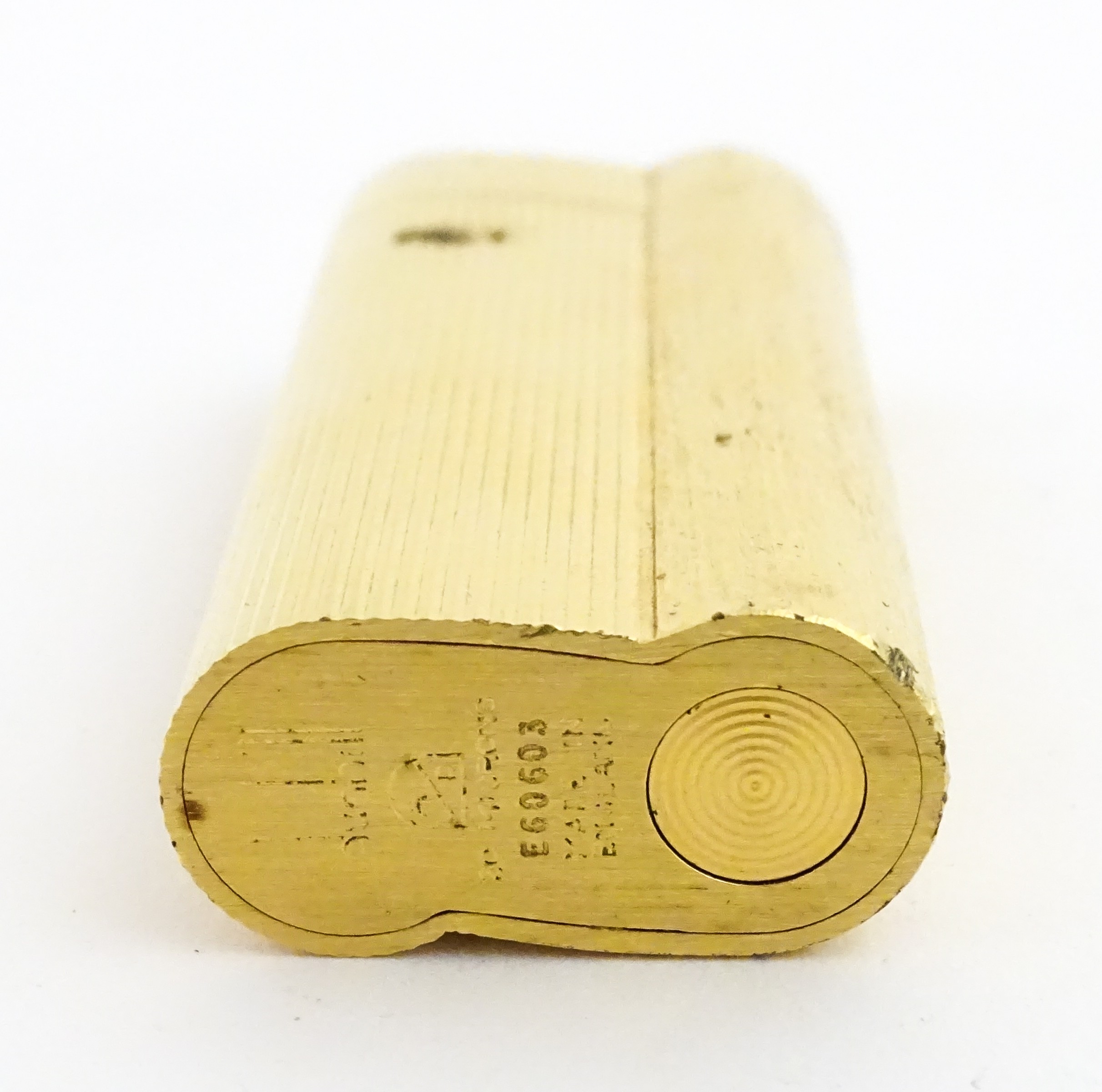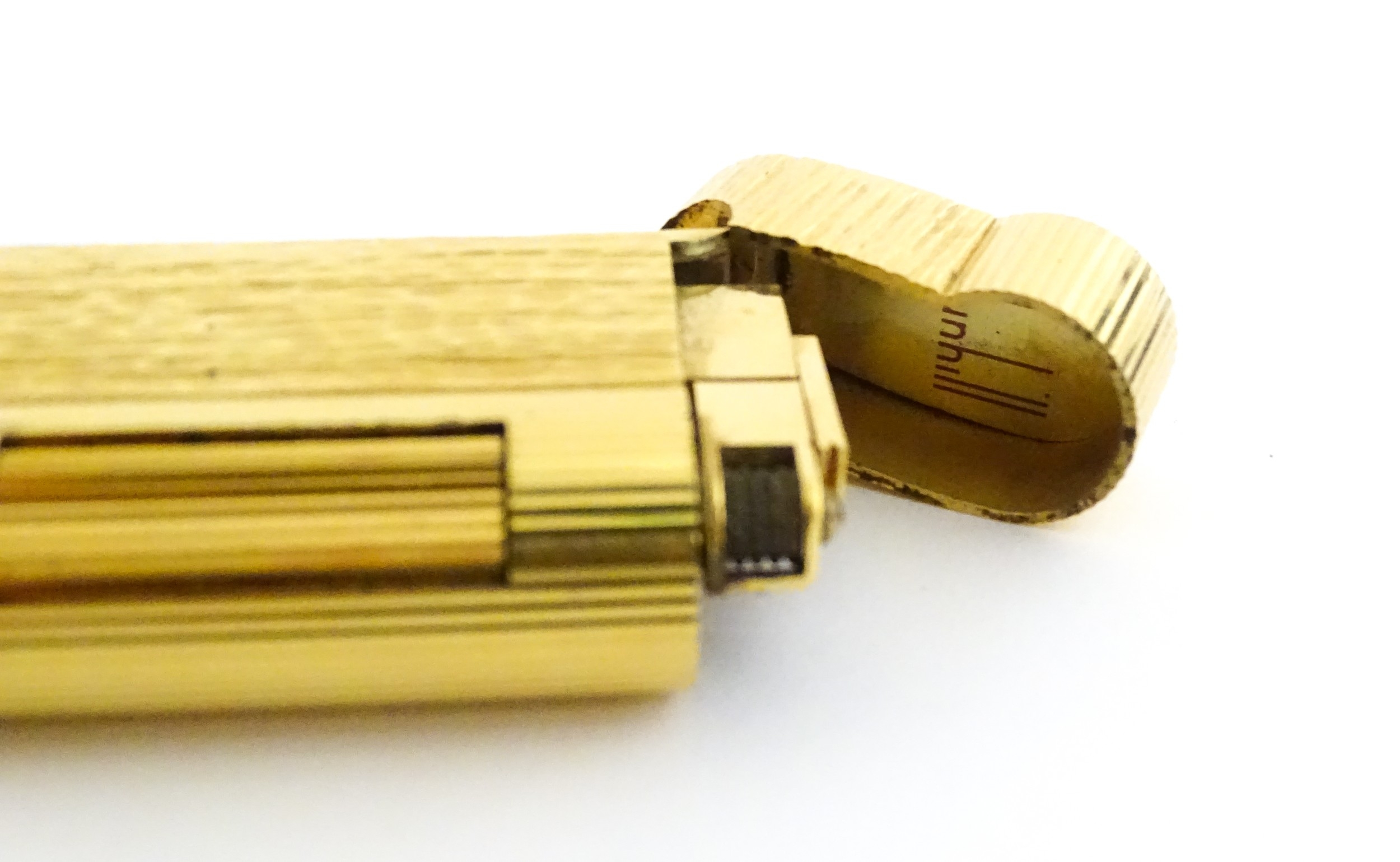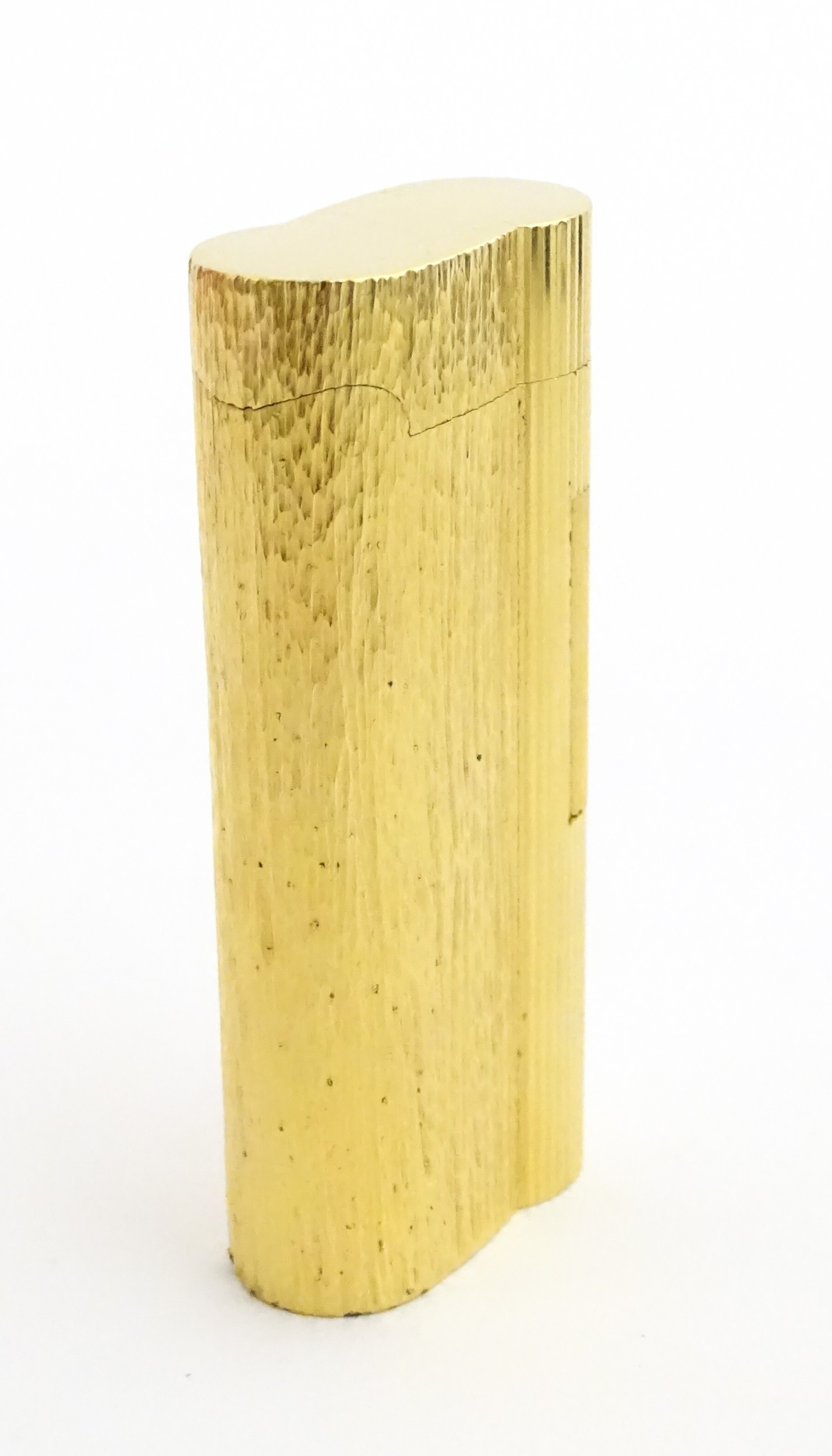 A Dunhill S-type pocket lighter with linear and hammered decoration. The base stamped with serial number E60603. Approx 2 5/8" long