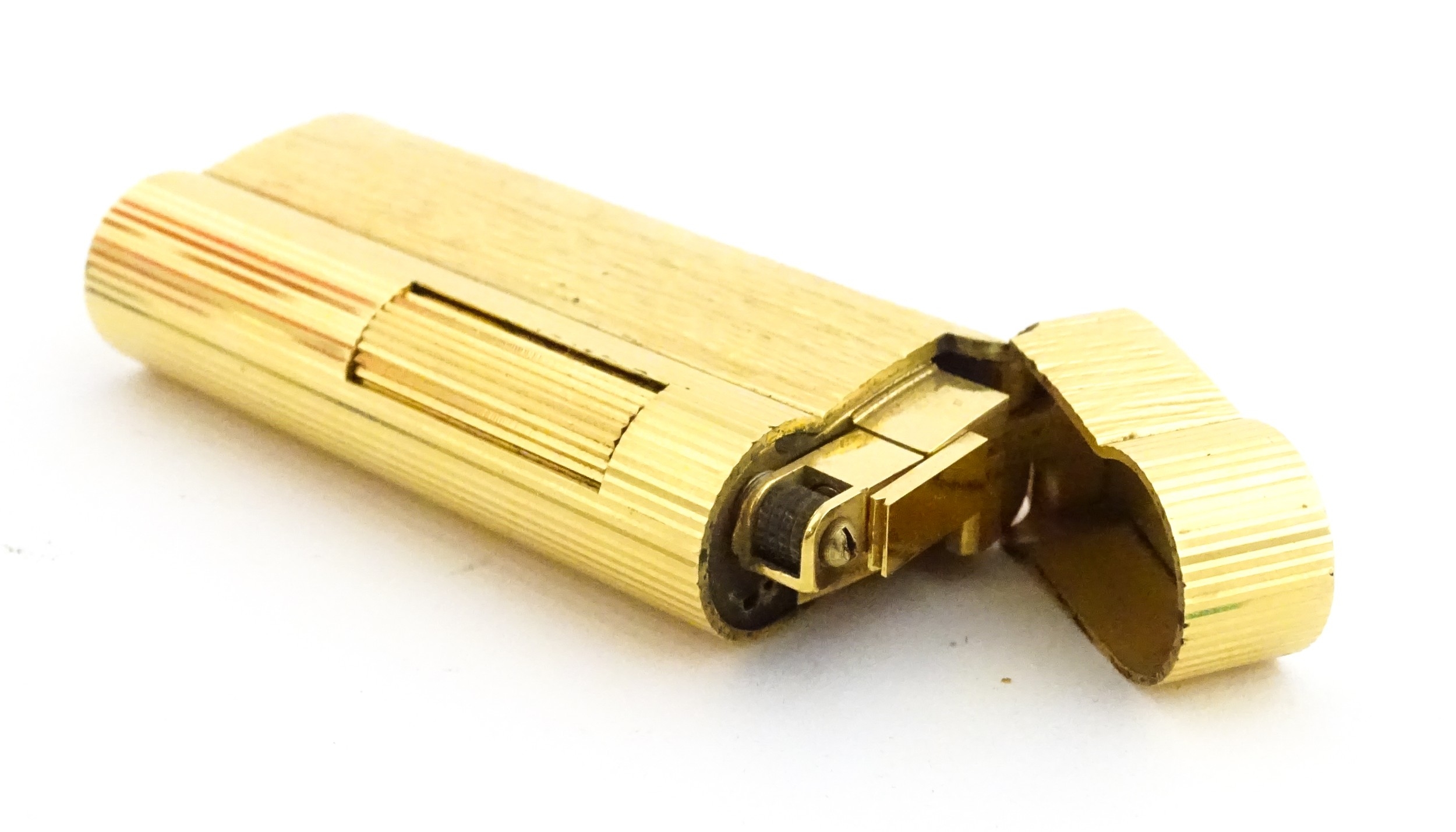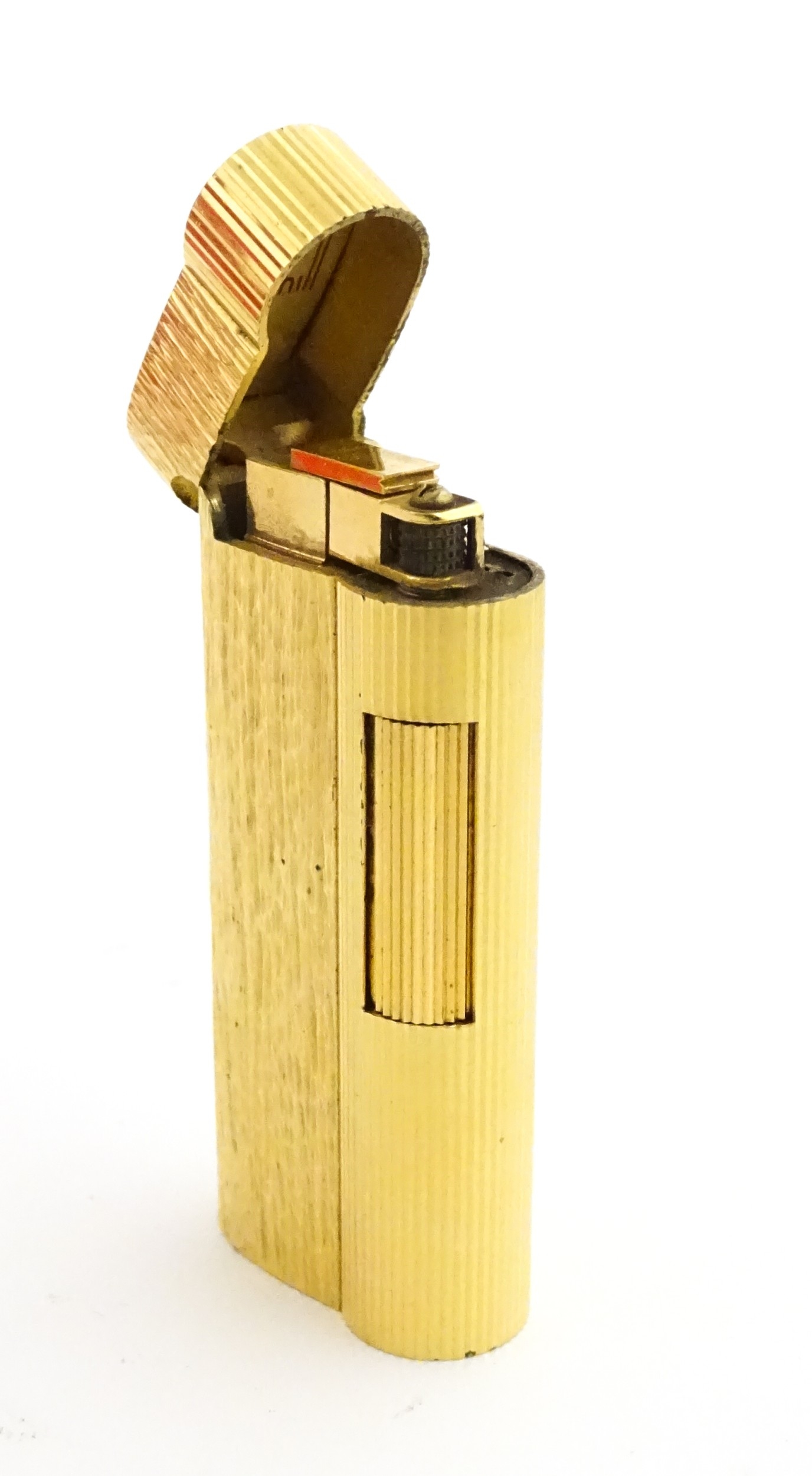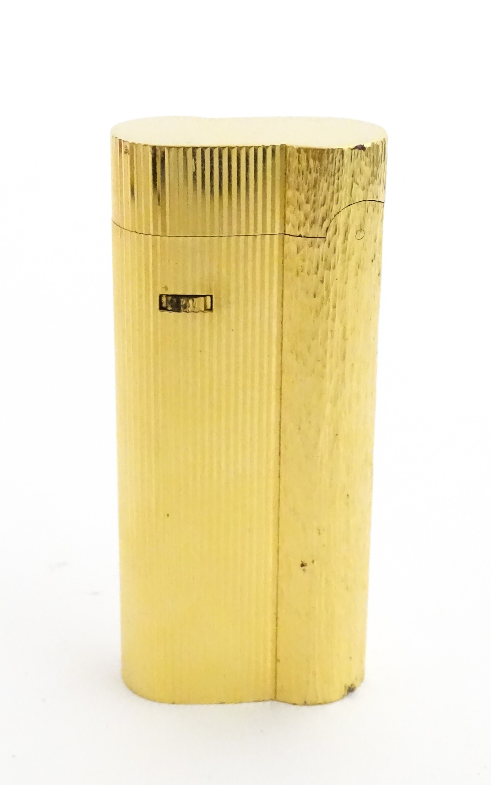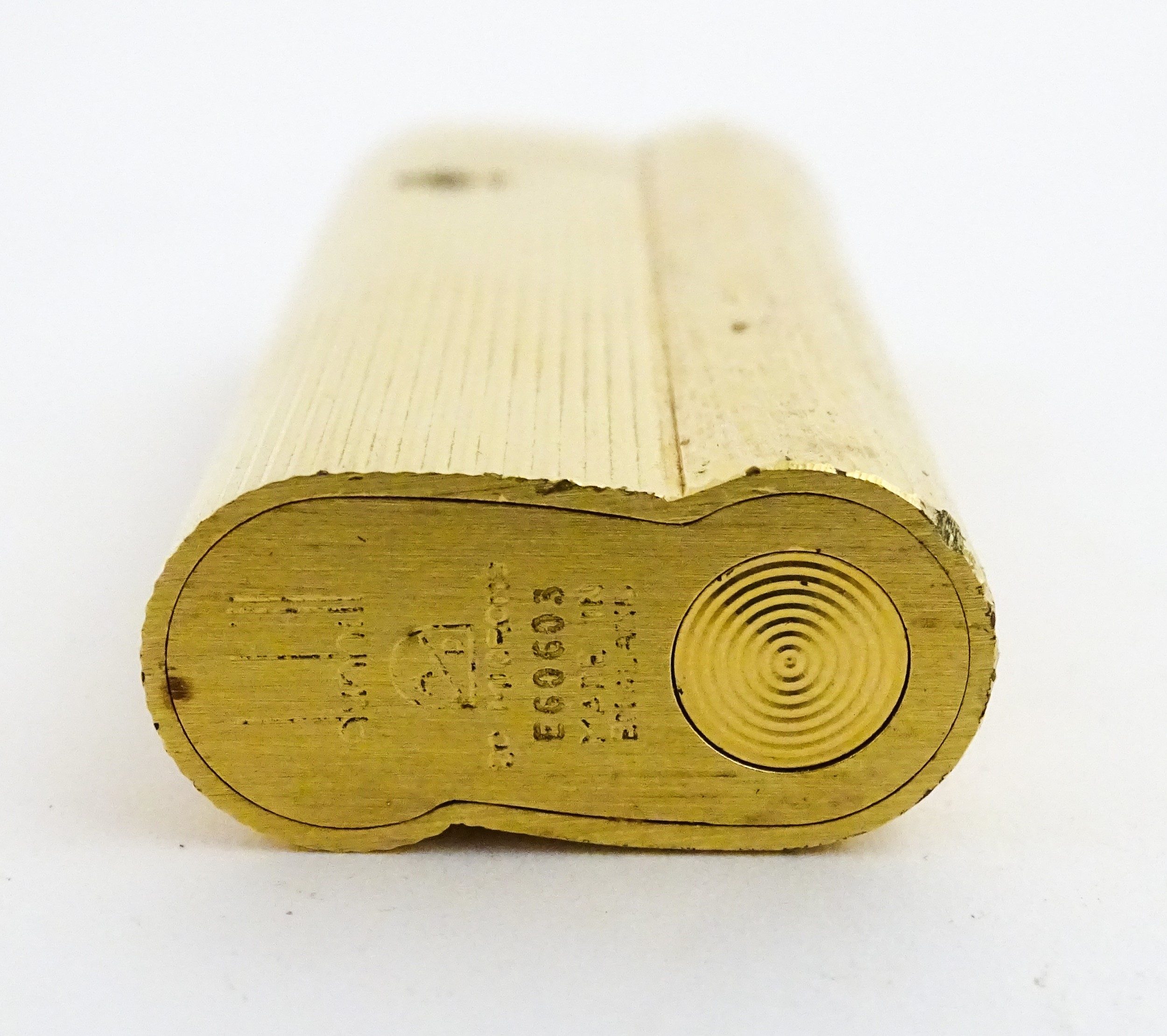A Dunhill S-type pocket lighter with linear and hammered decoration. The base stamped with serial number E60603. Approx 2 5/8" long