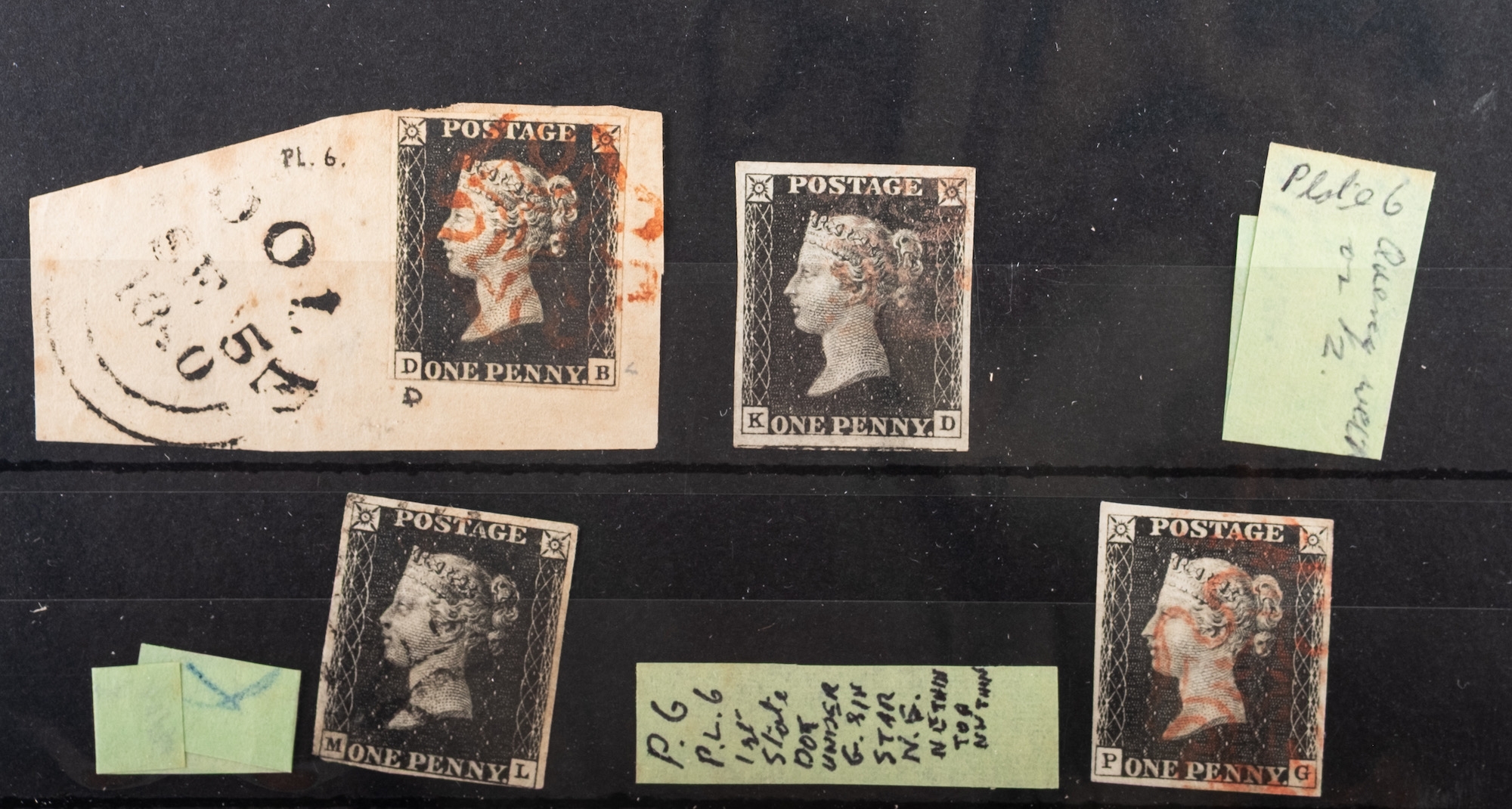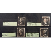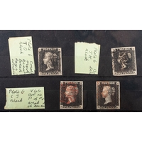 Great Britain. 1840 1d Blacks x 4 (one on piece) stated by vendor plates 6, including two with four margins.