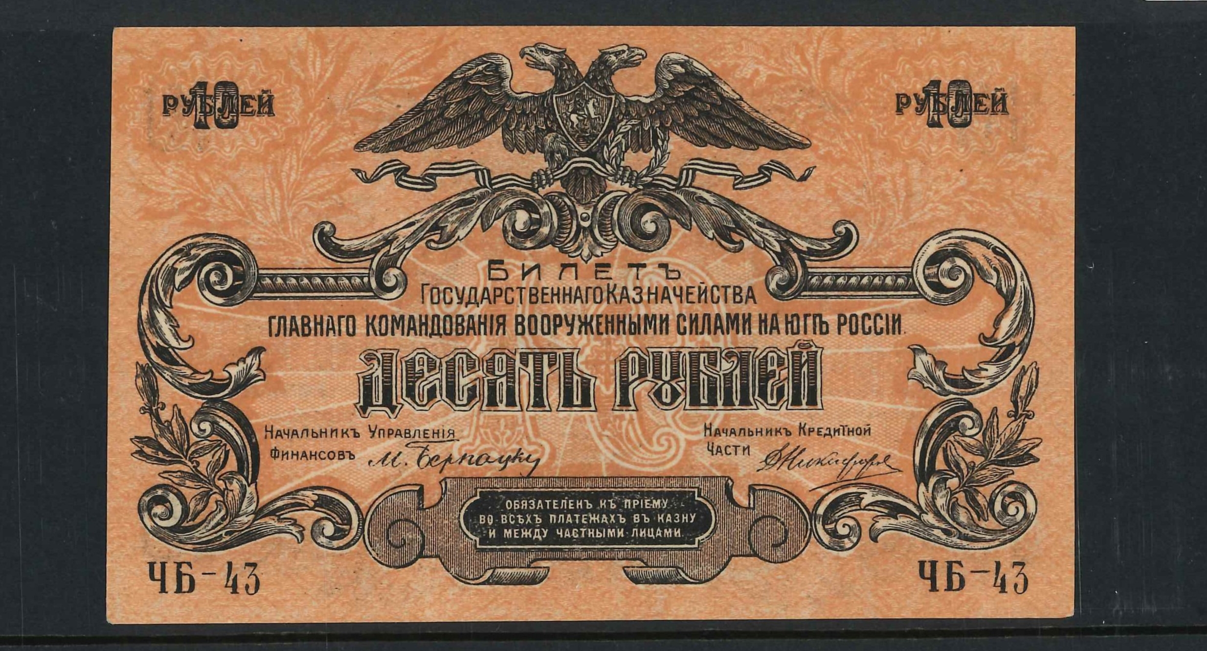 Banknotes; Russia; South Russia; 1919 10r about unc., Krause S421b.