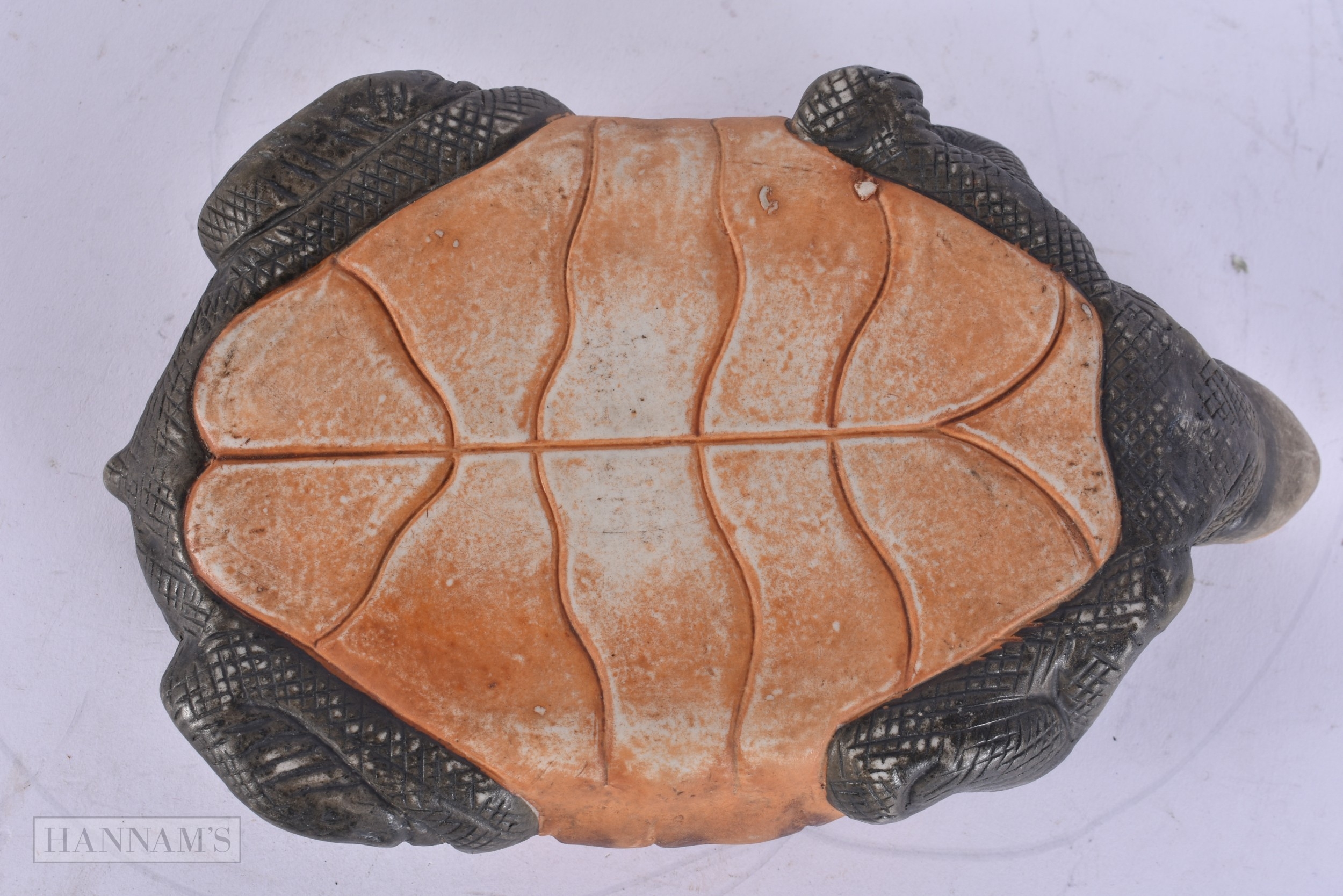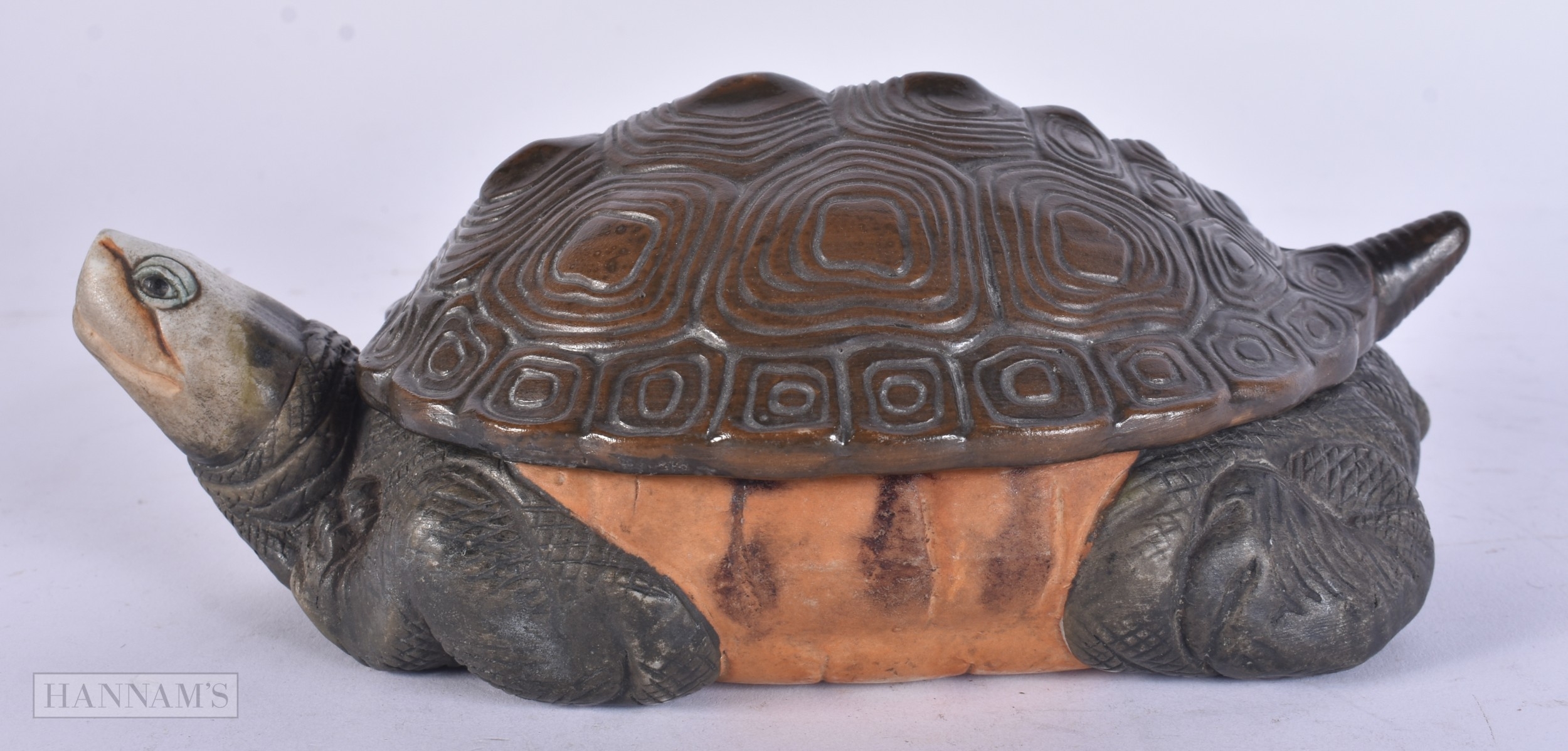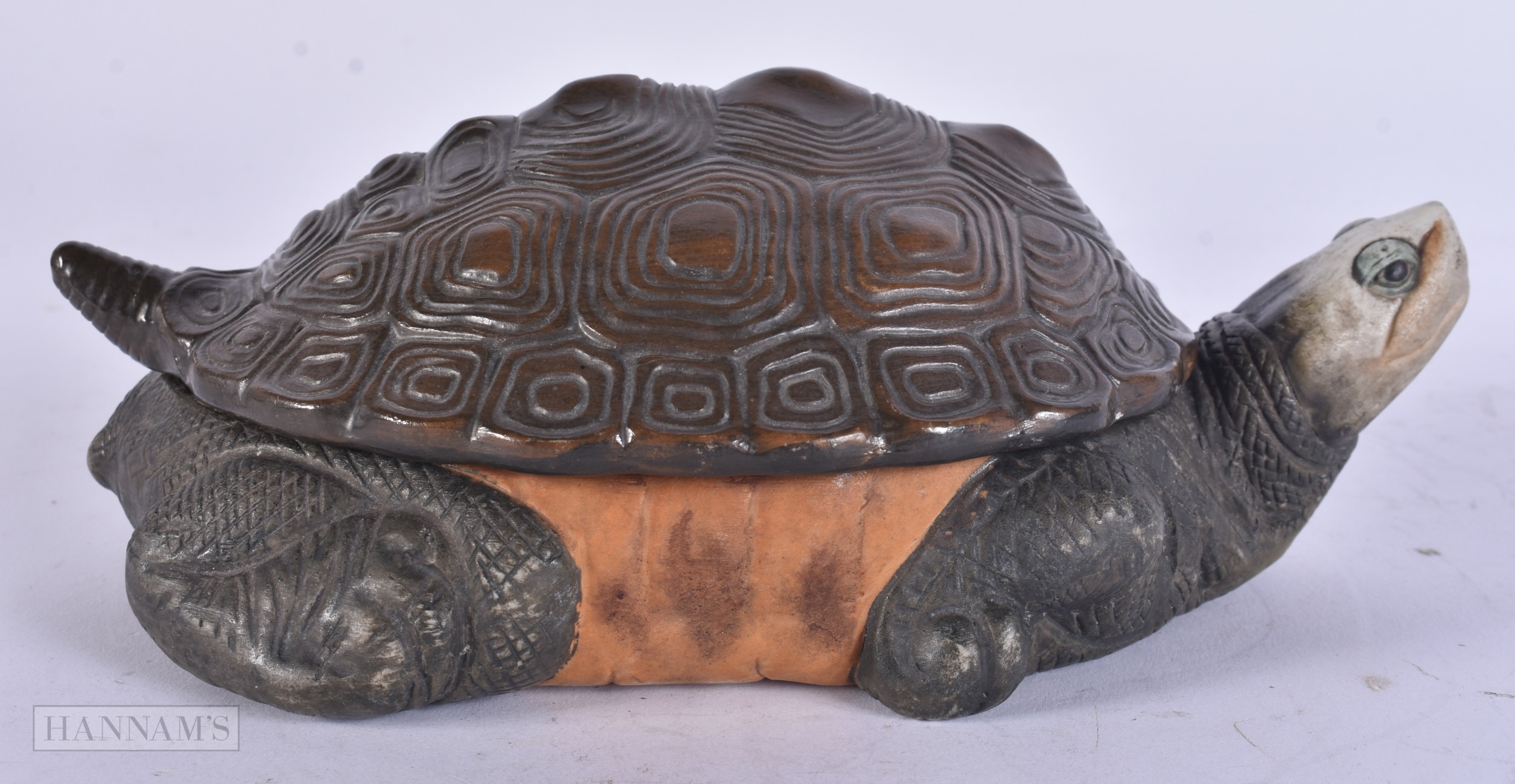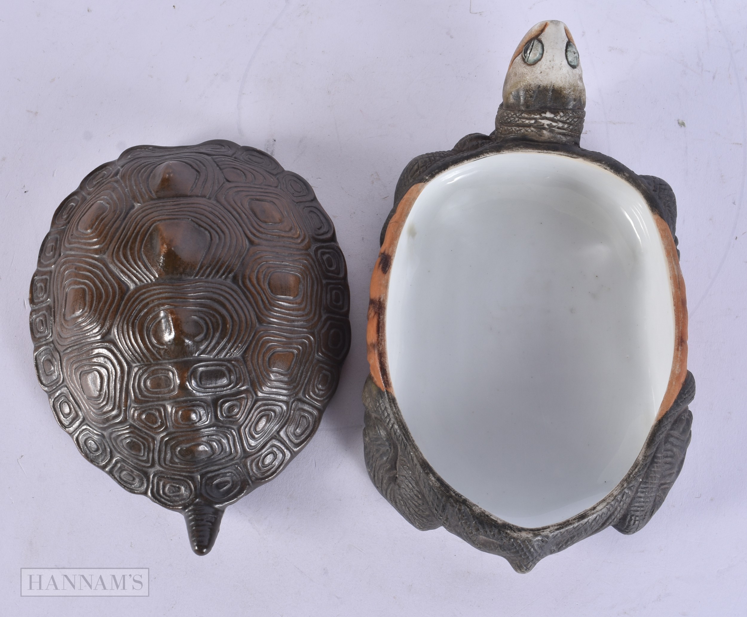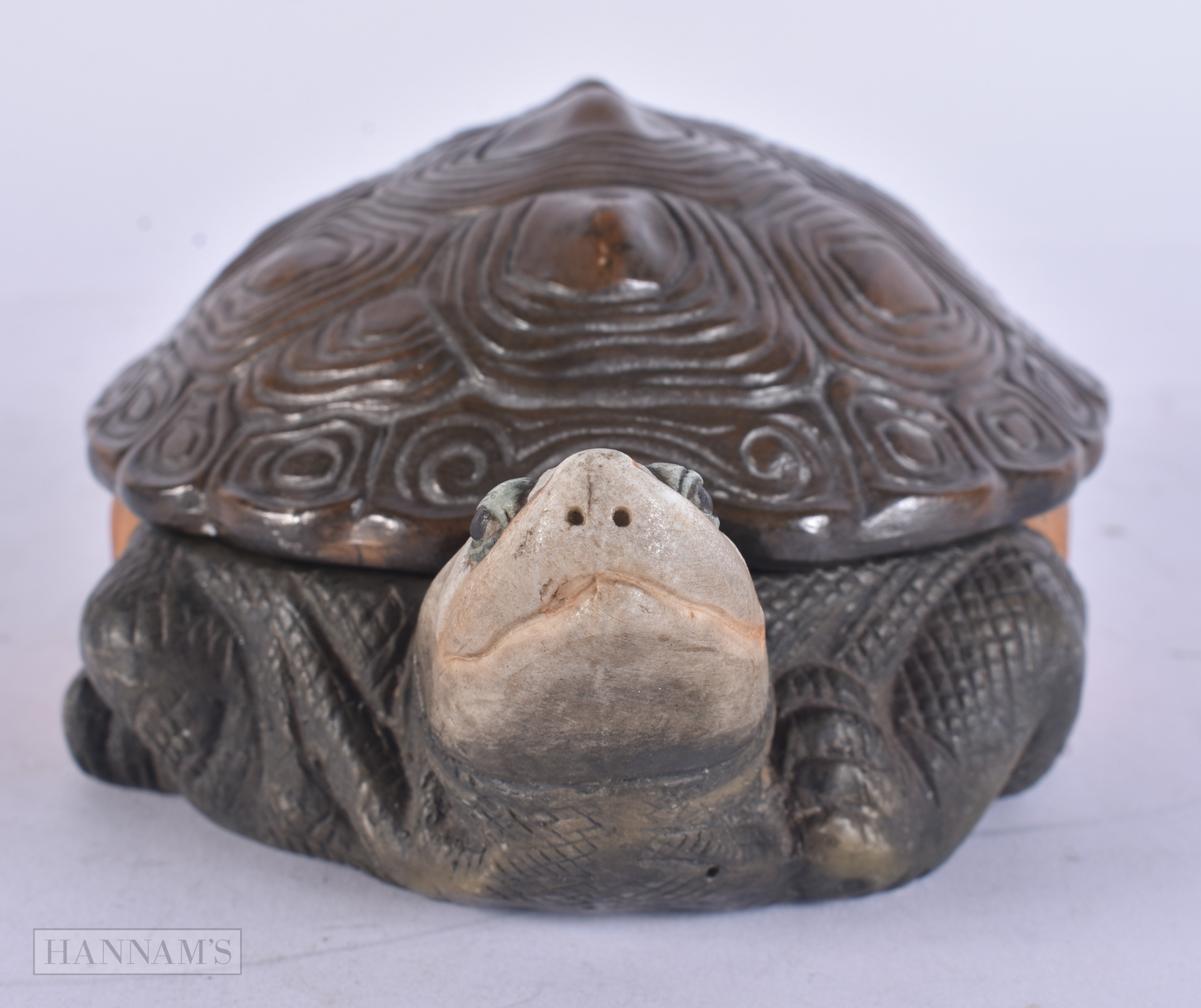 A RARE EARLY 20TH CENTURY EUROPEAN PORCELAIN TORTOISE BOX AND COVER. 21 cm wide.