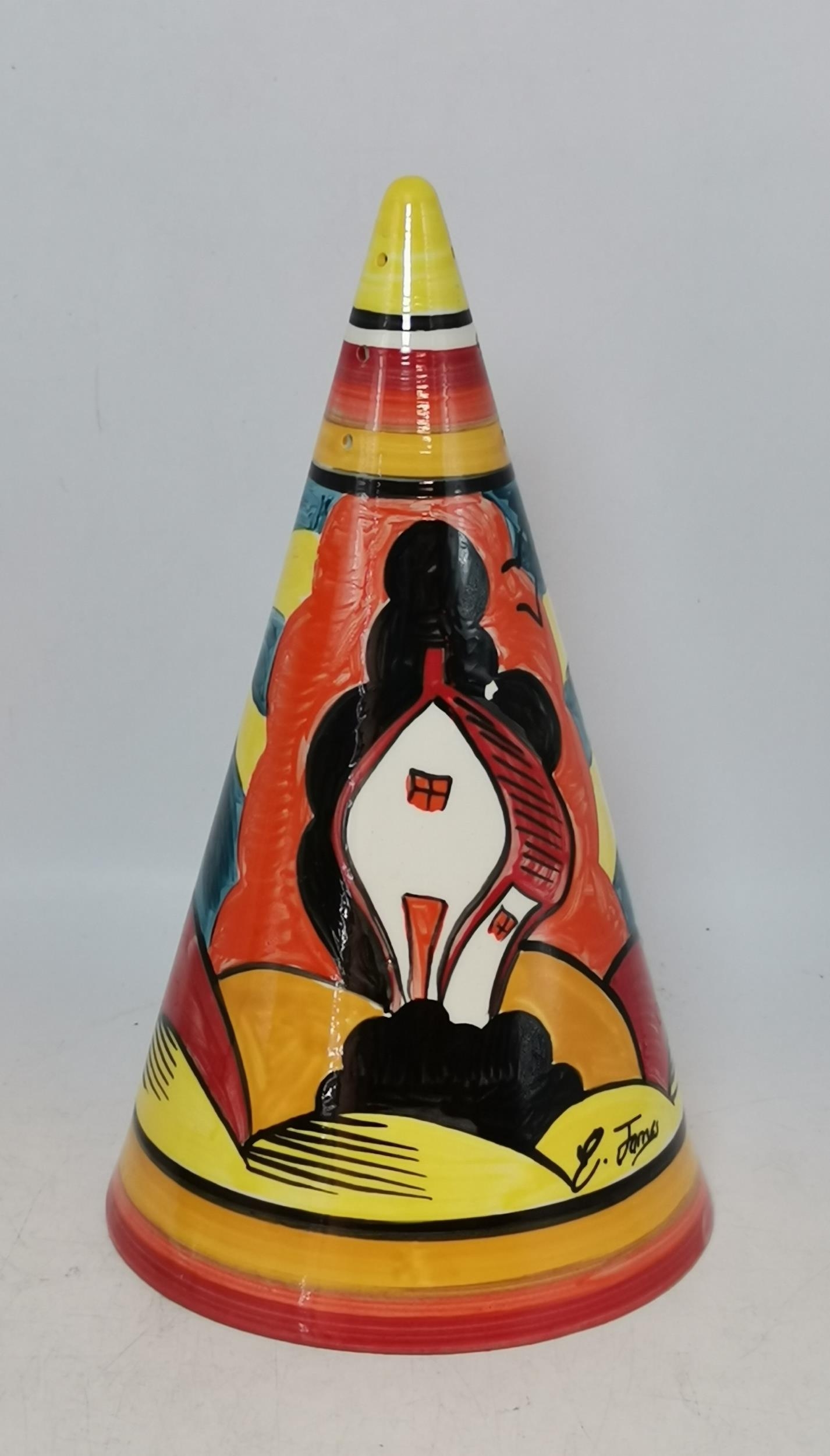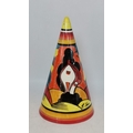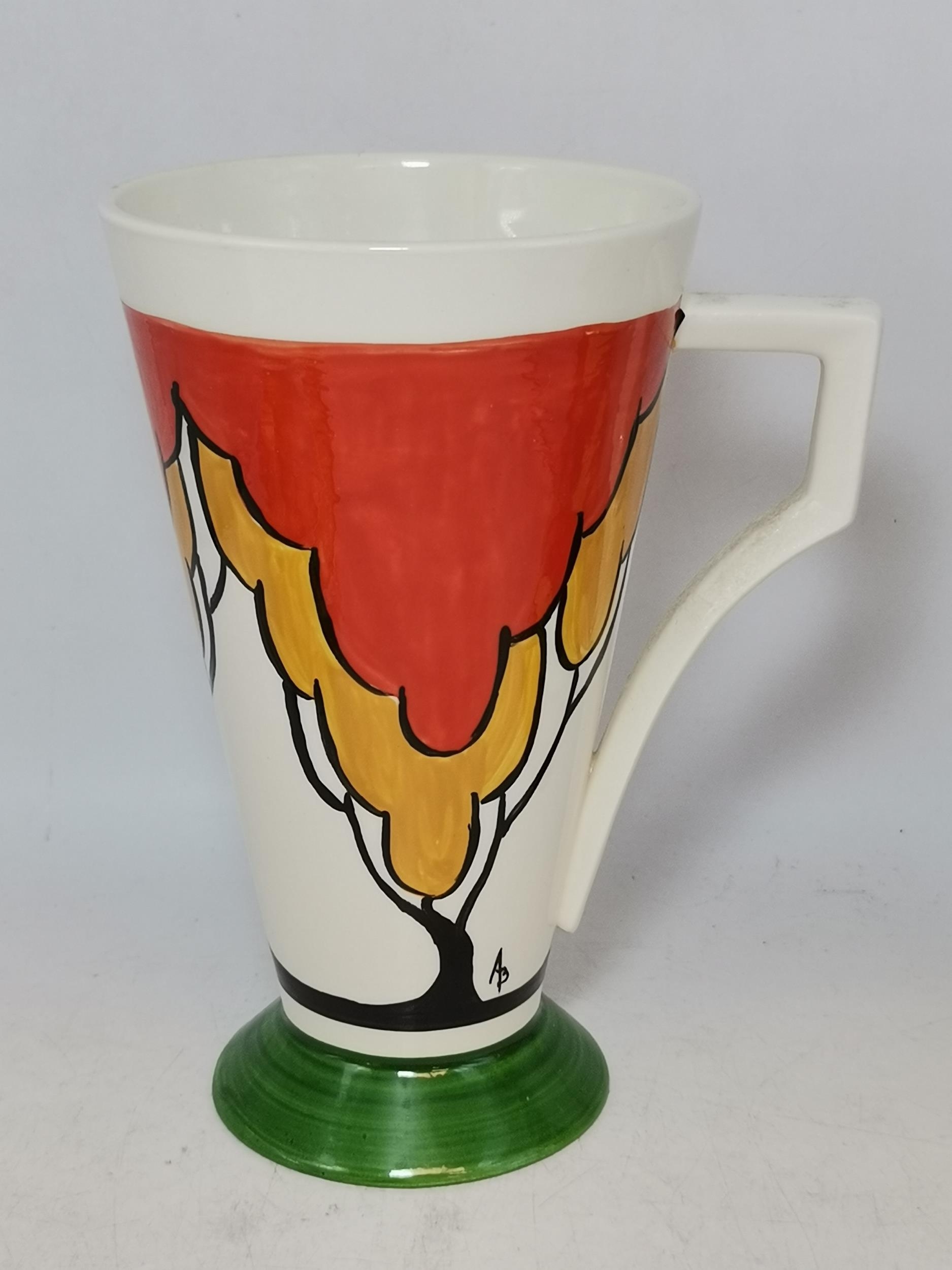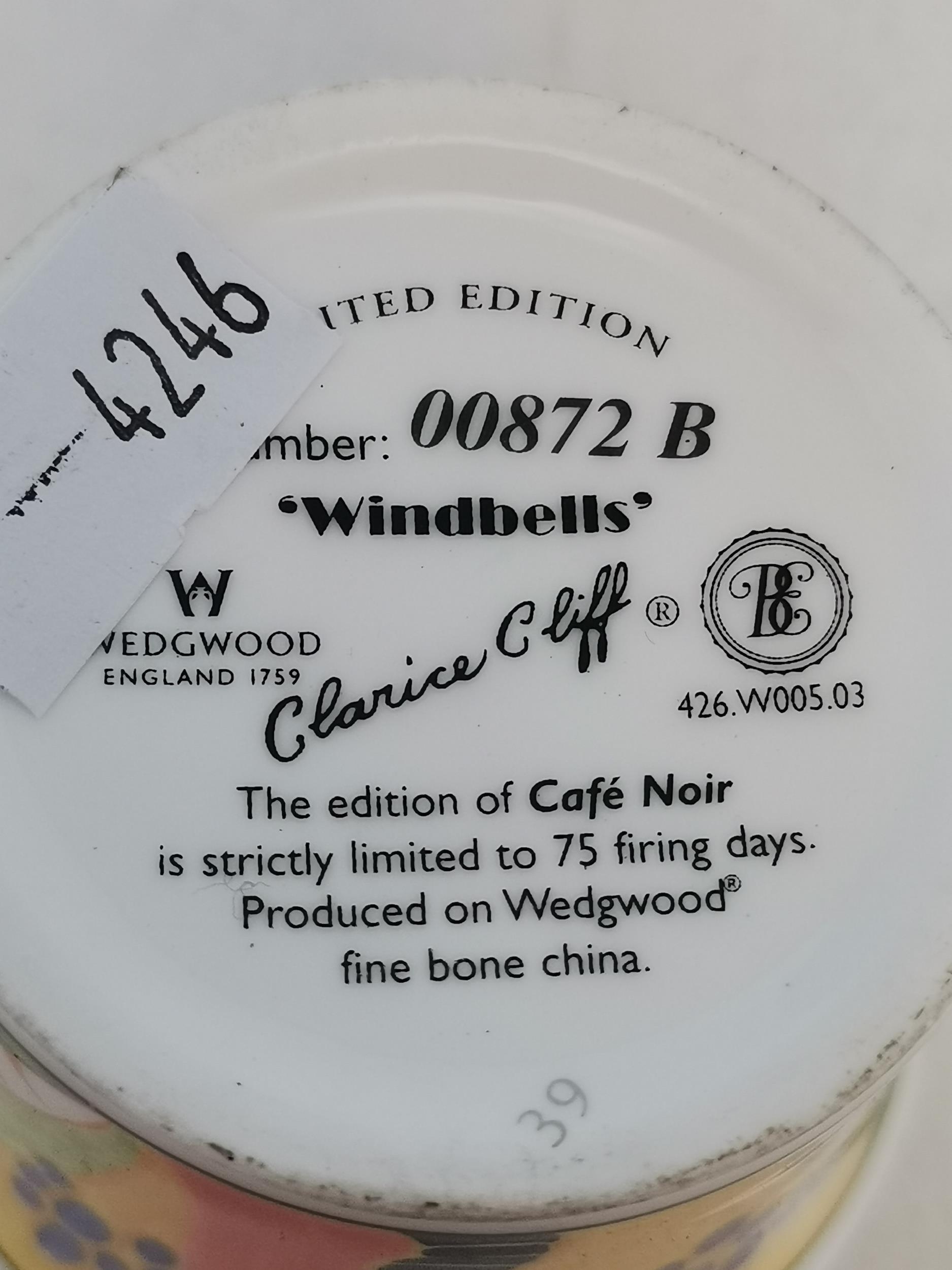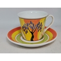 Three Clarice Cliff items - coffee cup and saucer Windbells' patter, Sugar Sifter and Cup