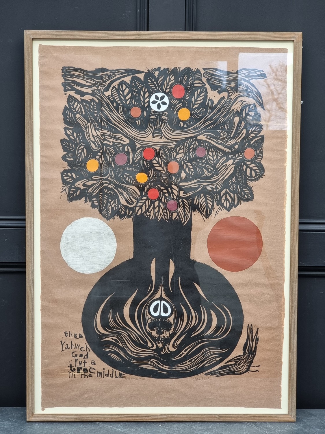 Meinrad Craighead, ‘The Apple Tree’, monogrammed and titled, inscribed 'Stanbrook', further inscribed on label verso, linocut with hand colouring, 94 x 63.5cm.