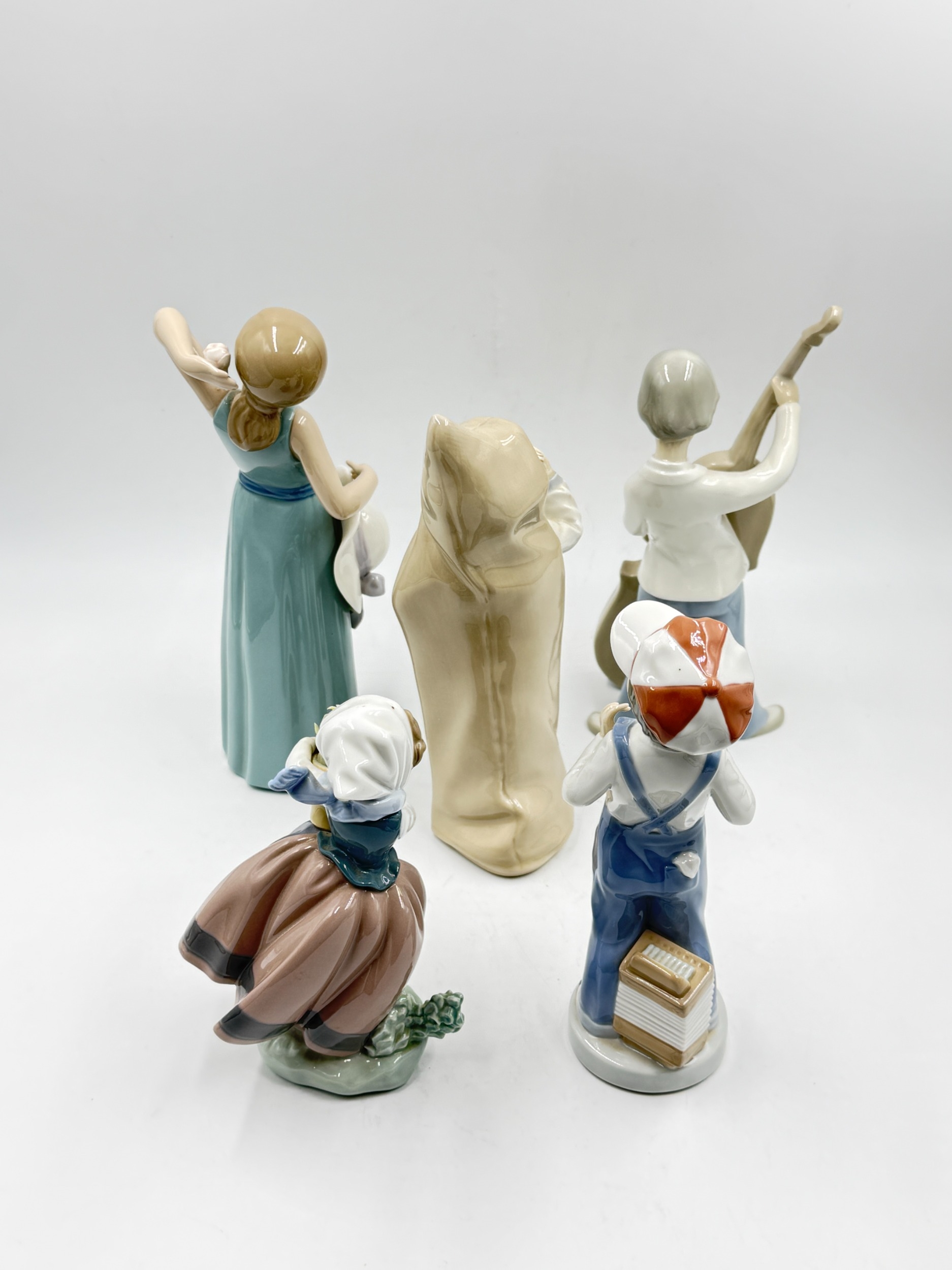 Five Lladro porcelain figurines, Boy From Madrid #4898, Spring Is Here #5223, Prissy #5010, Boy With Double Base #4615 and Boy With Snails #4896 - largest approx. 25cm high