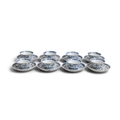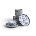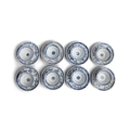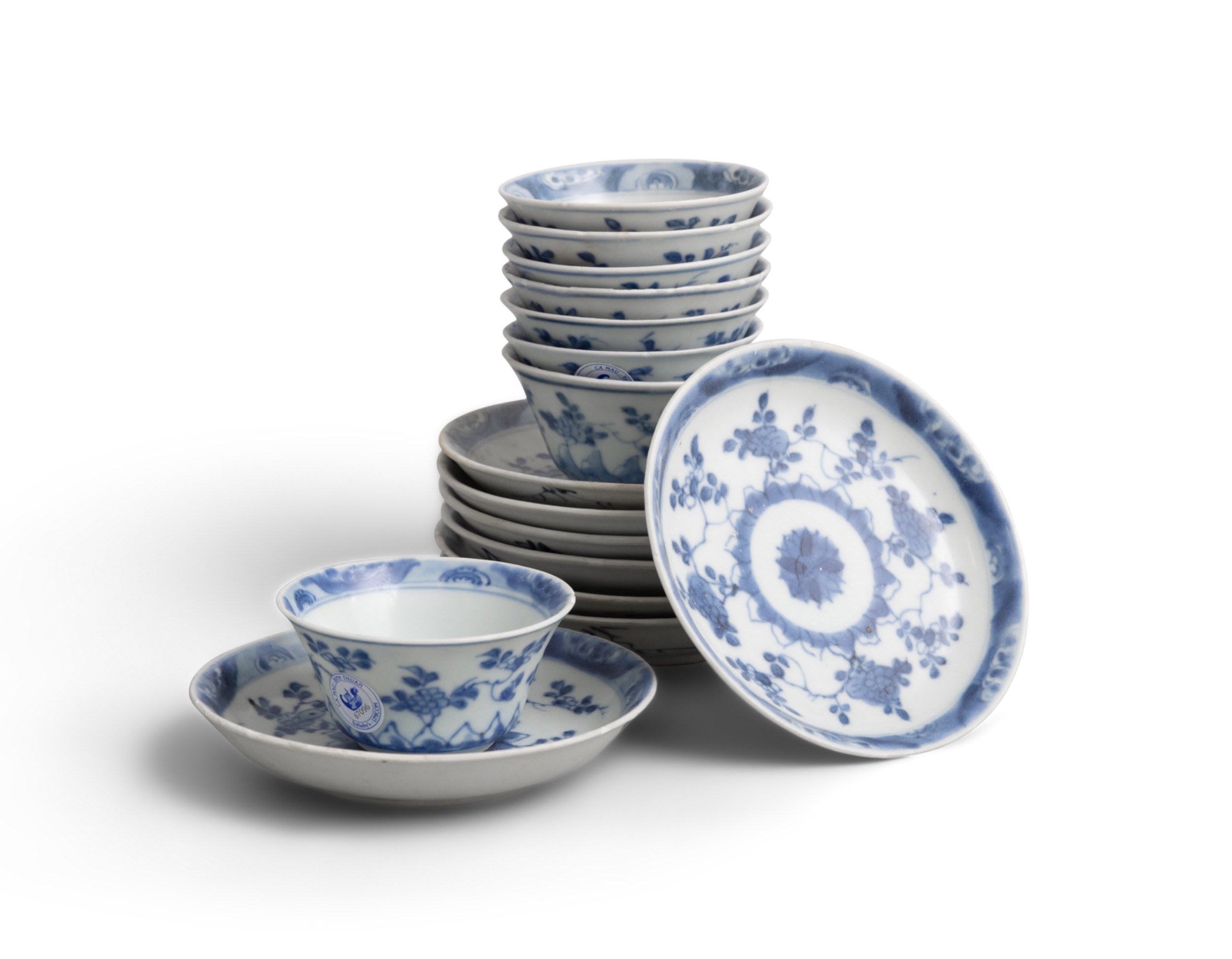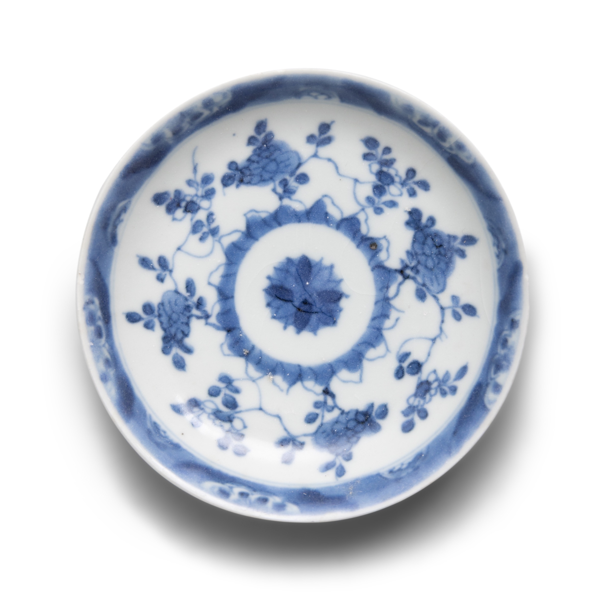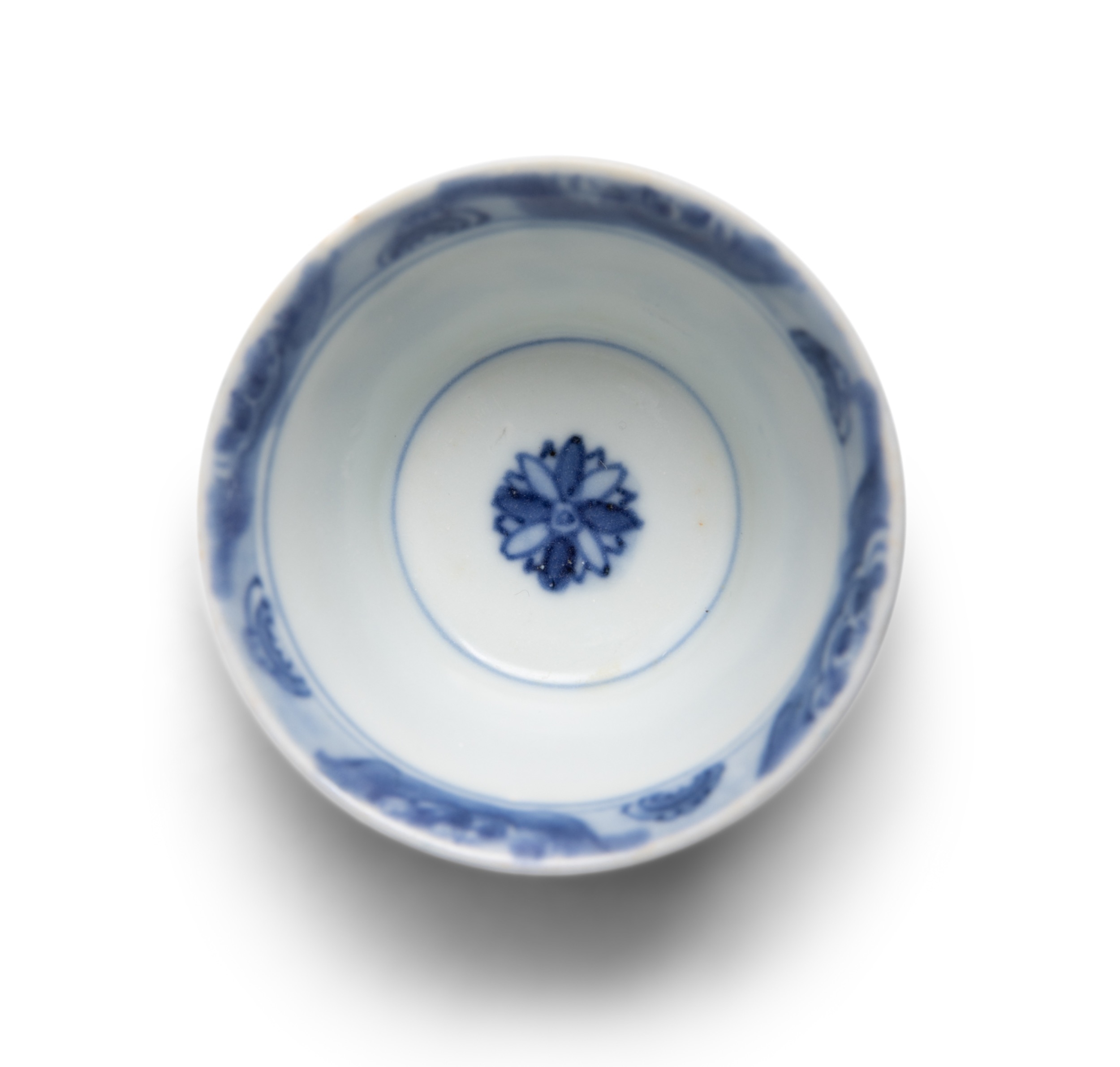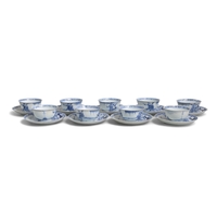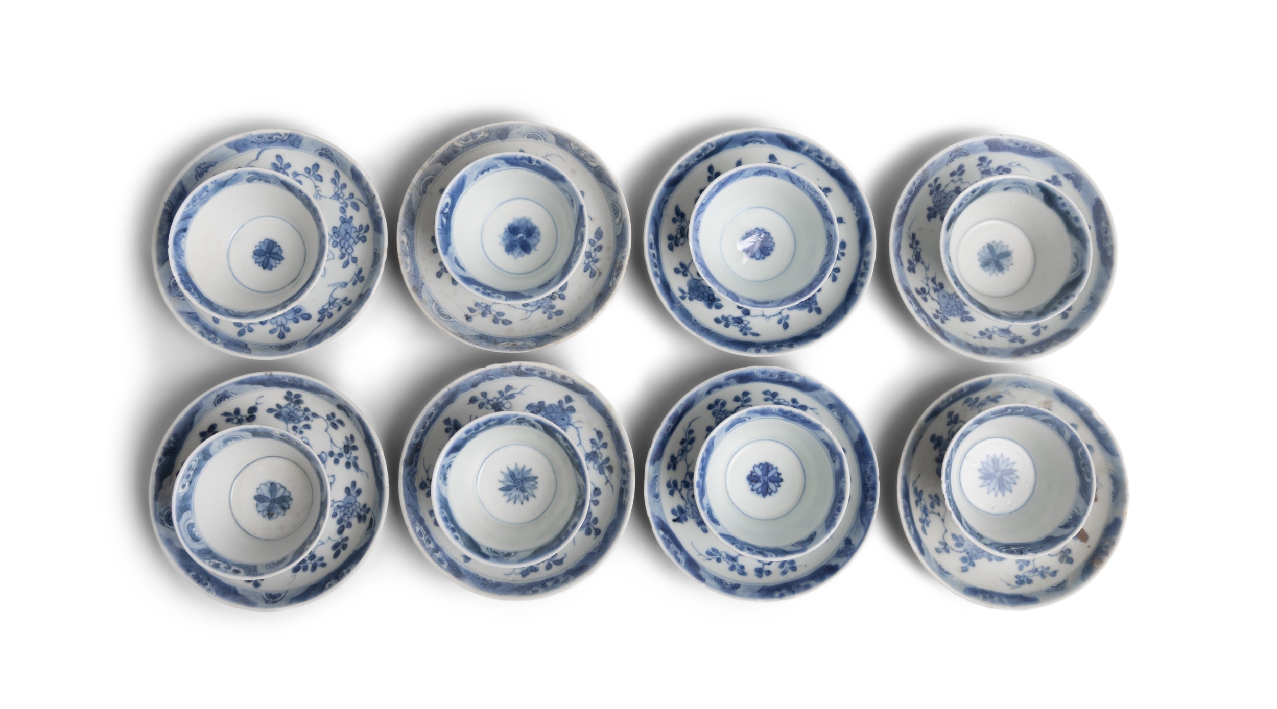 EIGHT ‘RADIATING FLOWERS’ PATTERN BLUE AND WHITE TEABOWLS AND SAUCERS China, Yongzheng period, circa 1725 Cup.6.8cm Saucer.11cm Provenance: Made in Imperial China: 76,000 Pieces of Chinese Export Porcelain from the Ca Mau Shipwreck, Sotheby’s Amsterdam, January 2007