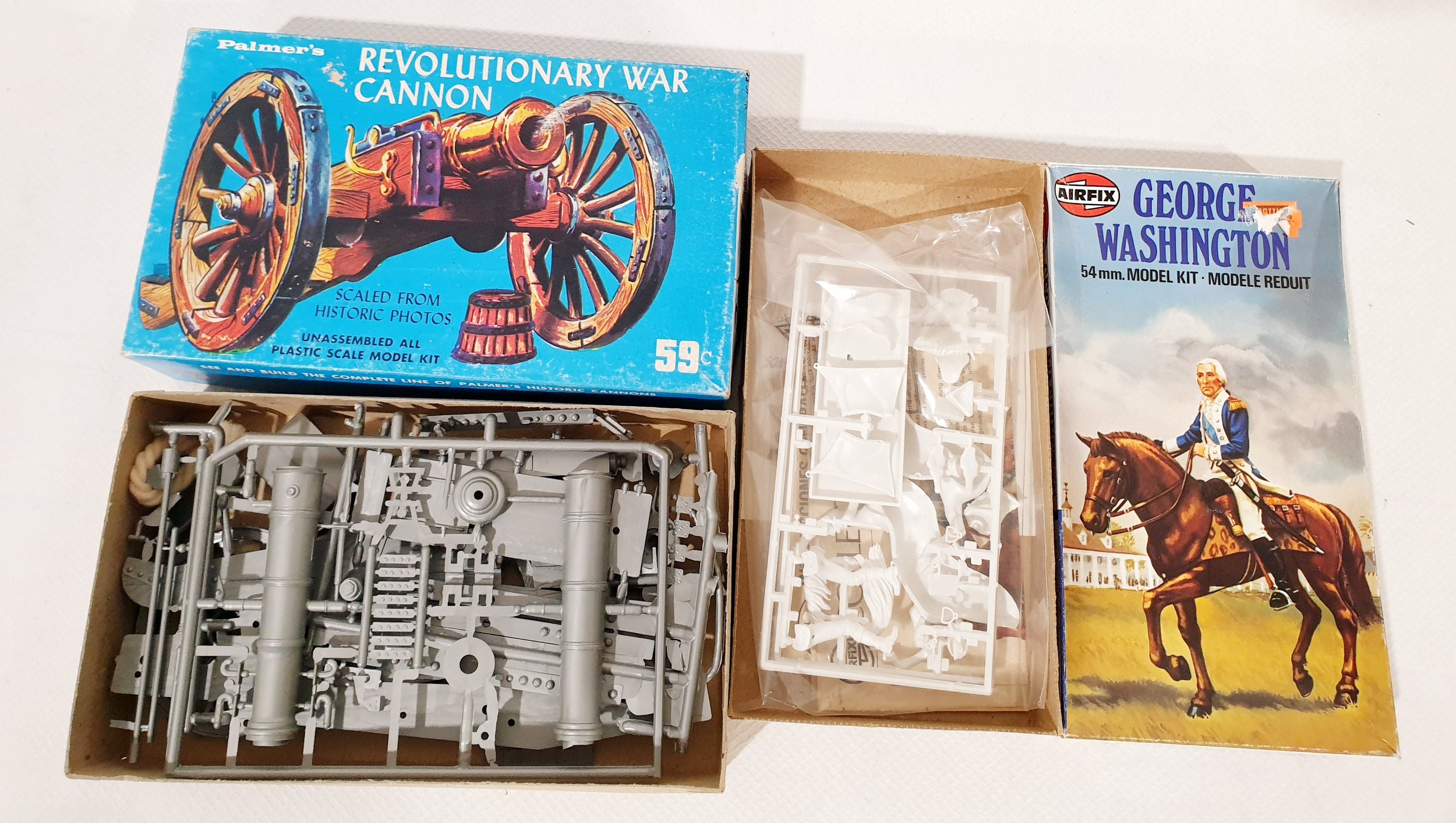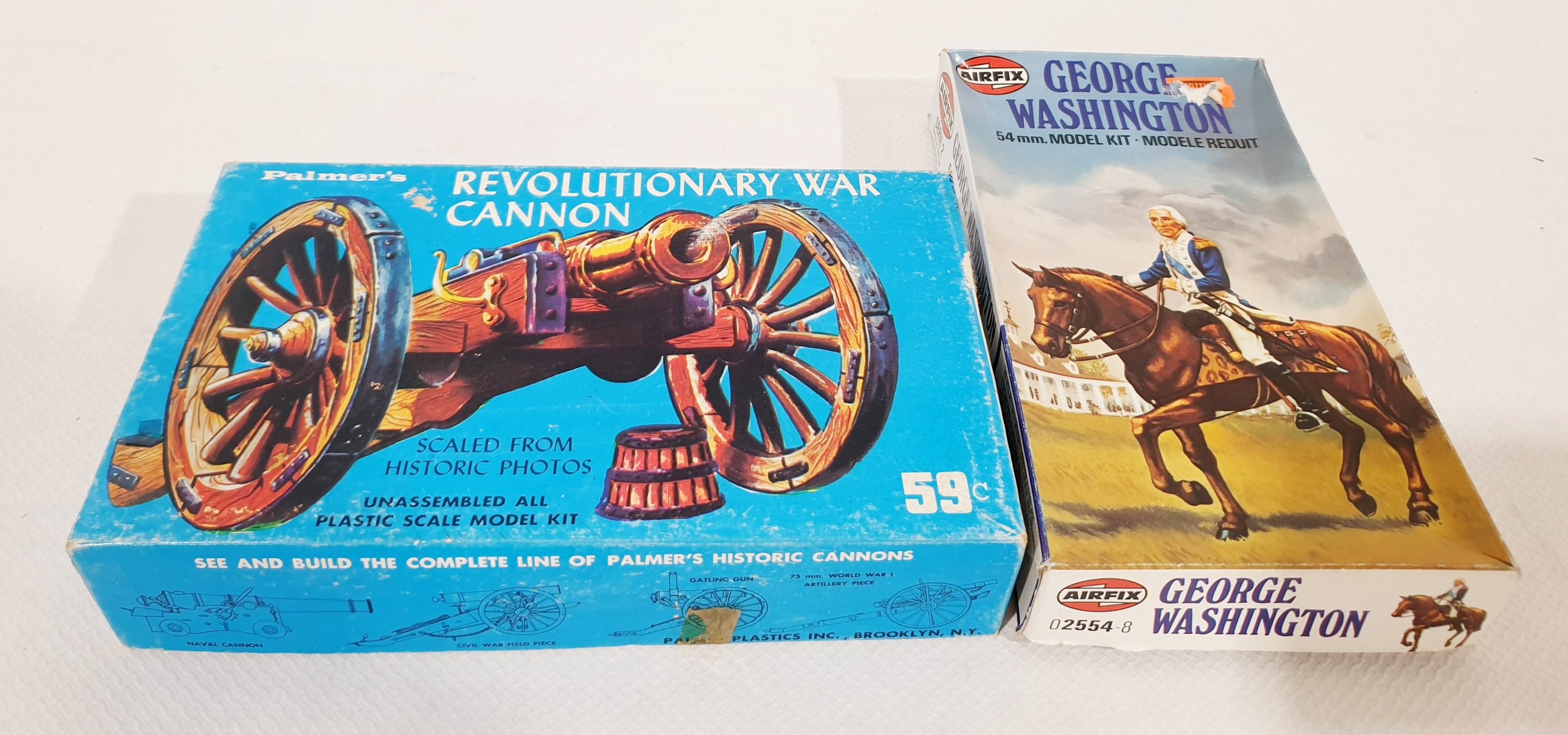 Airfix 54mm George Washington model kit and a Palmer's Revolutionary War cannon scale model kit.