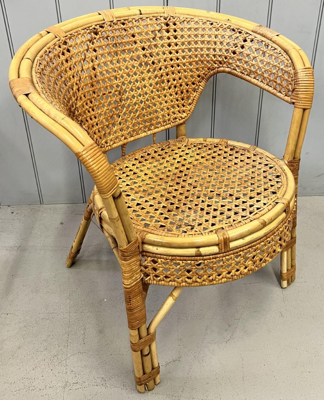 A vintage bamboo & cane chair. Dimensions(cm) H70(43 to seat), W64, D58.