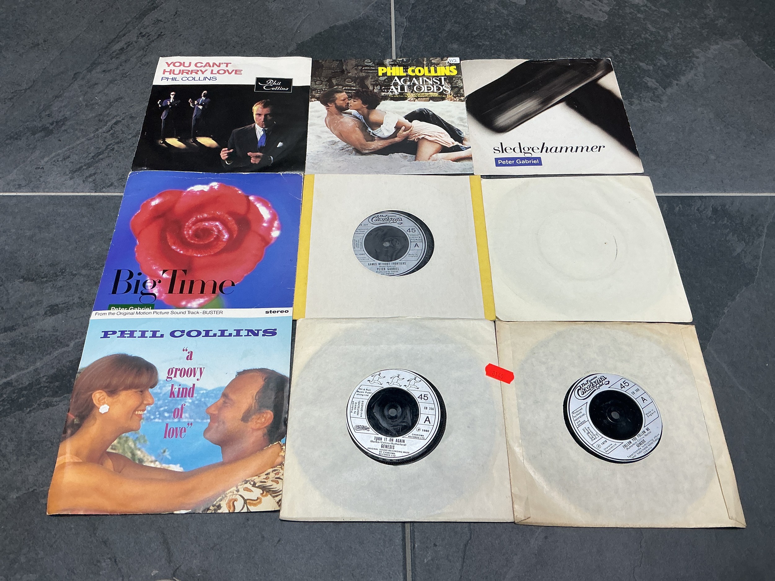 Nine Genesis & Related 7" Vinyl Singles - Includes Follow You Follow Me, Turn it On Again, Sledgehammer, Misunderstanding, And More. Pre-Owned