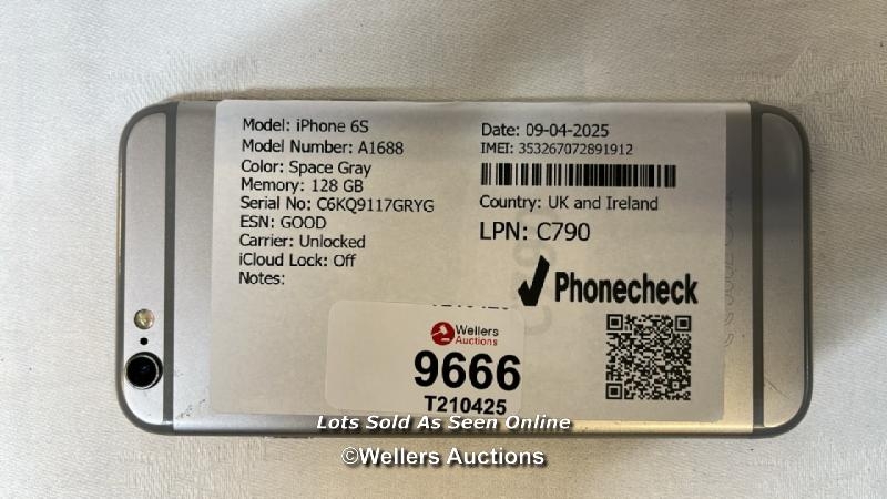 IPHONE 6S/ A1688/ SPACE GRAY/128GB/ IMEI-353267072891912 (I-CLOUD UNLOCKED)