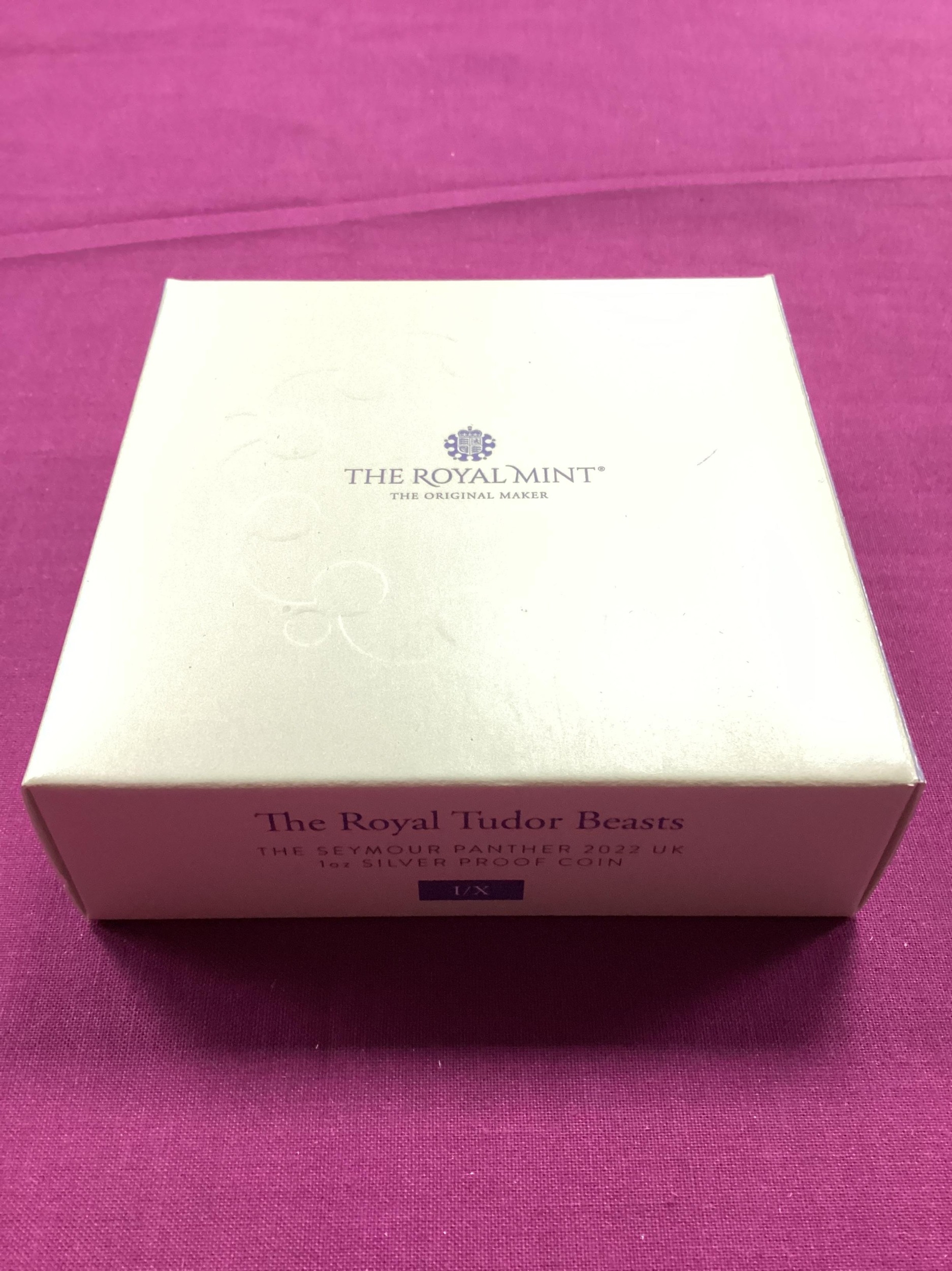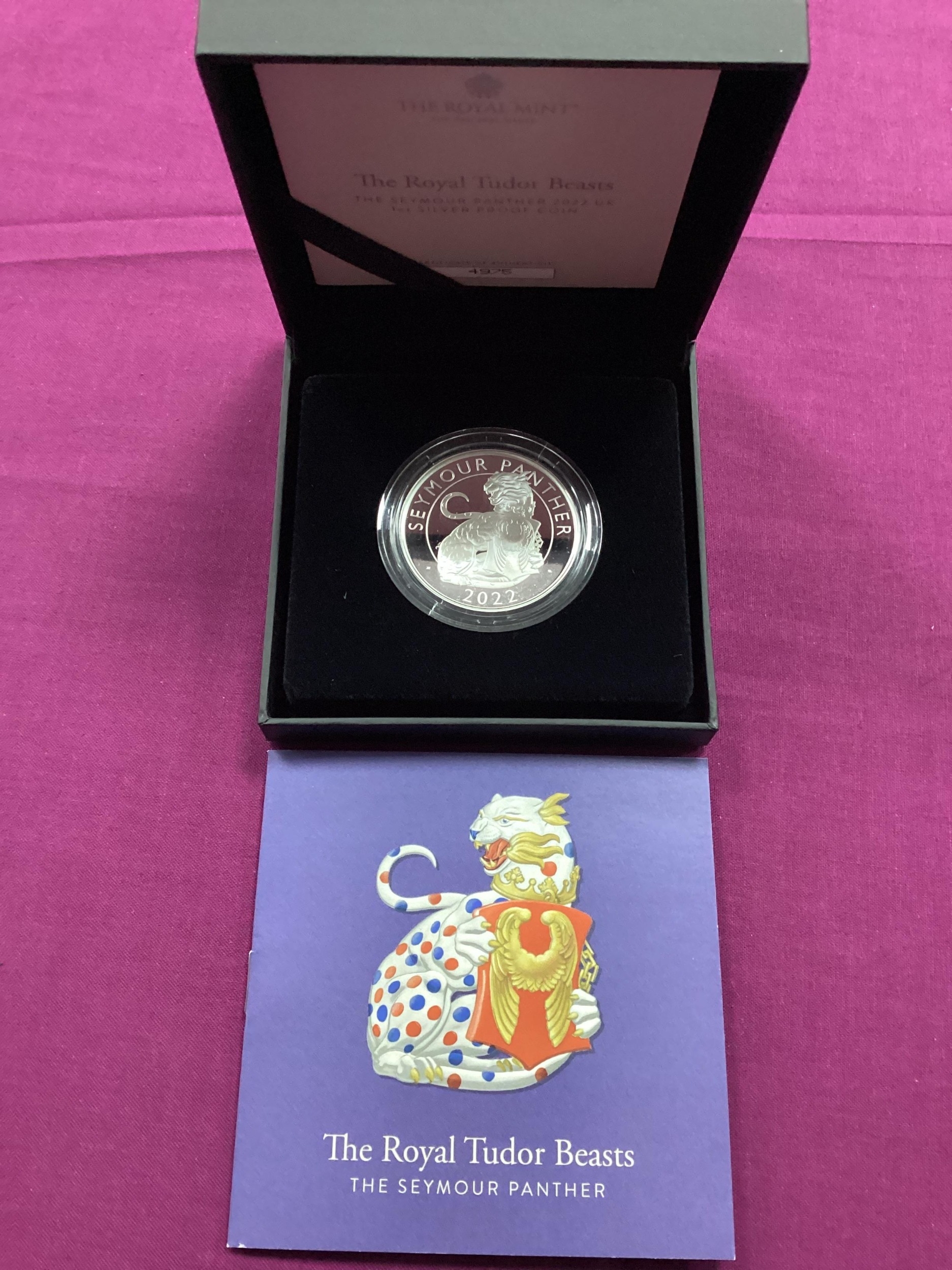 2022 Royal Mint Tudor Beasts 'The Seymour Panther' Silver Proof One Ounce Coin, cased with a certificate of authenticity.