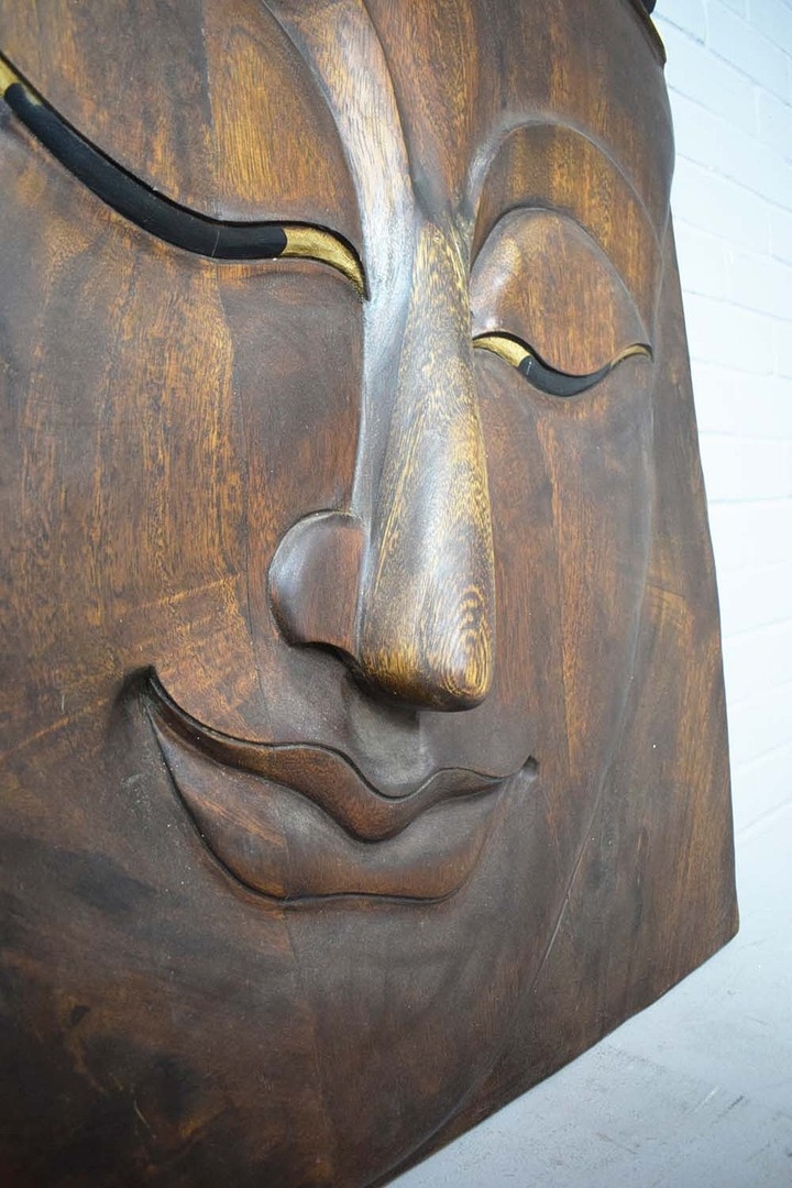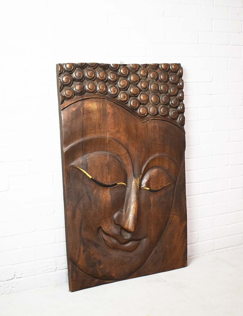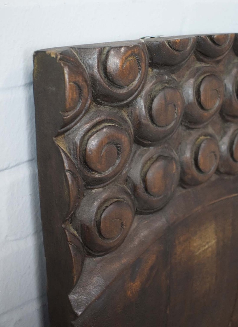 CARVED ASIAN TEAK WALL PANEL. 100cm H x 80cm W.