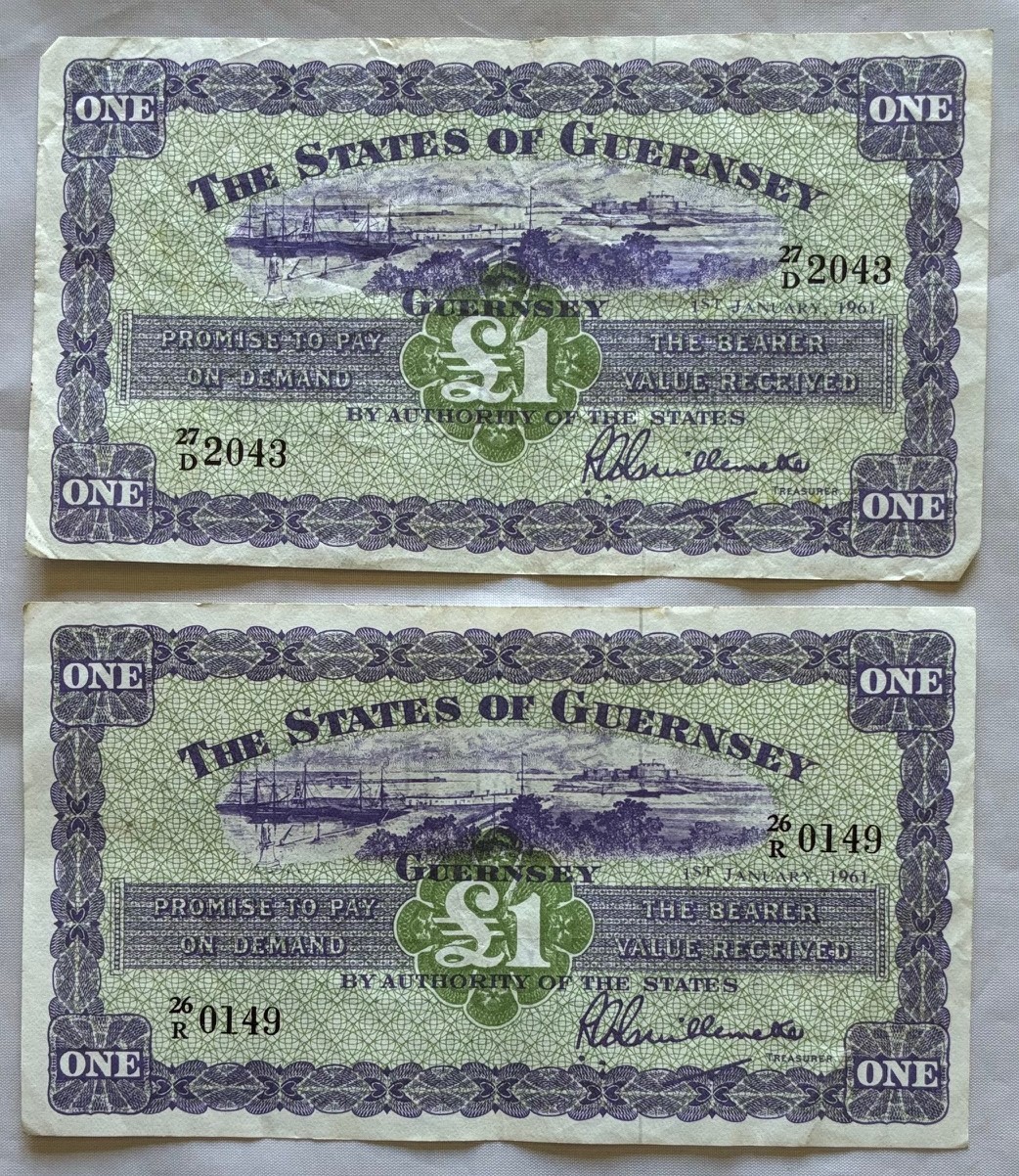 British Banknotes, The States of Guernsey, denomination One Pound, 1st January 1961, signatory Louis Guillemette (2).
