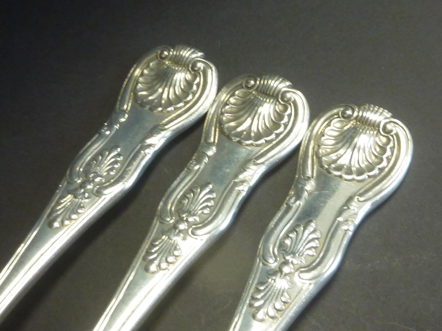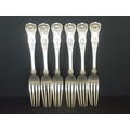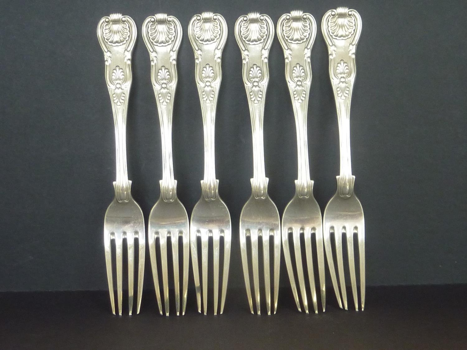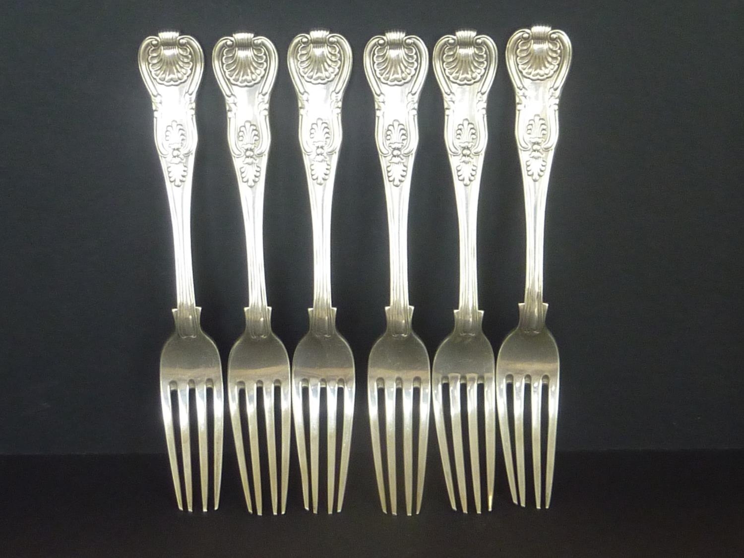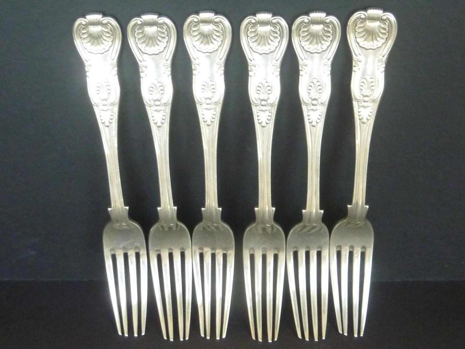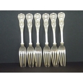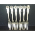Set of six silver table forks, Kings pattern, crested, by Peter Weeks, Dublin 1838. 21oz.